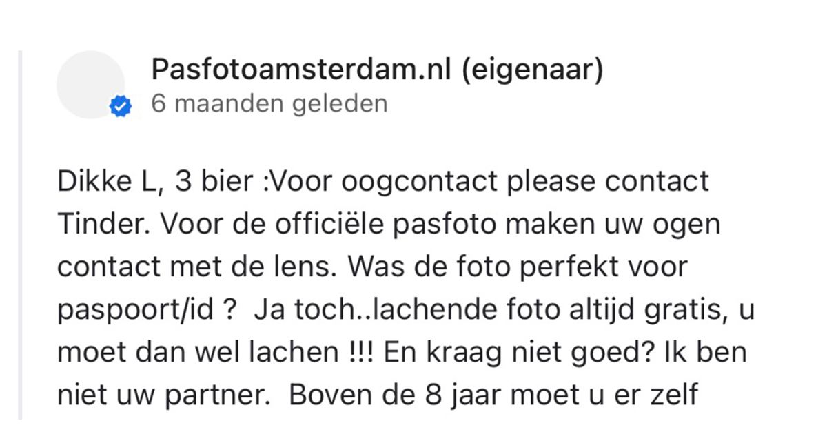 De eigenaar van deze pasfotozaak heeft nogal een bijzondere manier van reageren op negatieve reviews (8 screens)