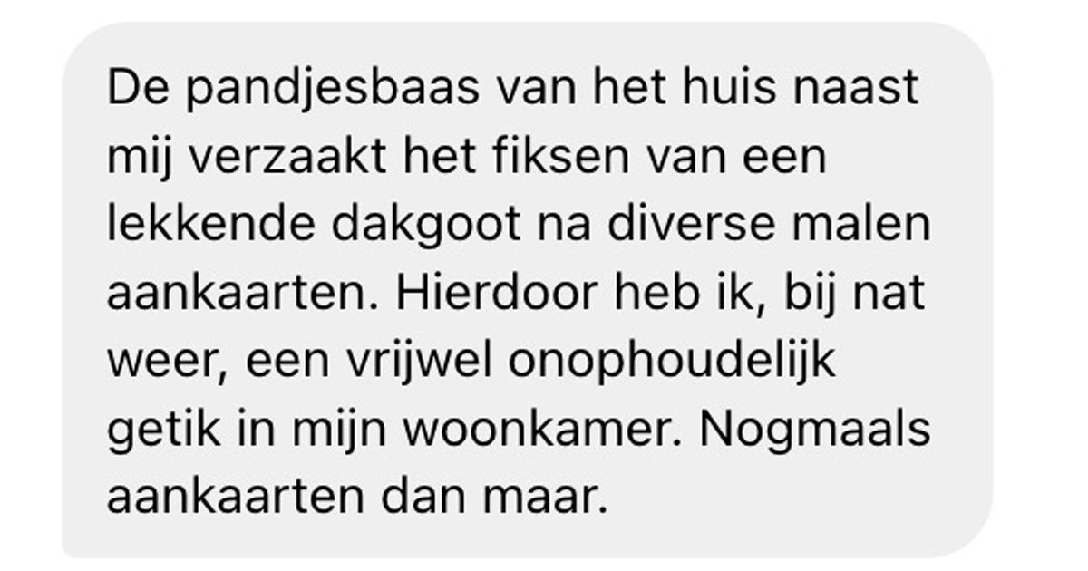 Deze pandjesbaas die nog een lekkage moet fiksen heeft liever niet dat je hem midden in de nacht wakker appt om kwart voor twaalf 's avonds (2 screens)