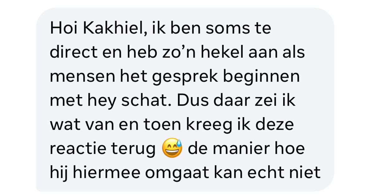 Gast is meteen helemaal op z'n pik getrapt omdat hij het gesprek niet mocht beginnen met 'hey schat'