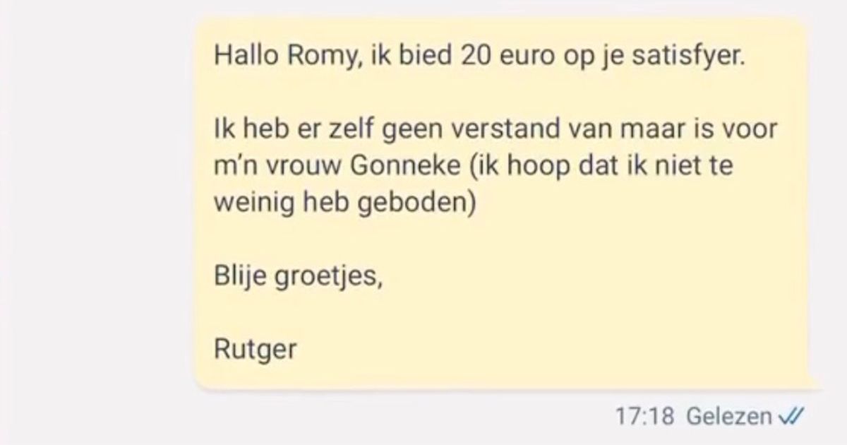 Gast die nogal opdringerig en overweldigend overkomt heeft een leuke verrassing bedacht voor een vrouw waar hij pas een paar dagen appcontact mee heeft... (7 screens)