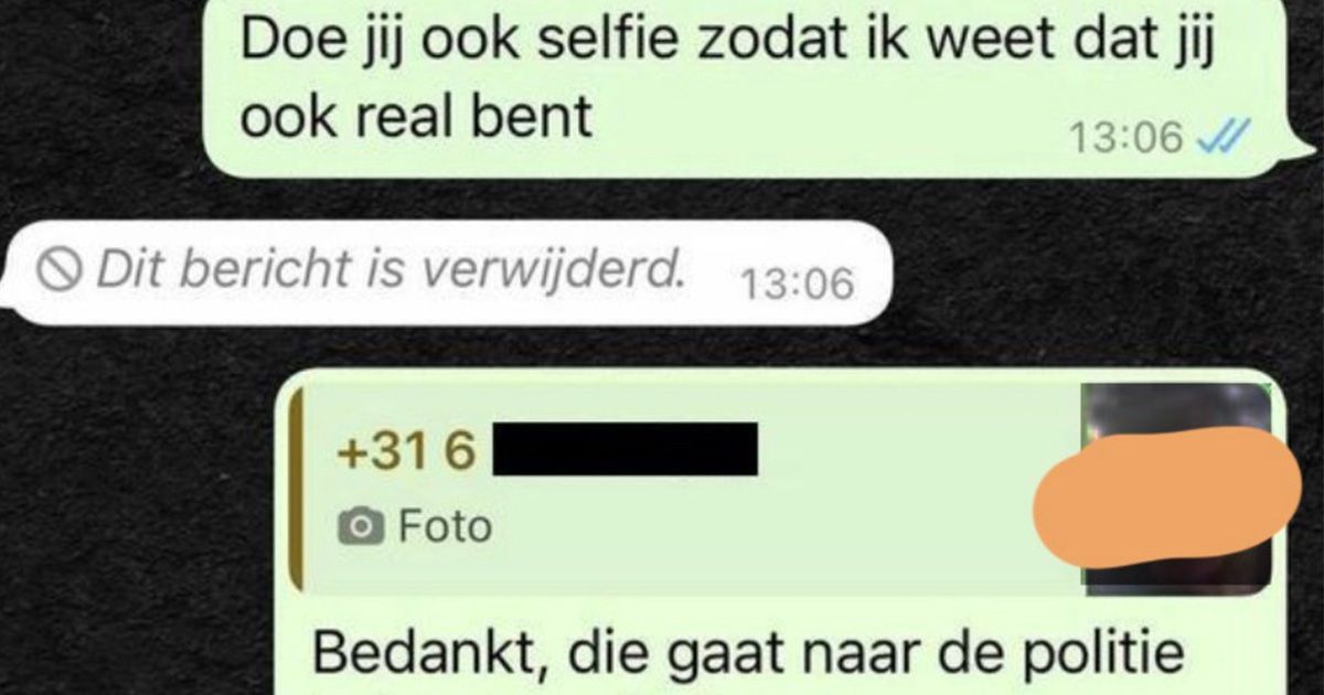Domme WhatsApp-oplichter trapt in simpele val en stuurt foto van zichzelf (7 screens)