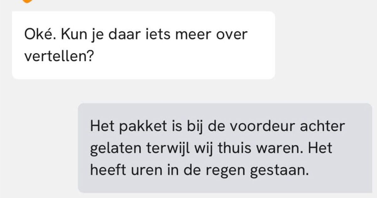 PostNL-bezorger zet pakket in de regen voor de deur terwijl de ontvanger gewoon thuis is en dit is het zeer behulpzame gesprek met de klantenservice (7 screens)