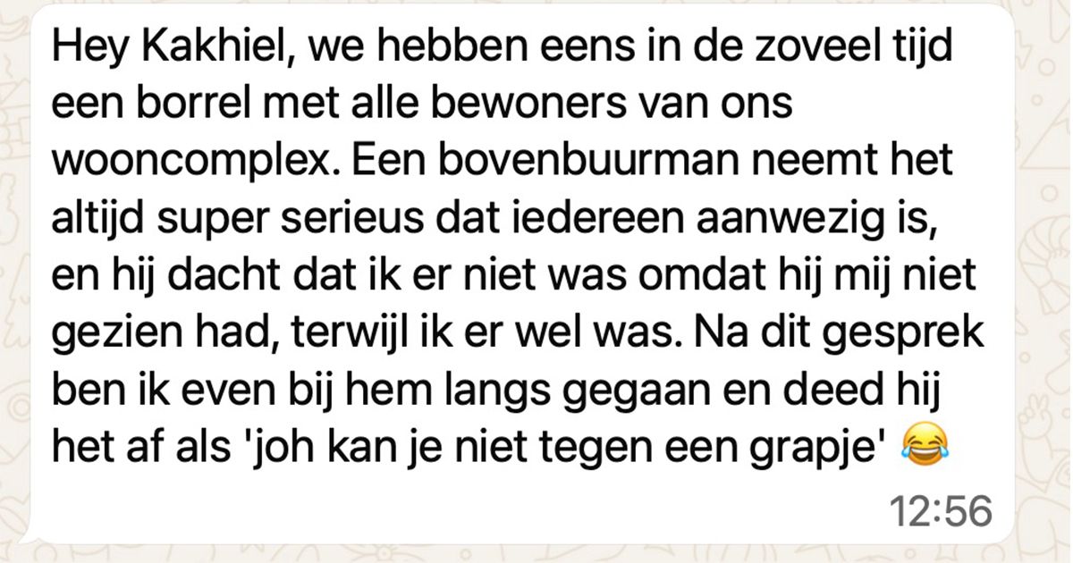 Buurman reageert nogal kinderachtig op mensen die volgens hem niet aanwezig waren bij de buren-borrel (4 screens)