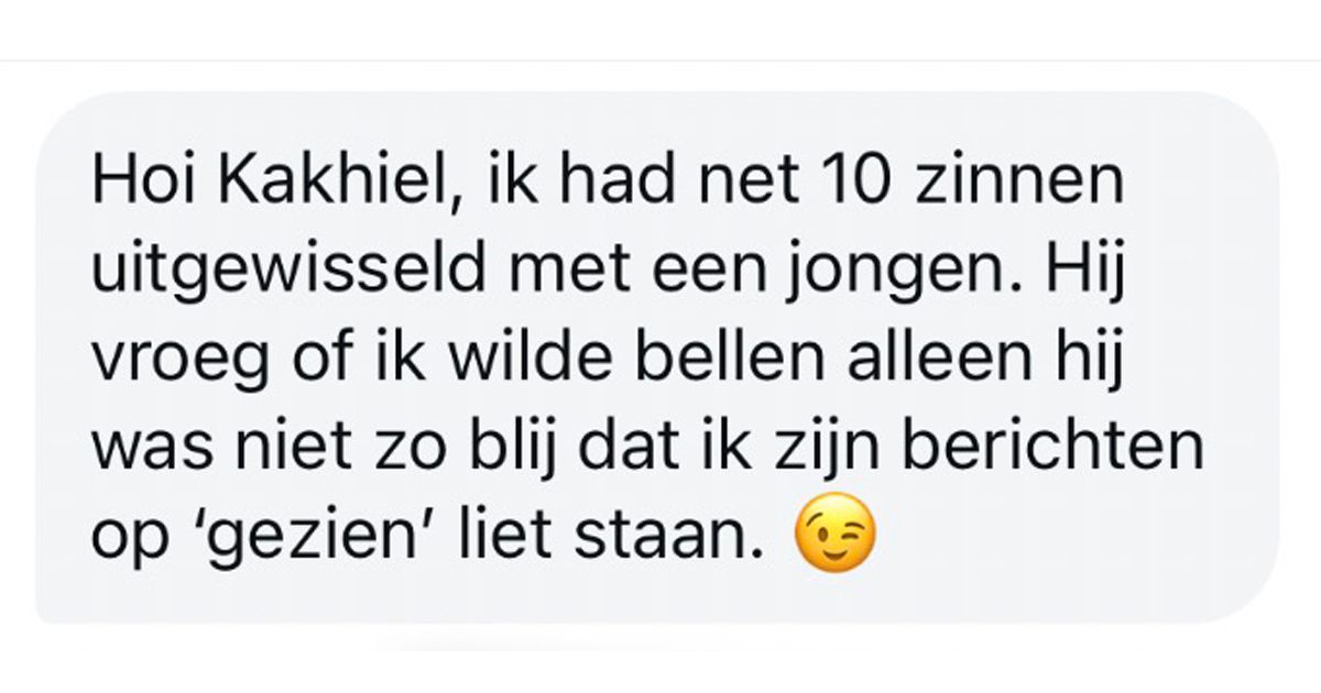 Gast wil na 10 zinnen uitgewisseld te hebben met een vrouw op Instagram al bellen en gaat meteen janken als er niet binnen een kwartier gereageerd wordt (3 screens)