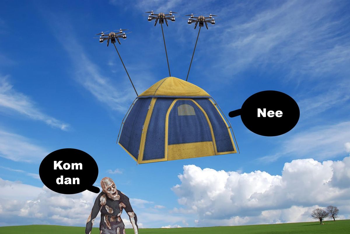 Zombies kunnen niet vliegen en zijn ook vet slecht in springen en een ballonvaart boeken zit er ook niet echt in want daar zijn ze te dom voor dus als jij dan gewoon in de lucht gaat wonen in een tent dan ben je wel safe