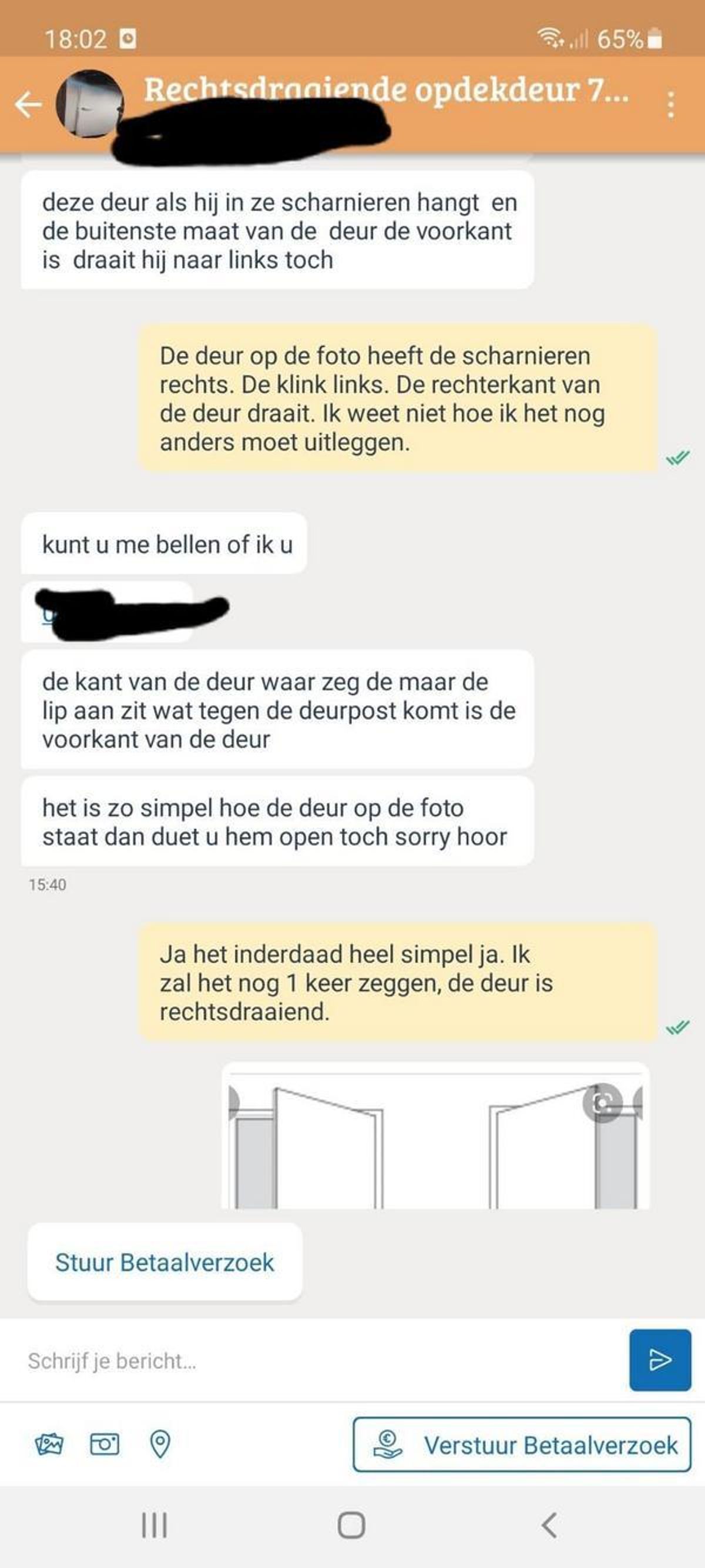 Hier een vermakelijk stukje miscommunicatie op Marktplaats over een deur (4 screens)