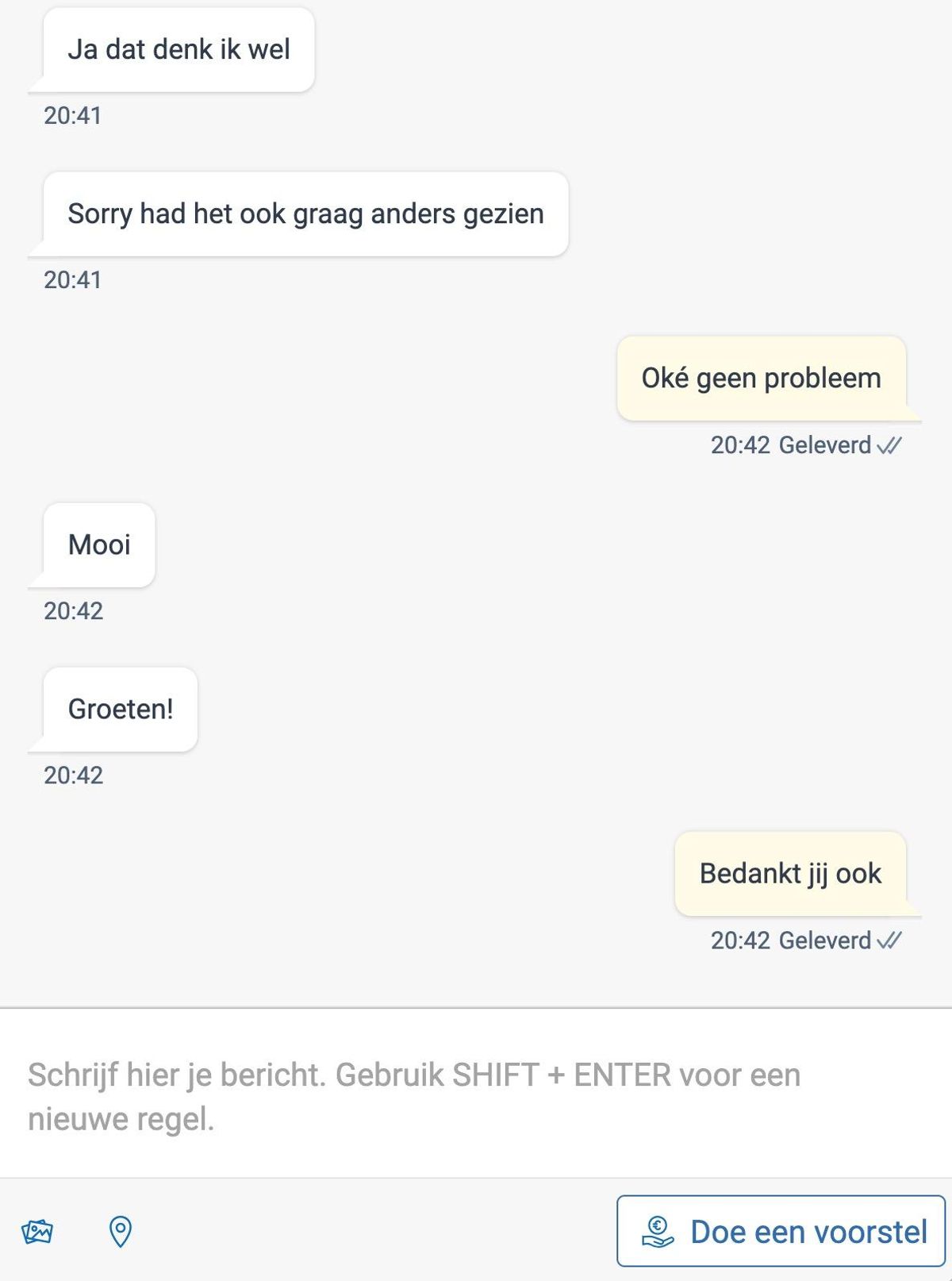 Meneer verkoopt roeimachine via Marktplaats maar de communicatie verloopt helaas nogal stroef (8 screens)