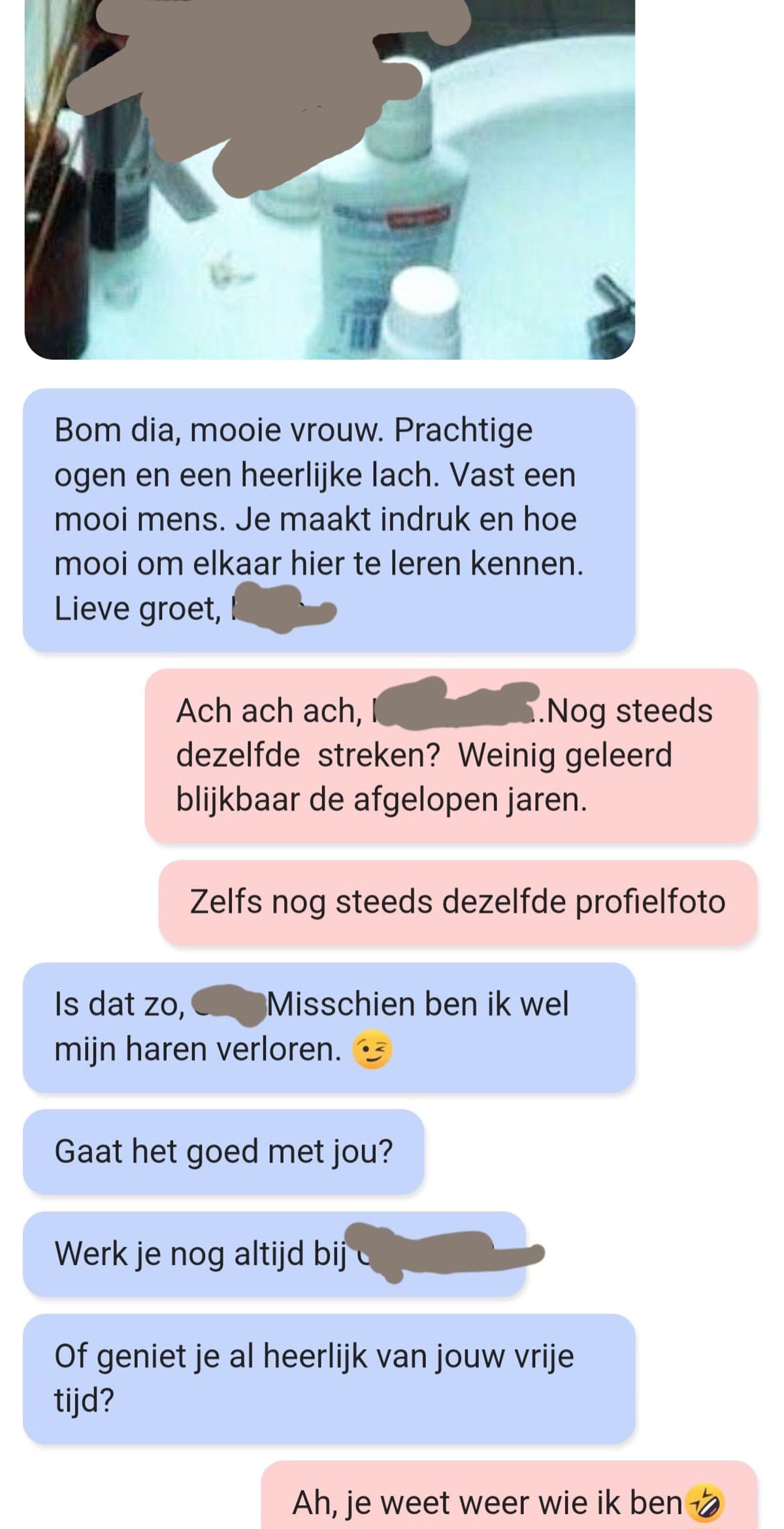 Vreemdgaande opa op dating-app spreekt per ongeluk een vrouw aan bij wie hij het al eerder een keer had geprobeerd (7 screens)