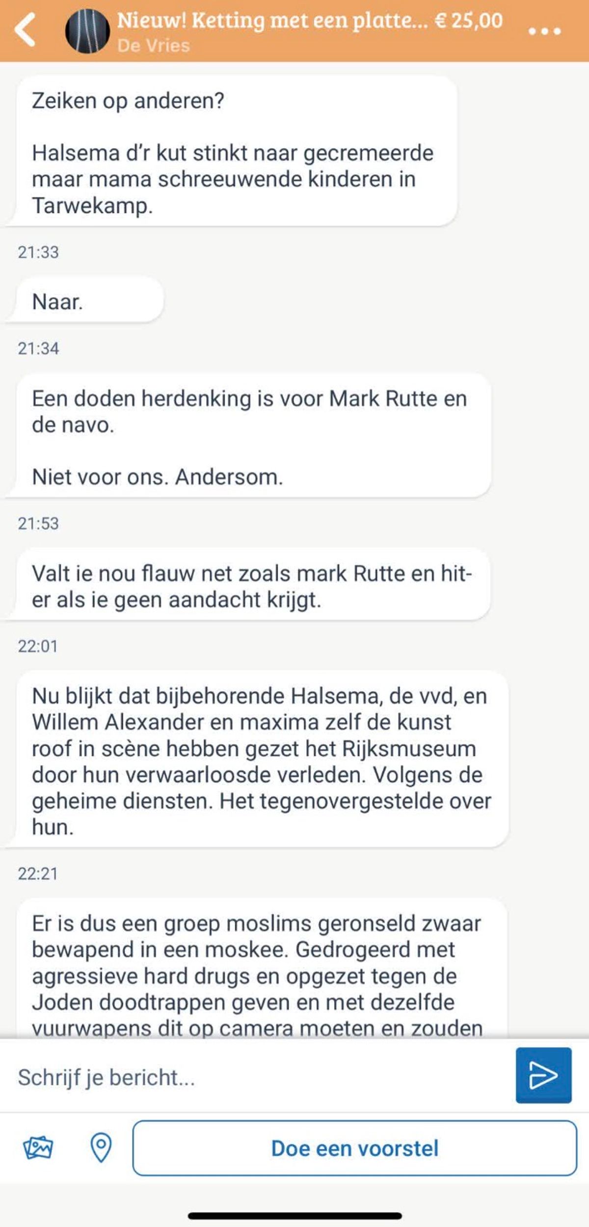 Man wilde alleen maar even een bod doen op een ketting en krijgt vervolgens al deze bizarre berichten over zicht heen (16 screens)