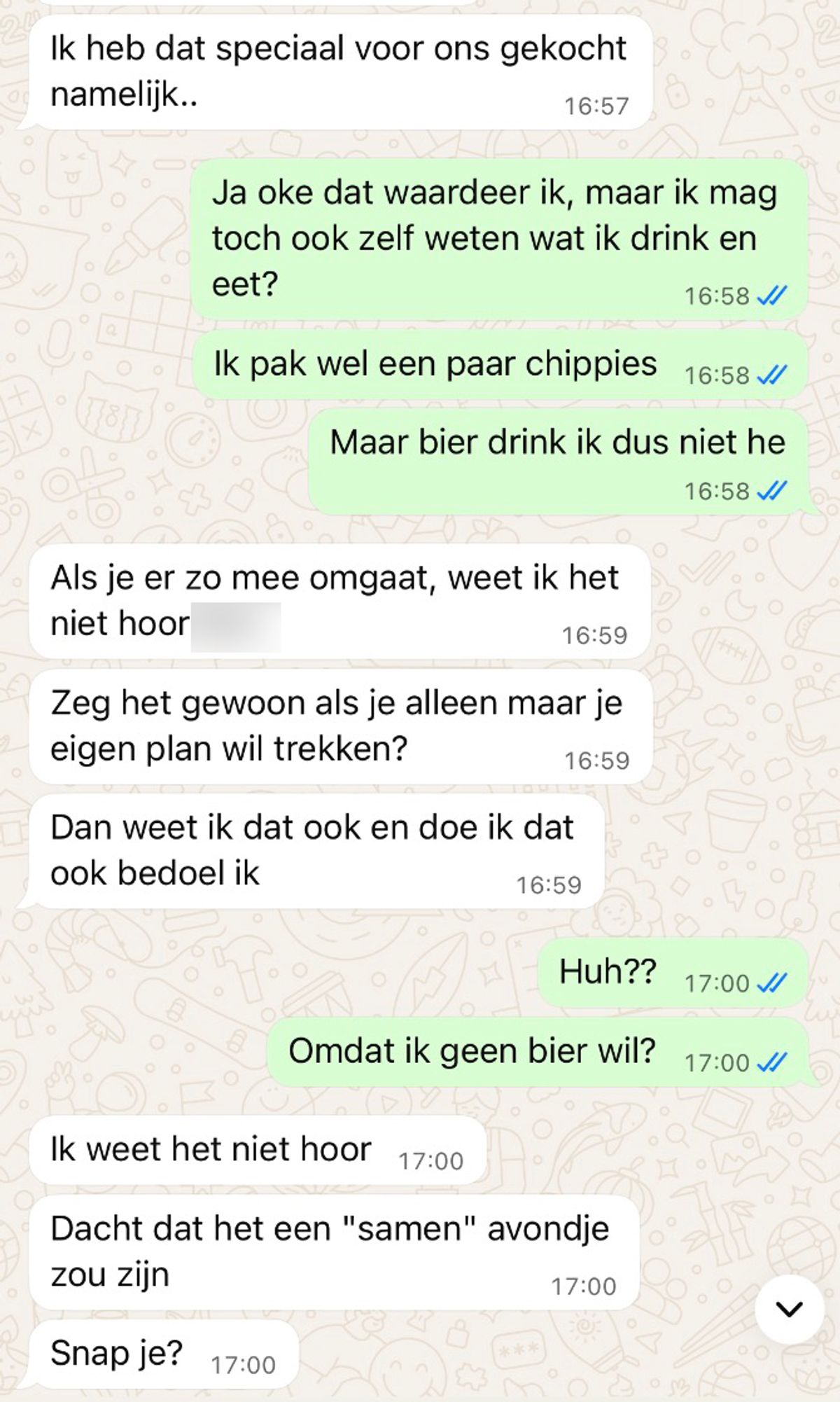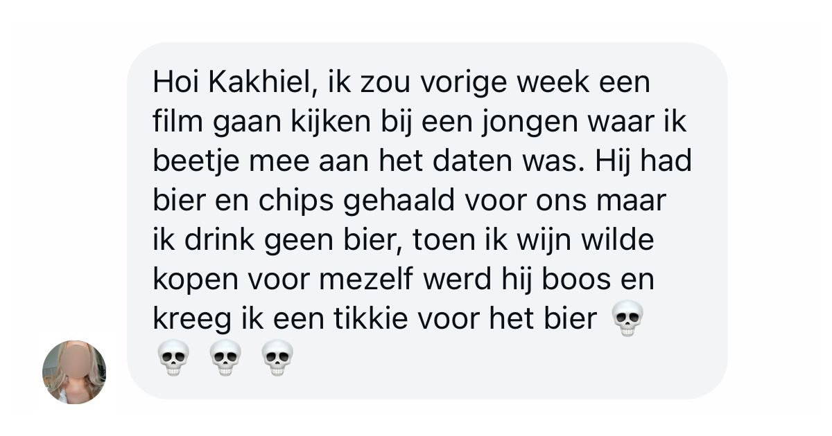 Onzekere gast die geen nee accepteert is nogal beledigd omdat zijn date hem geen moment het gevoel heeft gegeven dat ze hem een 'lekker ding' vindt en verder ook niet meer wil afspreken (5 screens)