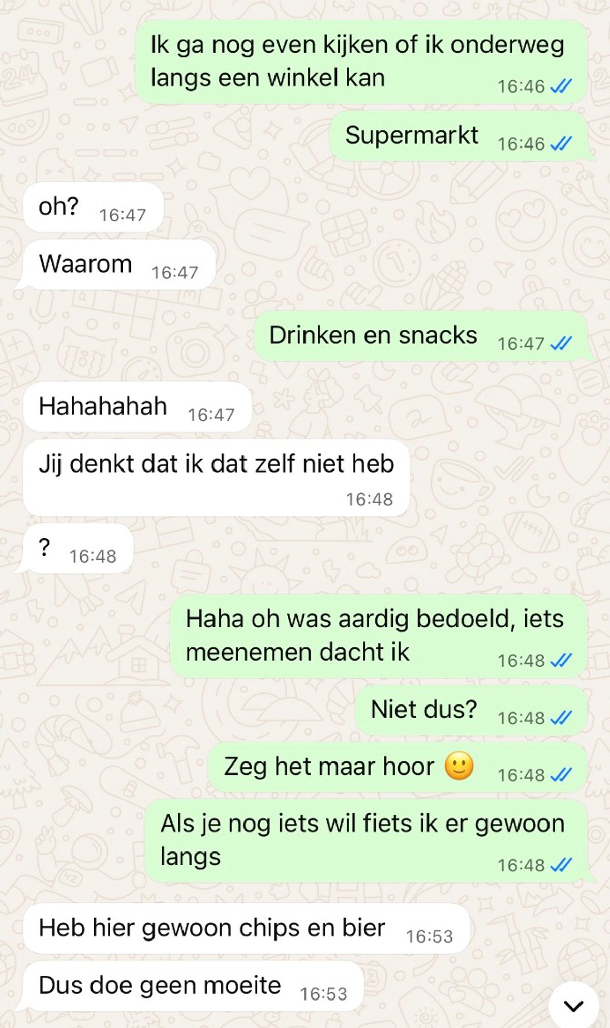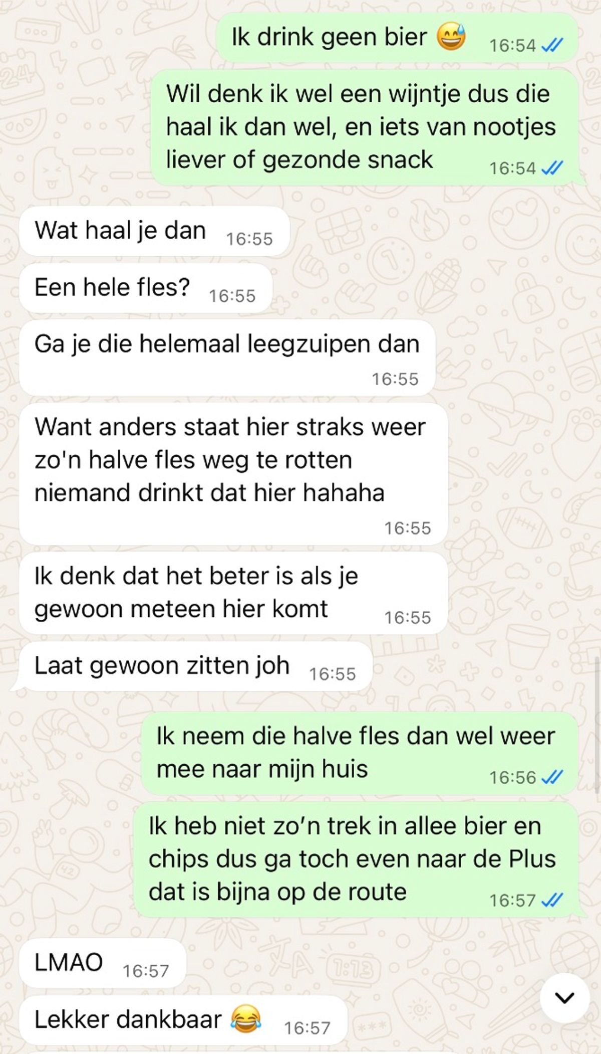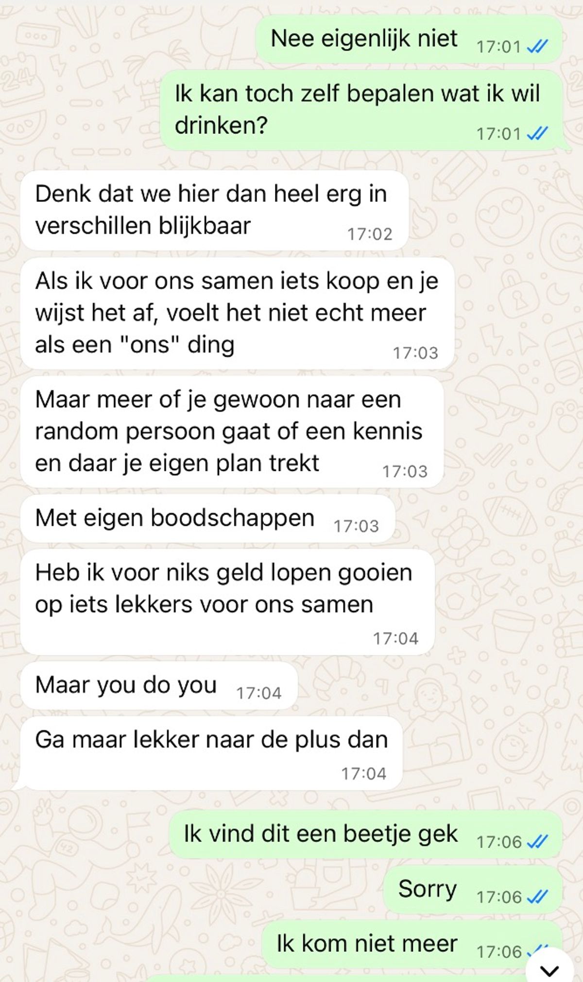 Gast kan het niet verkroppen dat zijn date haar eigen drinken en snacks wil kopen voor een romantisch filmavondje bij hem thuis en vindt dat ze maar gewoon bier moet drinken omdat hij dat gekocht heeft (5 screens)
