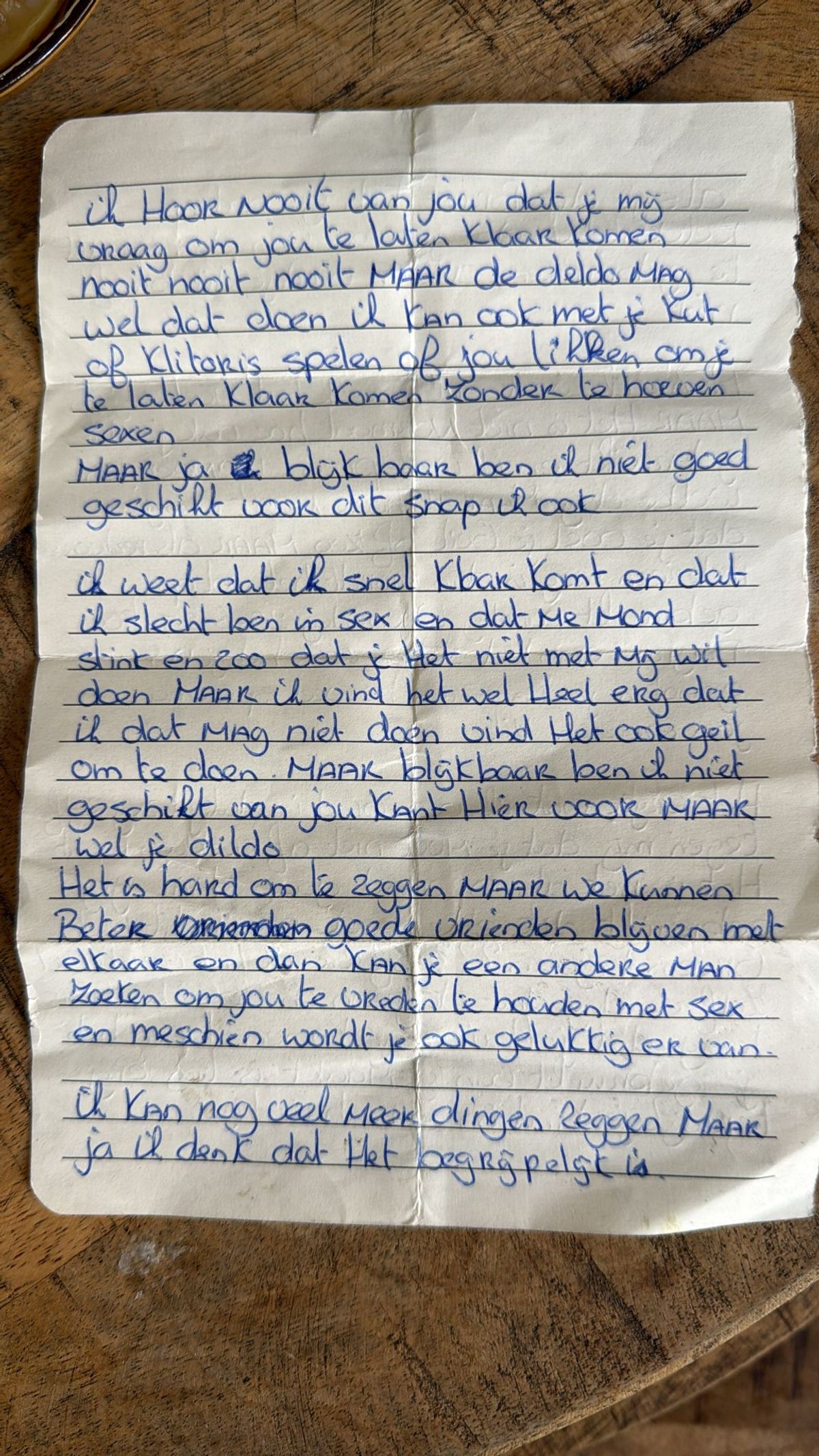 Dit briefje vond iemand tijdens het uitlaten van haar hondjes op de kinderboerderij, iemand enig idee waar dit precies over gaat? (2 foto's)