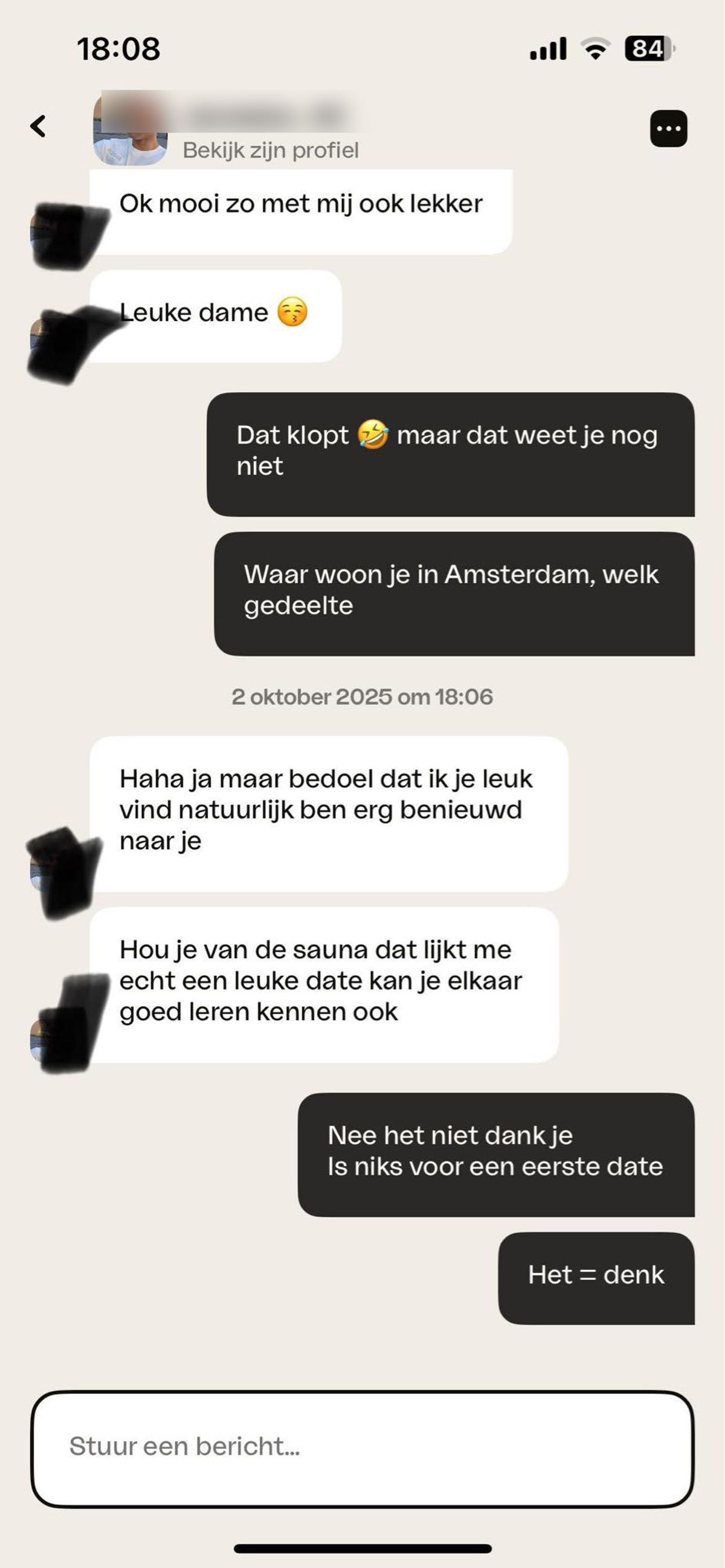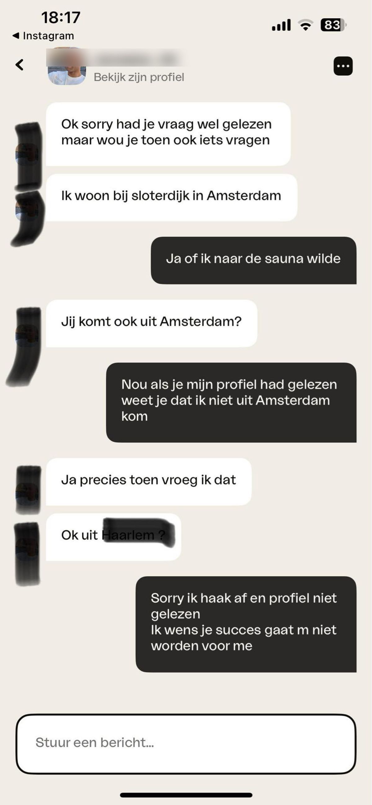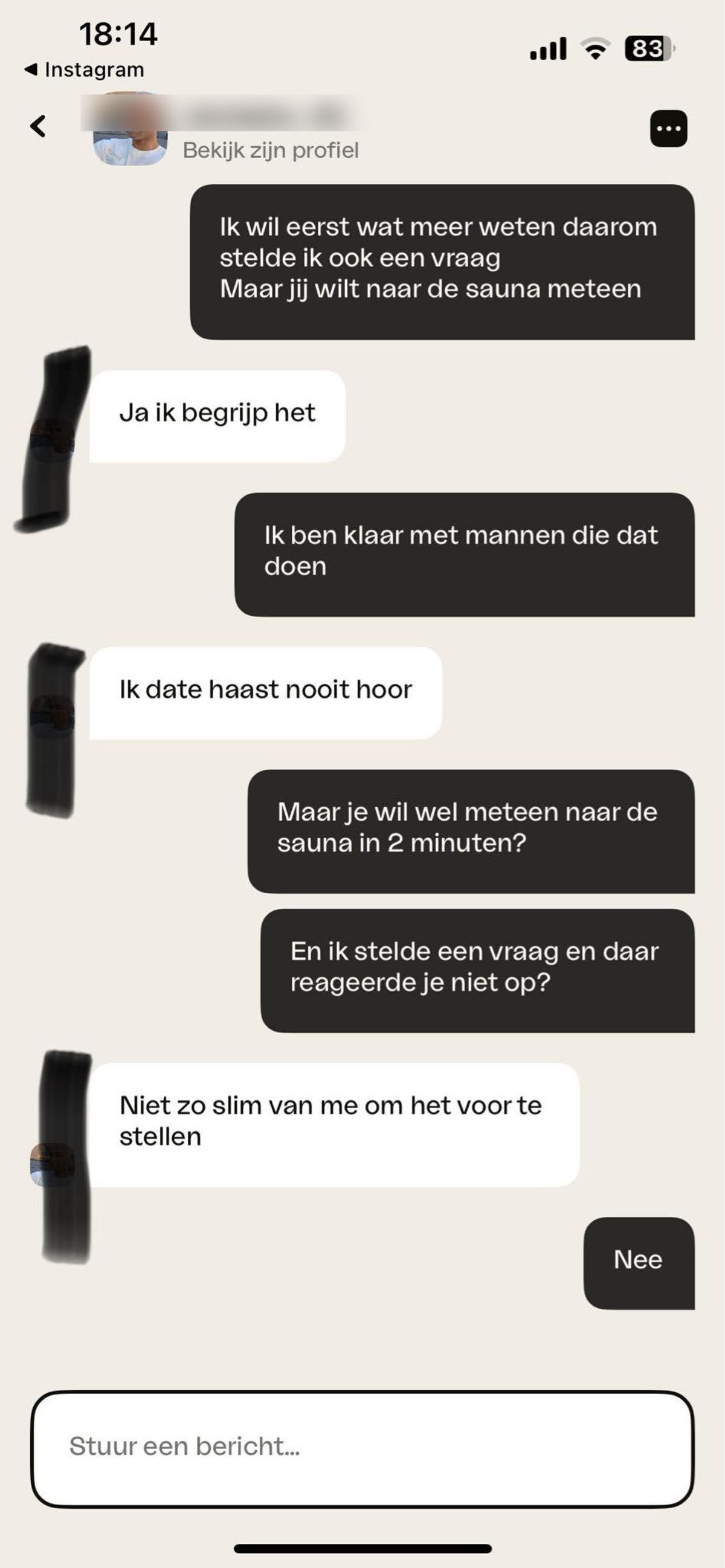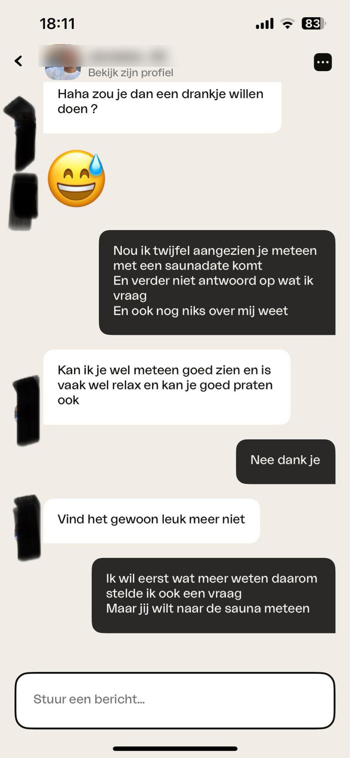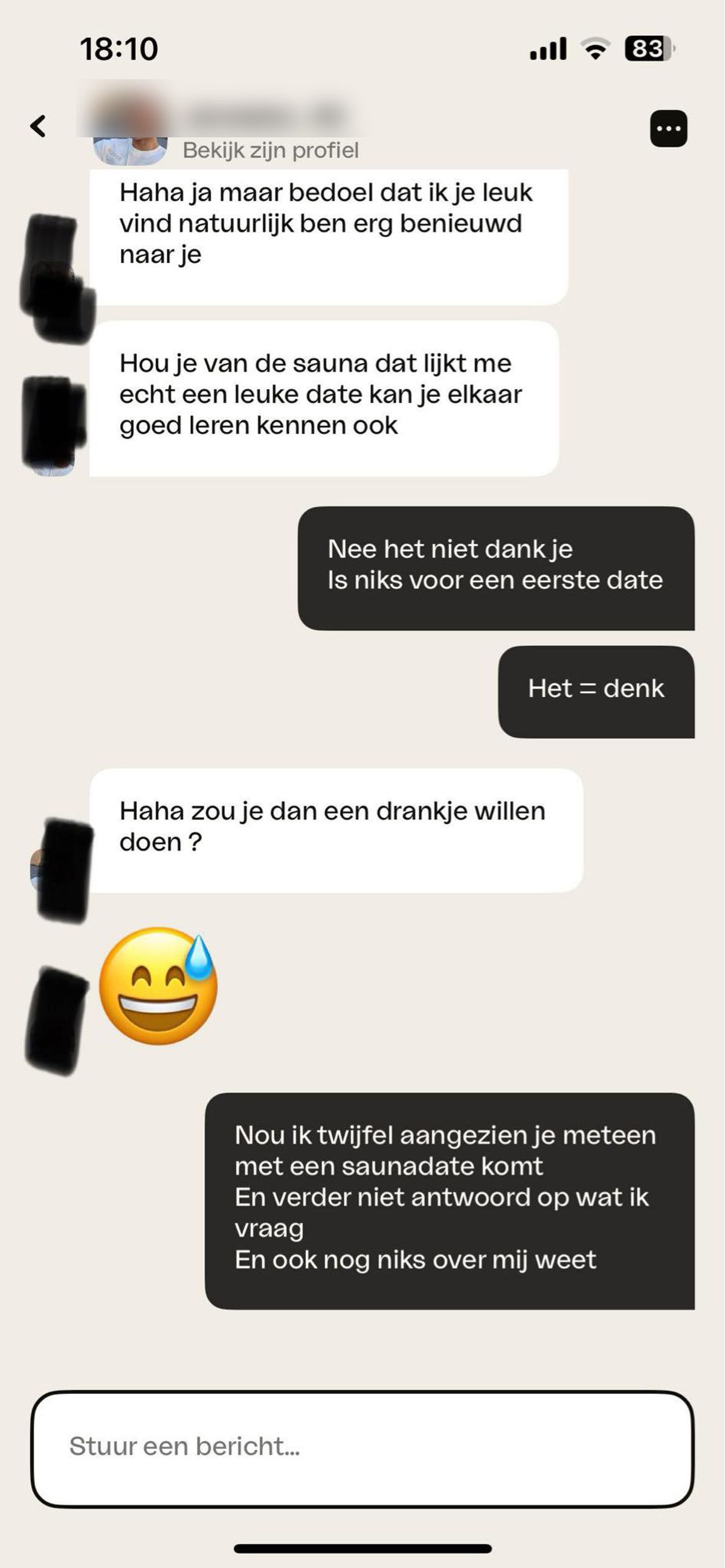 Man in dating-app is eigenlijk maar op zoek naar één ding, hij weet het alleen niet echt tactisch te brengen... (5 screens)