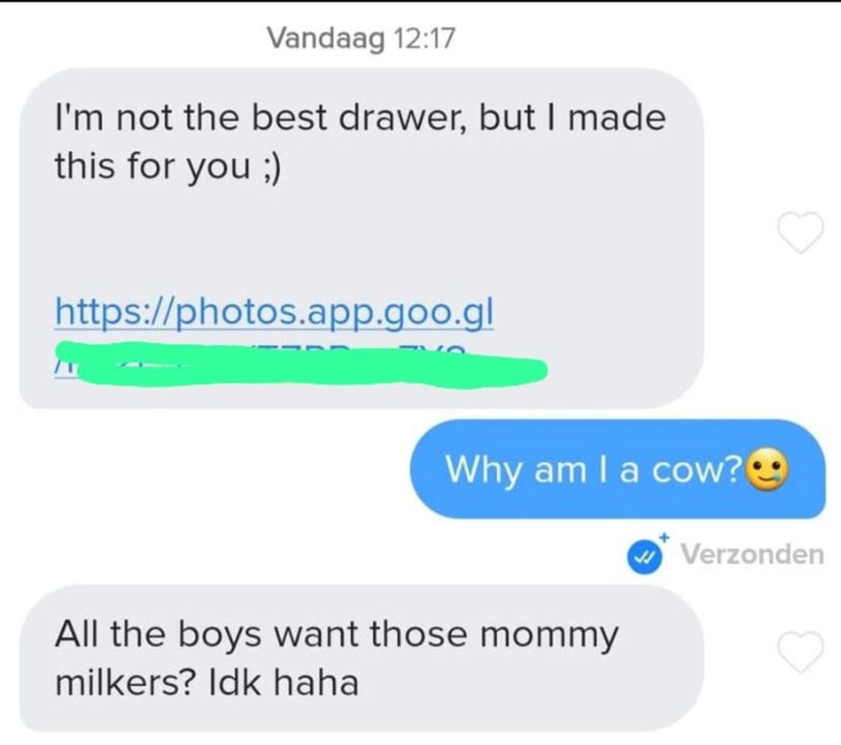 Meisje ontvangt deze leuke tekening die haar match op een datingsite speciaal voor haar gemaakt heeft, maar of die nou echt als een compliment opgevat kan worden?