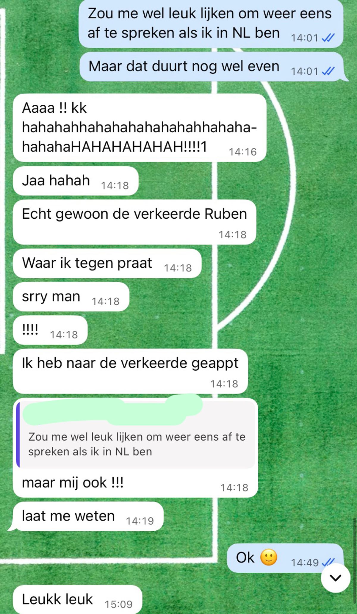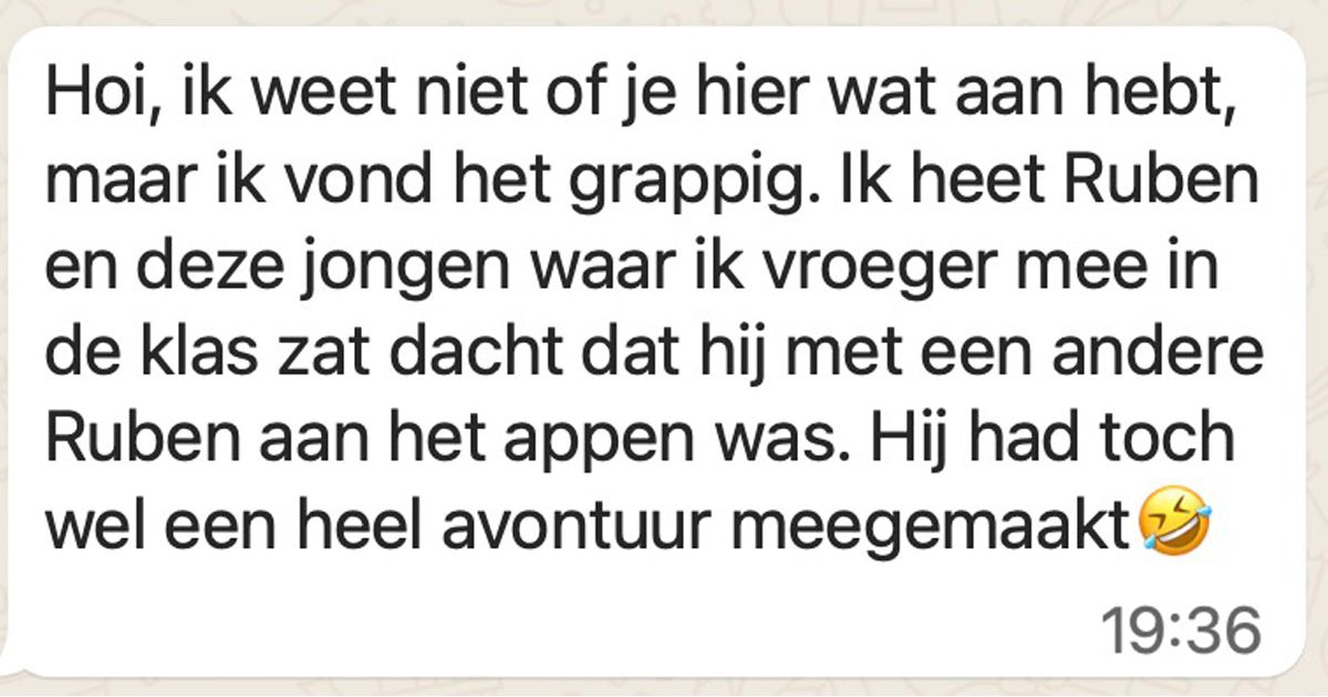 Gast die de hele week aan het partyen is stuurt steeds allemaal appjes naar de verkeerde Ruben en hij heeft ook nog een bijzonder avontuur meegemaakt... (4 screens)