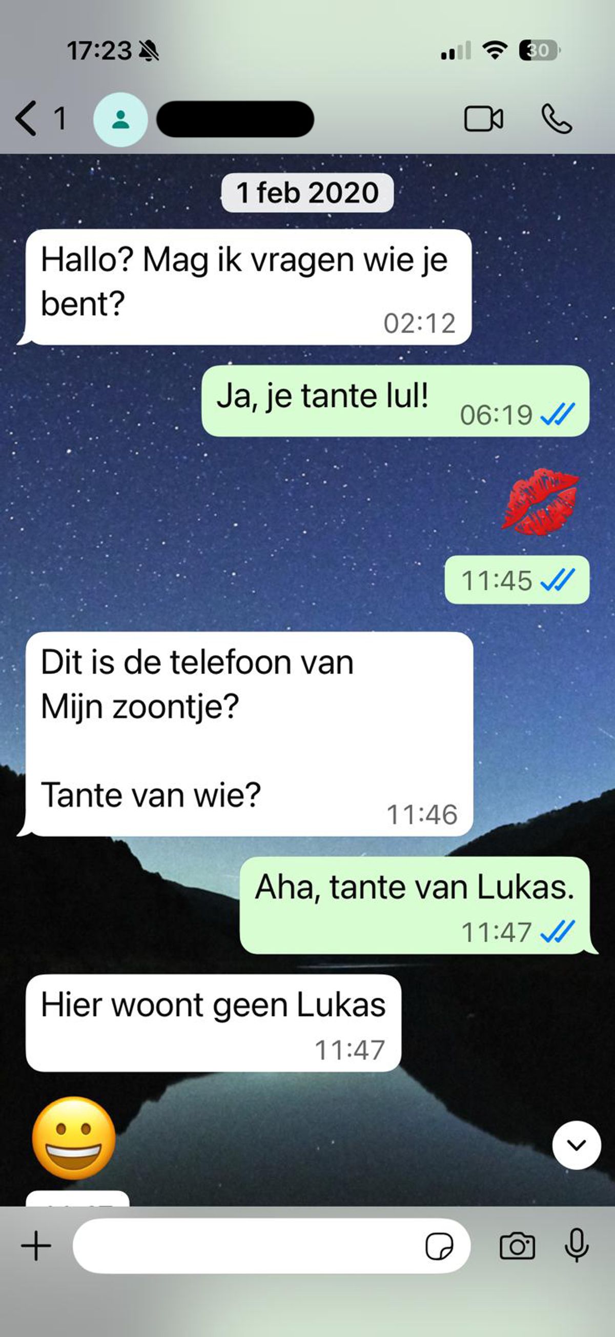 Vrouw probeert haar neefje te feliciteren op WhatsApp maar die heeft inmiddels blijkbaar een ander telefoonnummer (4 screens)