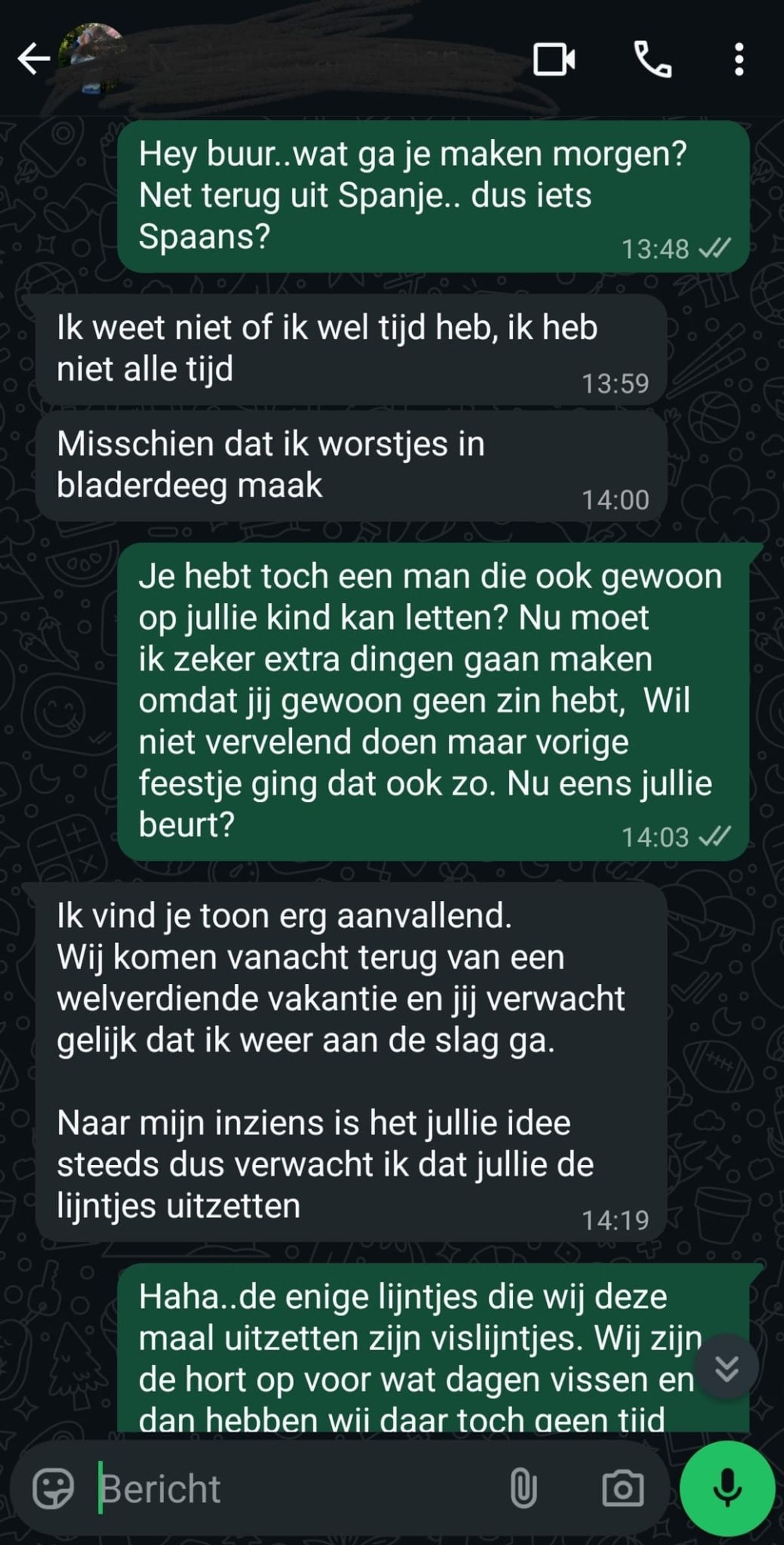Hier weer een gesprekje waarvan je zin krijgt om nooit lid te worden van een buurtappgroep (3 screens)