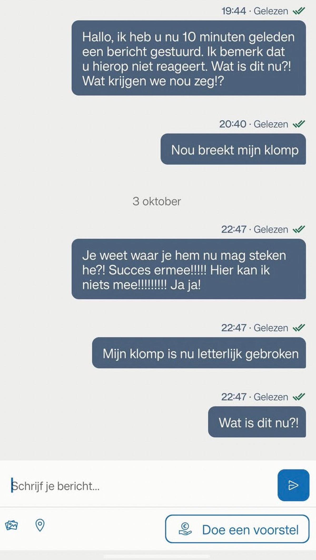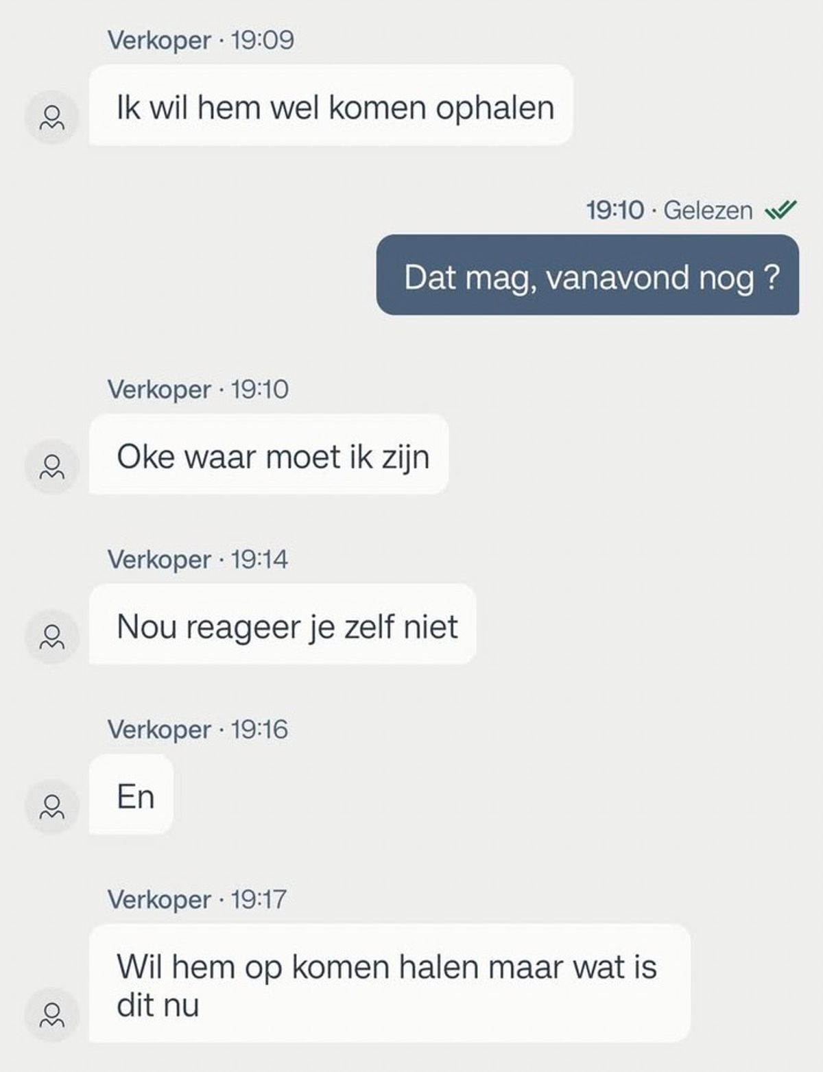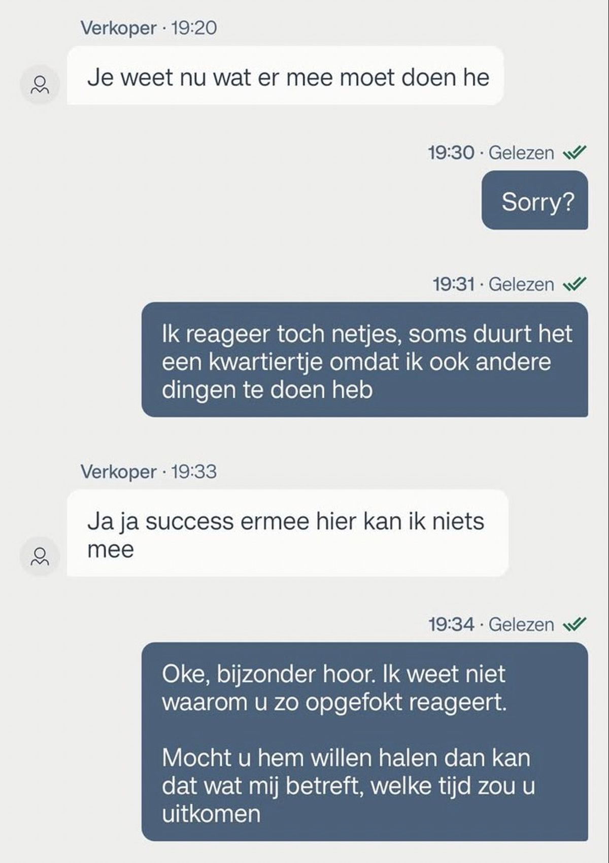 Als er een award was voor de meest ongeduldige persoon op Marktplaats dan ging ie waarschijnlijk naar deze mevrouw (3 screens)