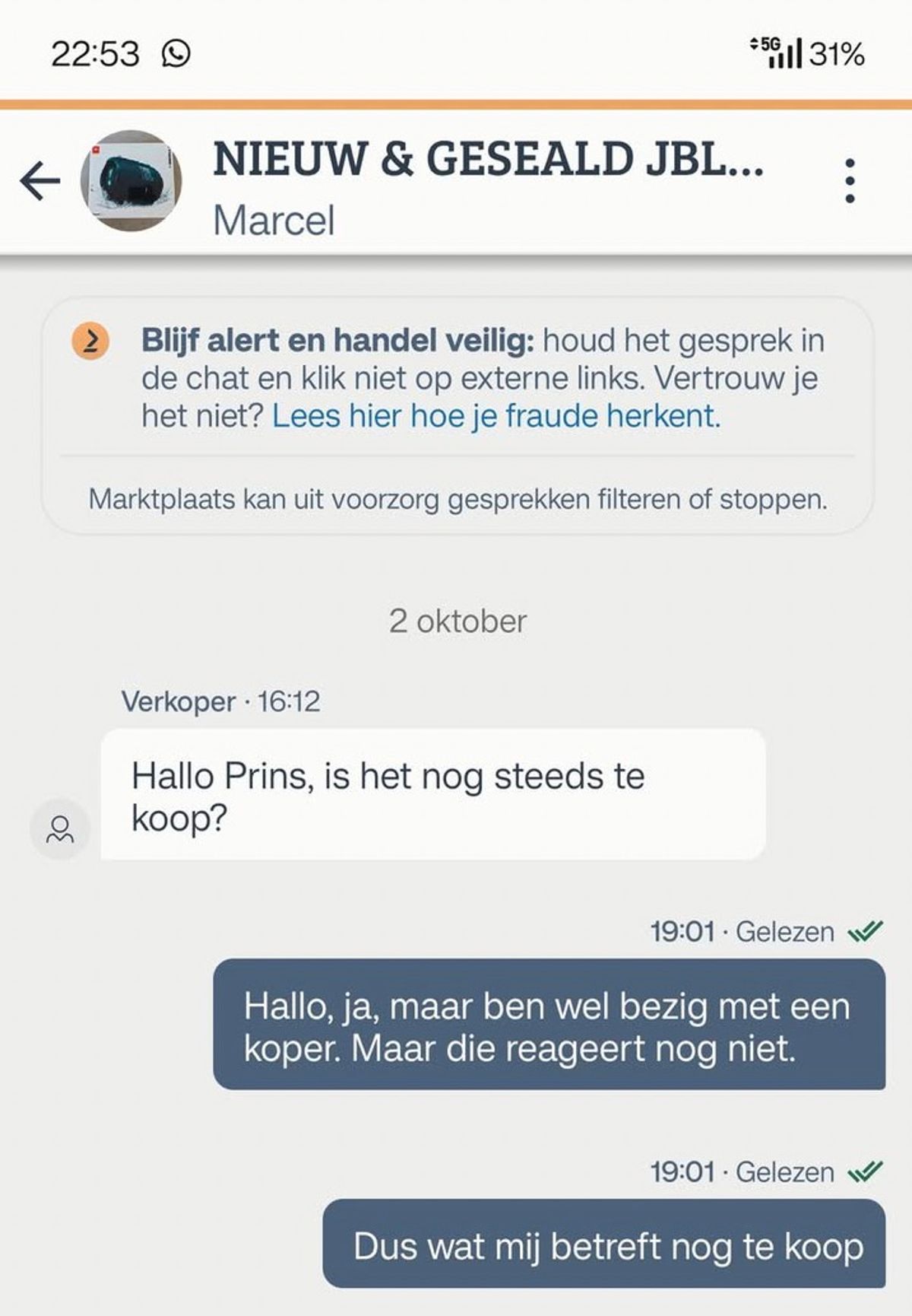 Als je niet binnen een paar minuten antwoordt op de vragen van deze Marktplaats-koper is ie er meteen al helemaal klaar mee. 'Succes ermee hier kan ik niets mee' (4 screens)