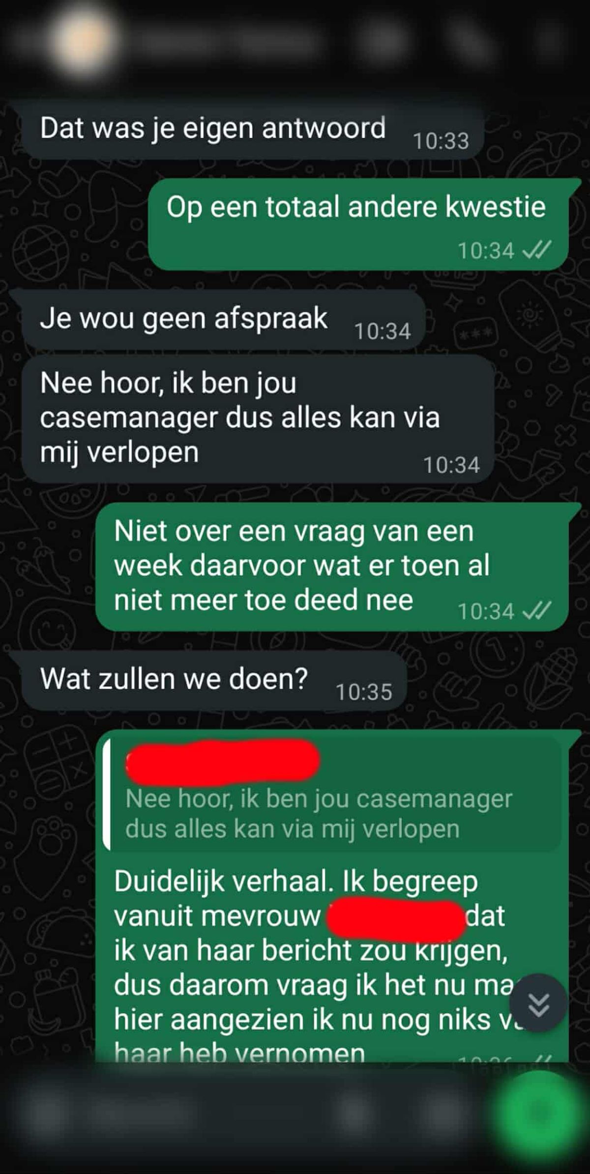 Deze casemanager in de zorg doet het liefst zo min mogelijk en je hebt er zo te lezen ook eigenlijk helemaal niks aan (6 screens)