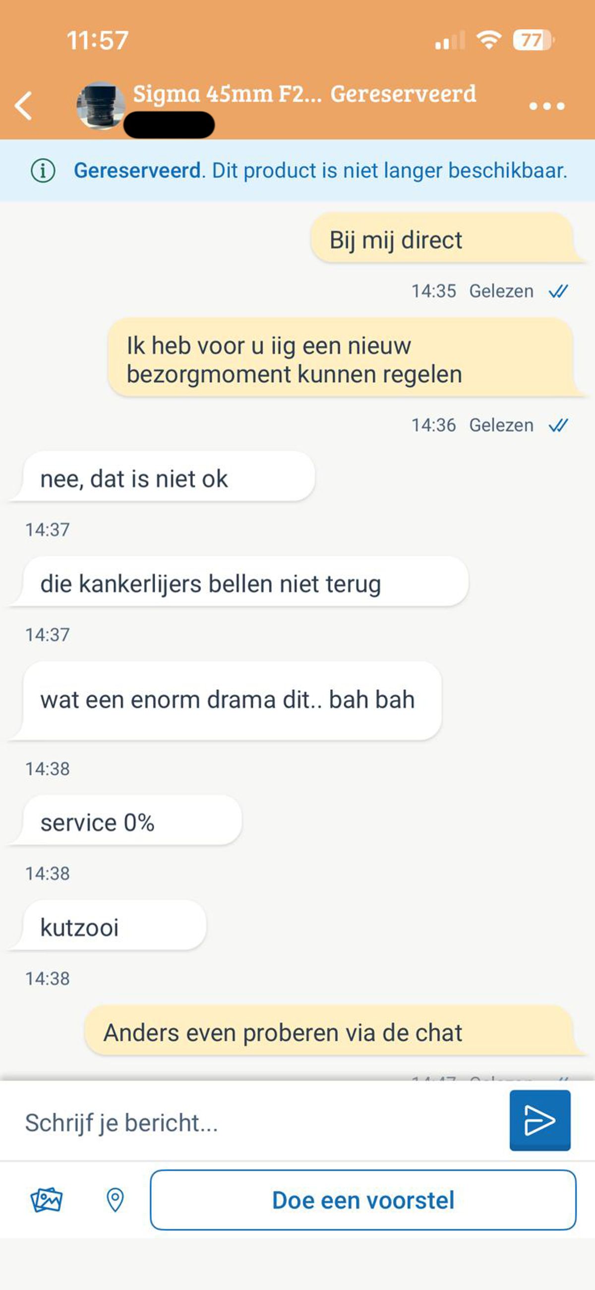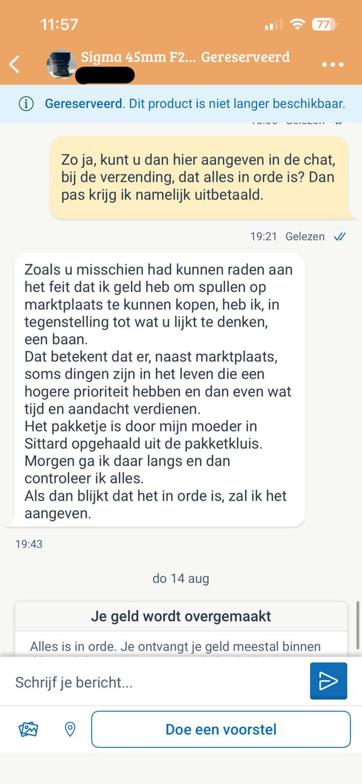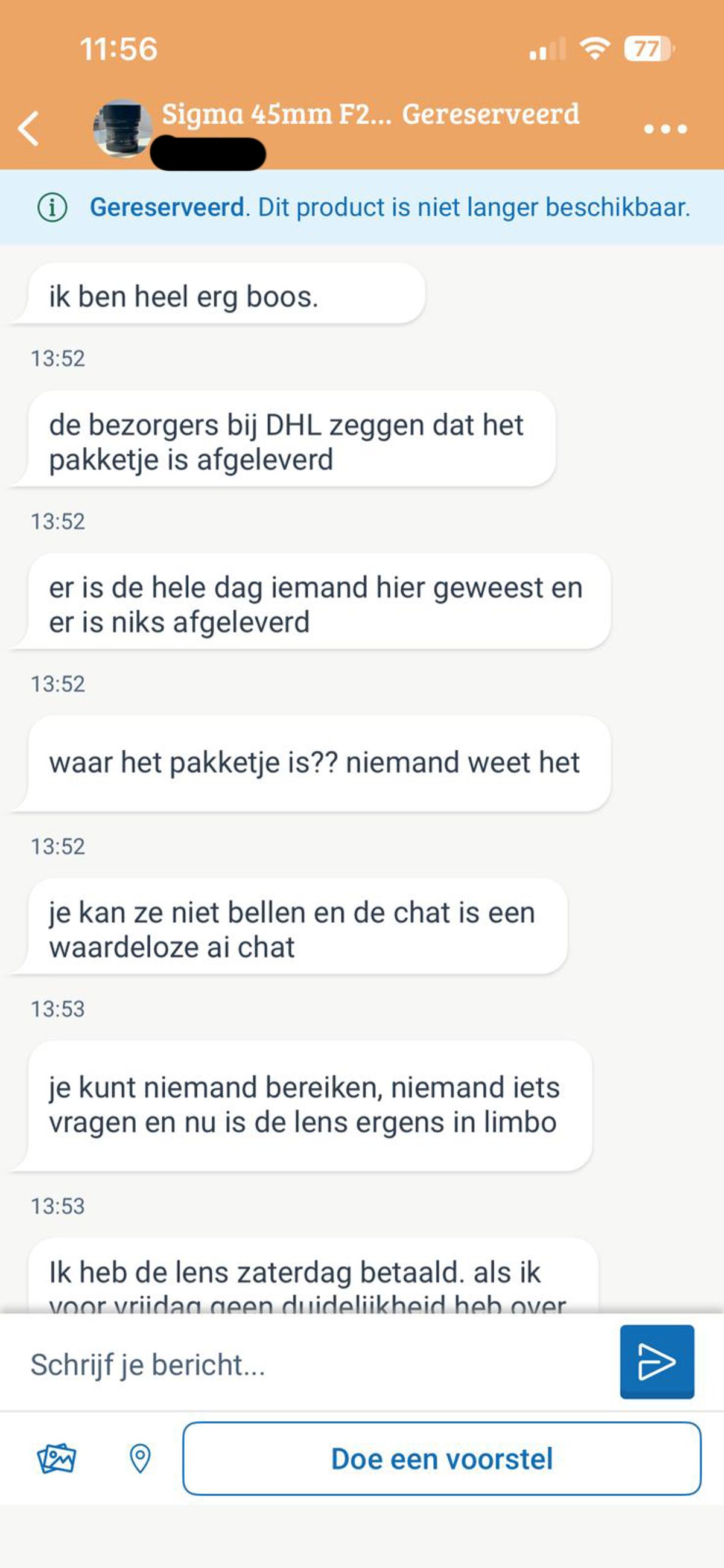 Man op Marktplaats is heel erg boos omdat DHL zijn pakket niet heeft bezorgt dus besluit het maar even lekker af te reageren op de verkoper (8 screens)