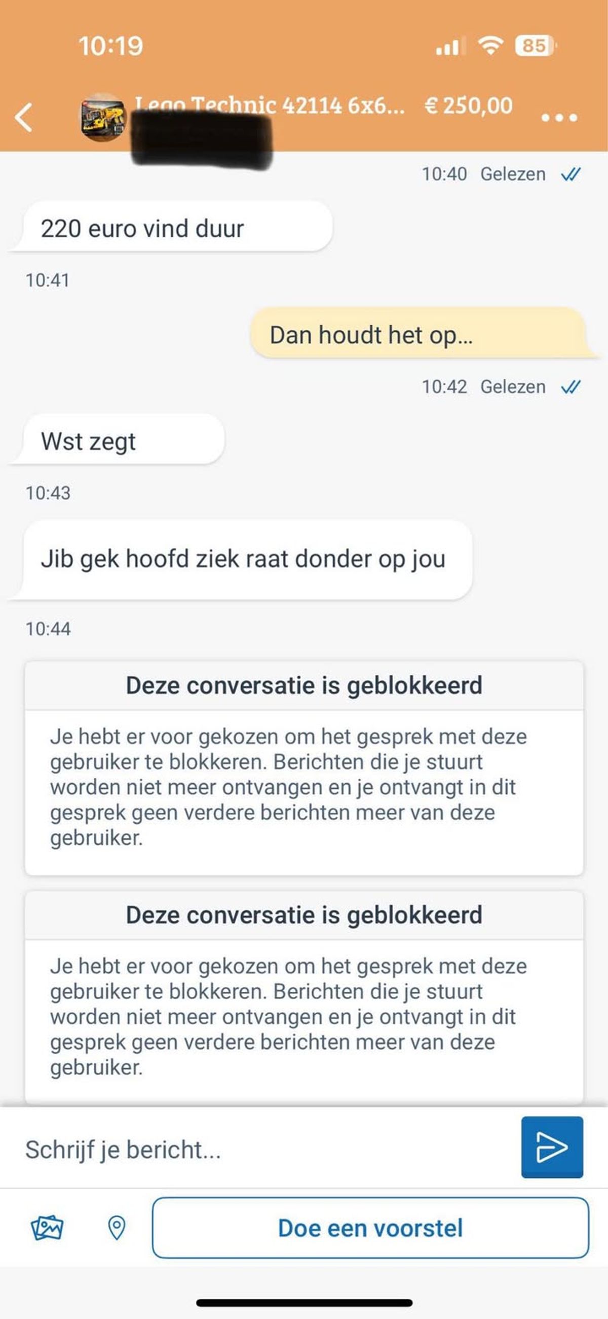 Meisje wil LEGO kopen via Marktplaats maar als ze informeert naar de prijs krijgt ze deze gefrustreerde berichten allemaal over zich heen (10 screens)