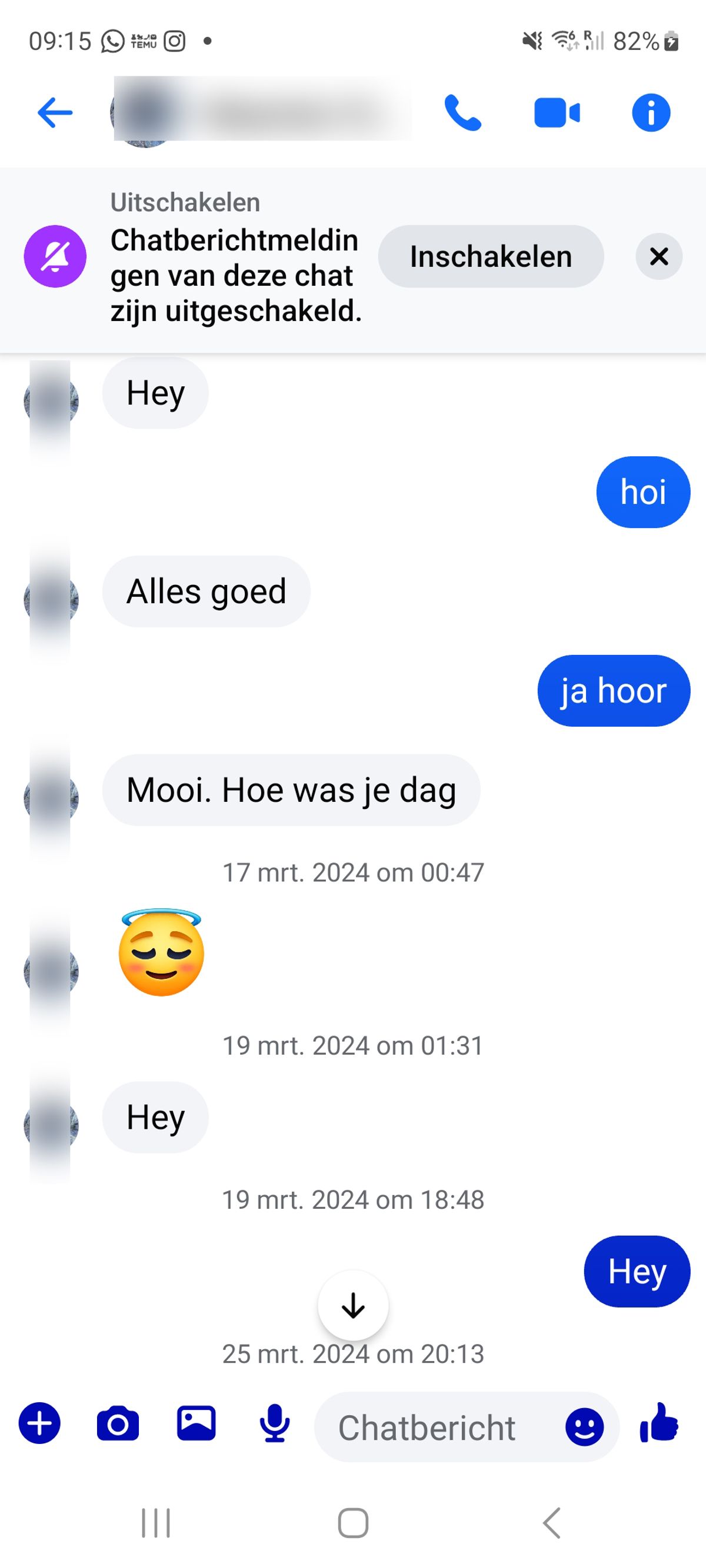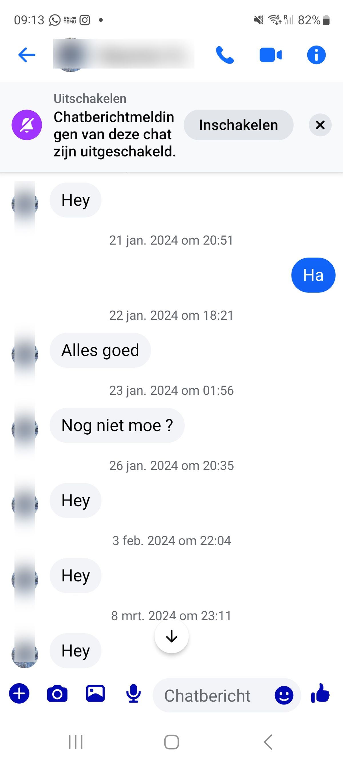 Hier weer iemand met vet veel doorzettingsvermogen die niet echt snapt wanneer hij moet stoppen met 'hey' zeggen (15 screens)