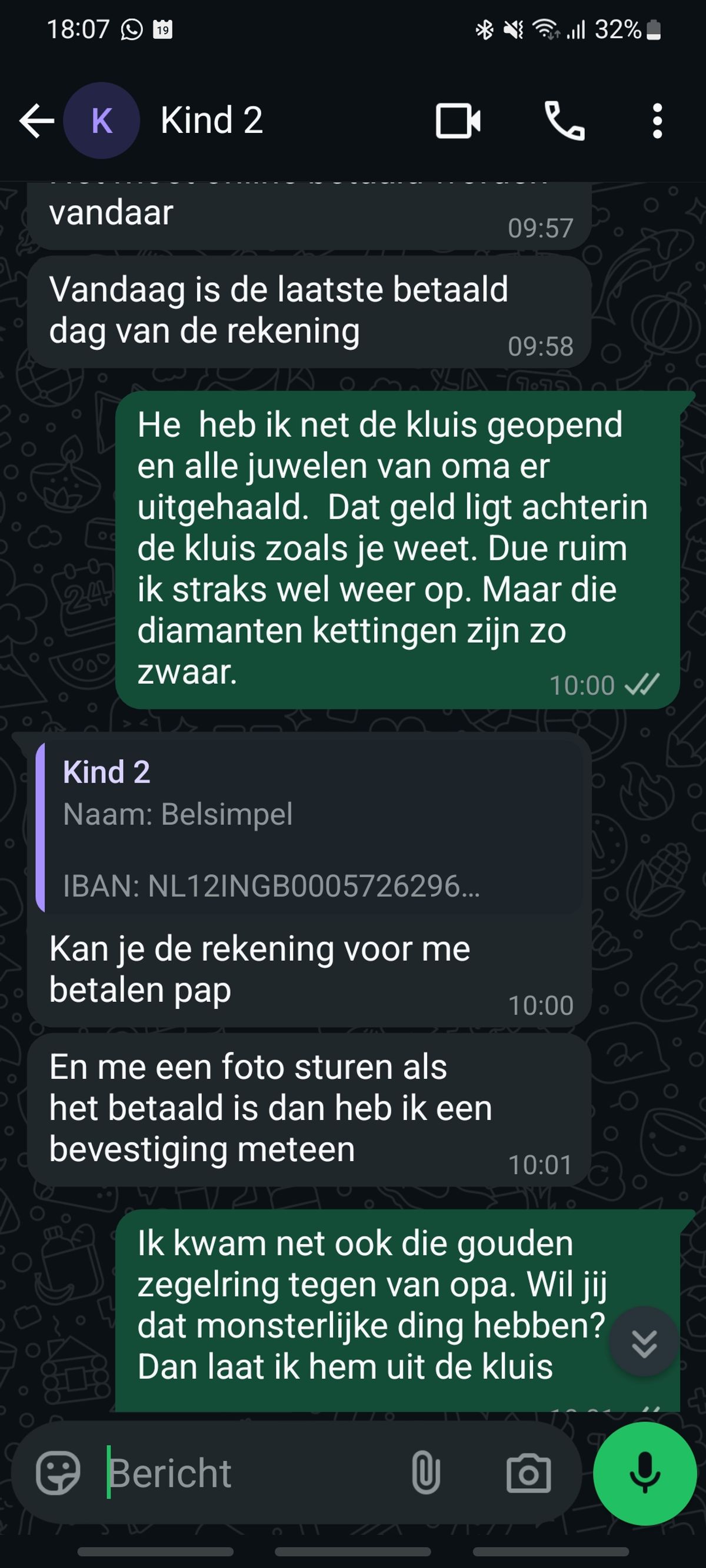 WhatsApp-oplichter wordt weer lekker lang aan de praat gehouden en eindigt met lege handen (15 screens)