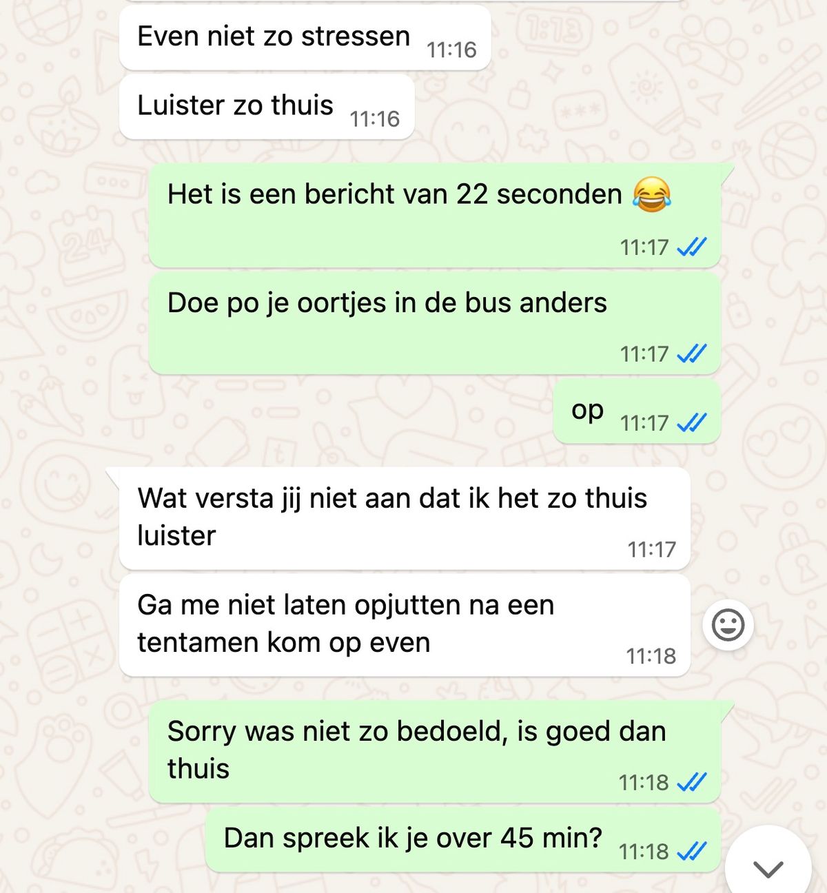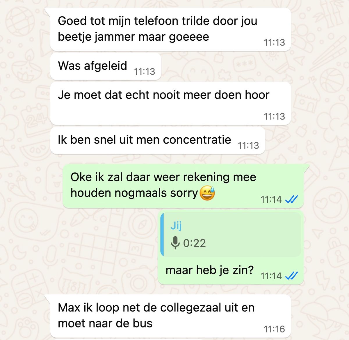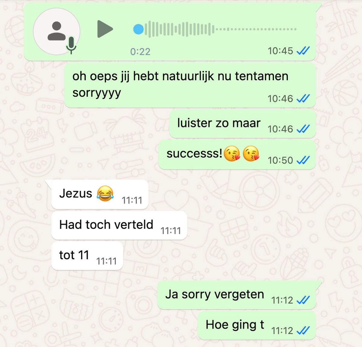Jongen nodigt zijn date via voice memo uit voor een weekendje Groningen maar was even vergeten dat ze op dat moment midden in een tentamen zat, haar reactie is nogal dramatisch (7 screens)