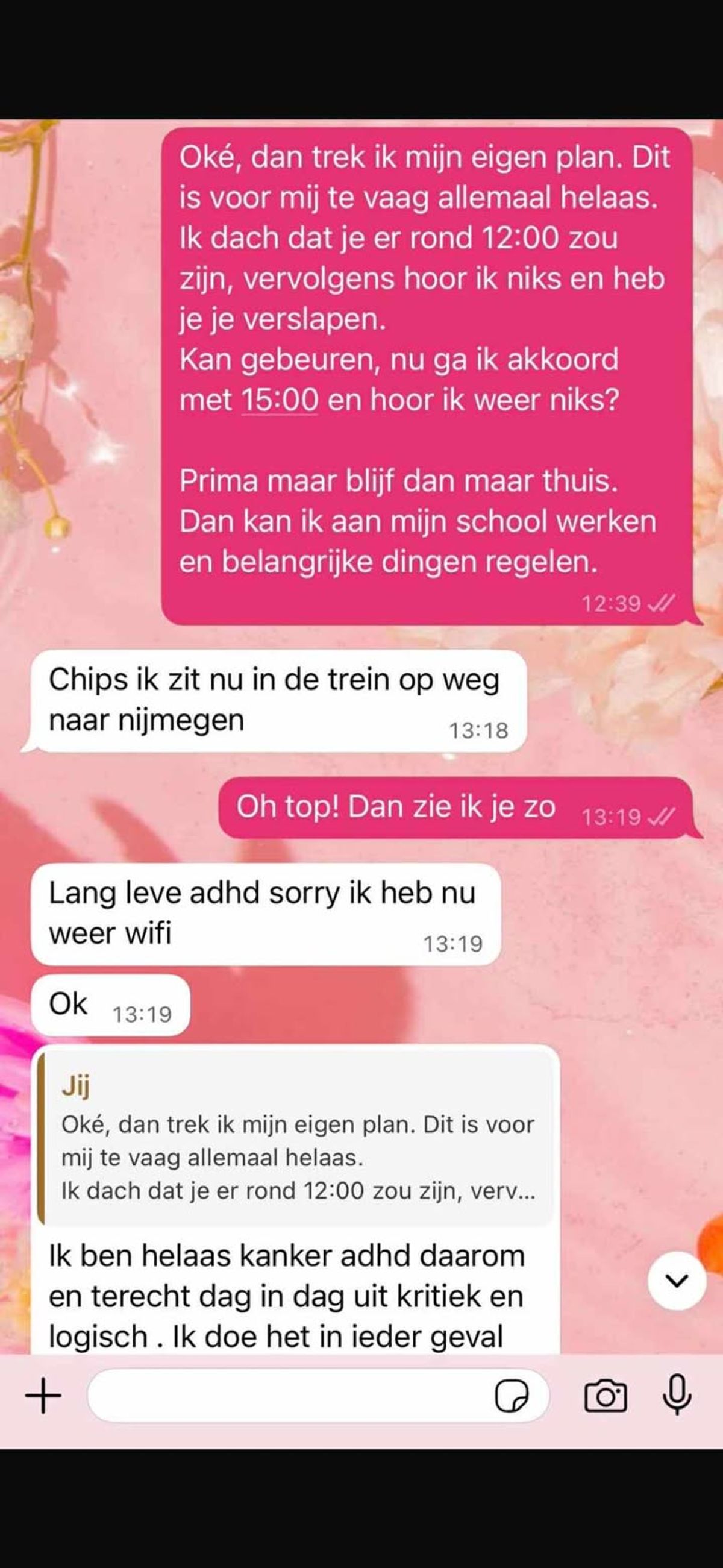 Vrouw probeert afspraak te maken met iemand die ADHD heeft maar dat is makkelijker gezegd dan gedaan (3 screens)
