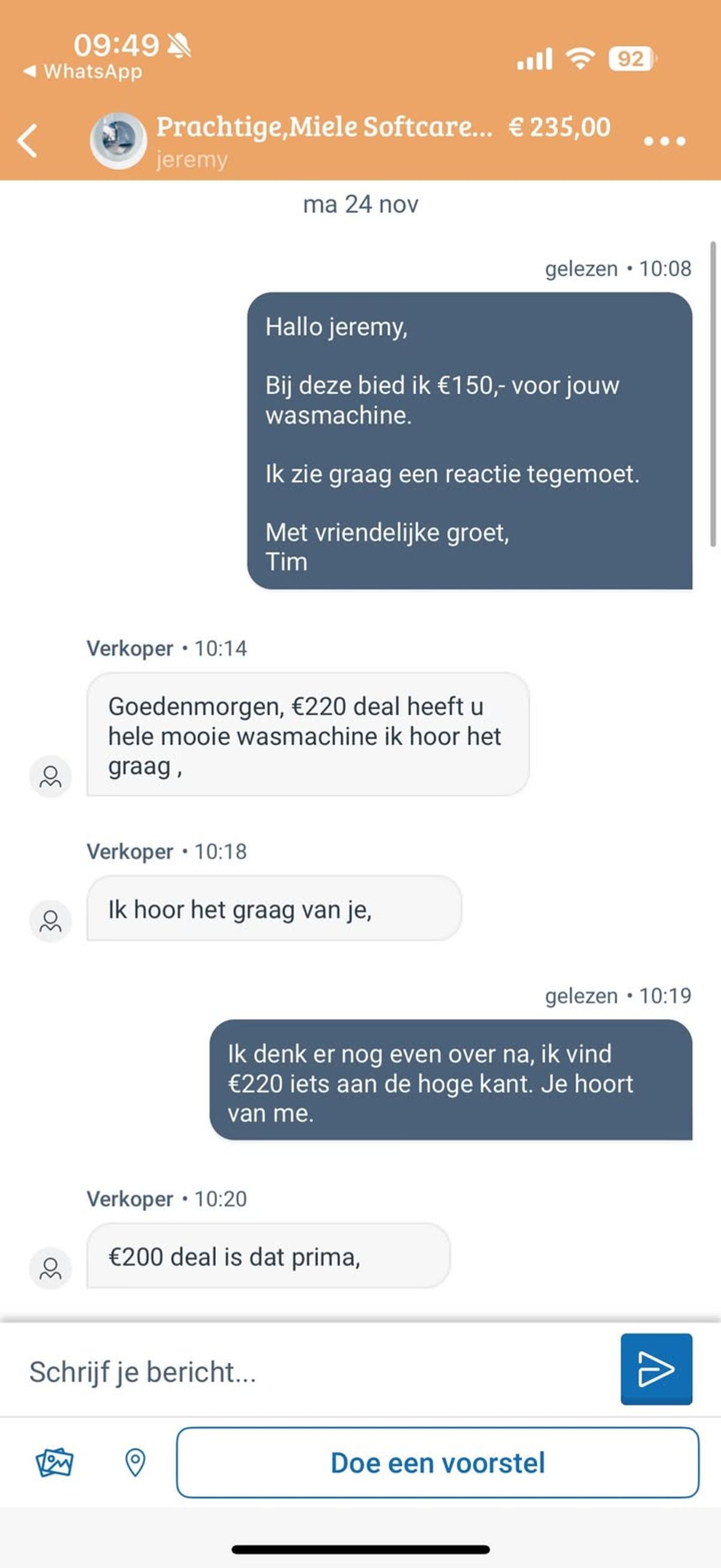 Onderhandeling op Marktplaats duurt 4 dagen omdat de verkoper niet kan hoofdrekenen (10 screens)