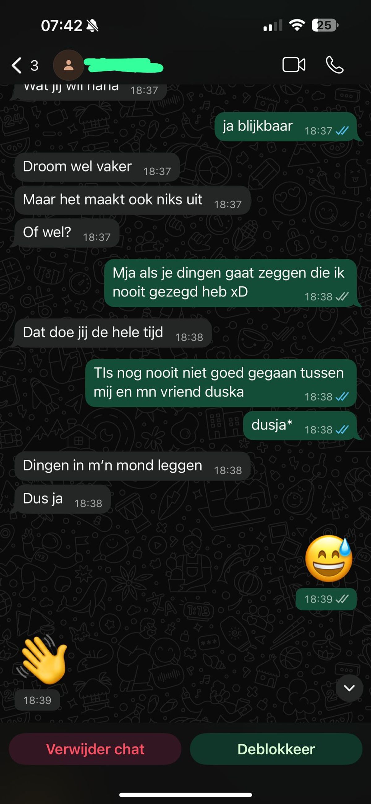 Gast die graag wat lelijker zou willen zijn heeft het vaak niet eens door als vrouwen met hem aan het flirten zijn. 'Dat is mijn tekortkoming dan hahaha' (5 screens)