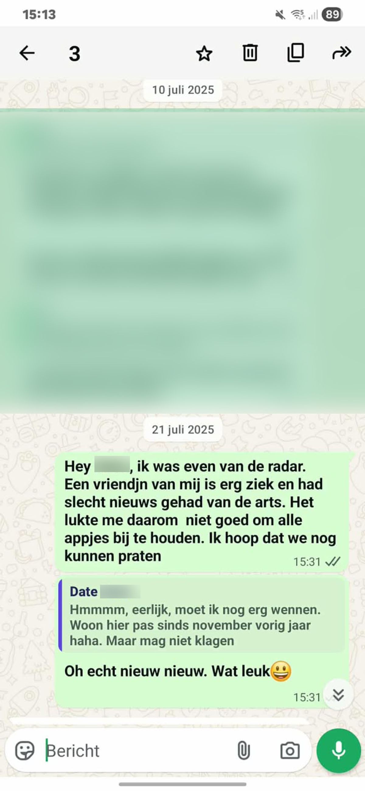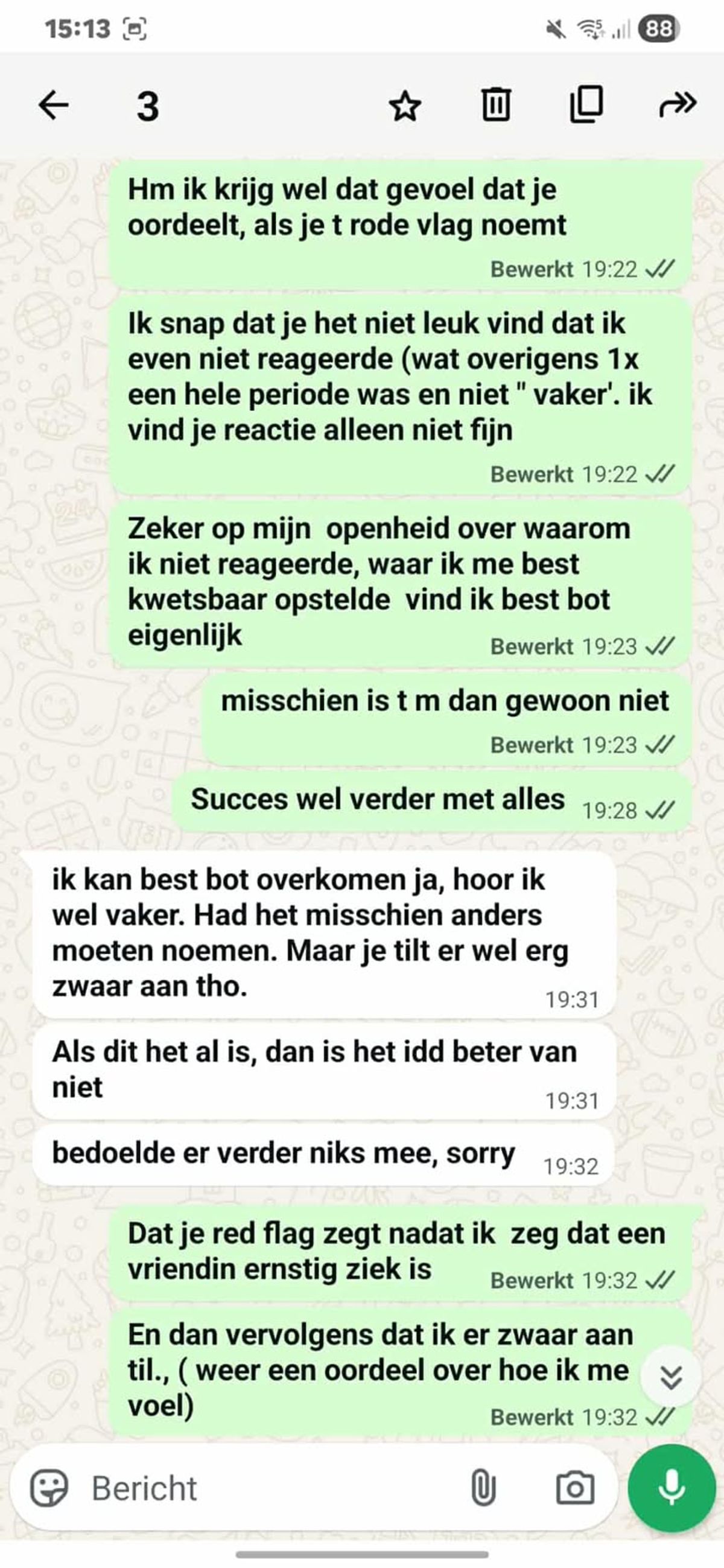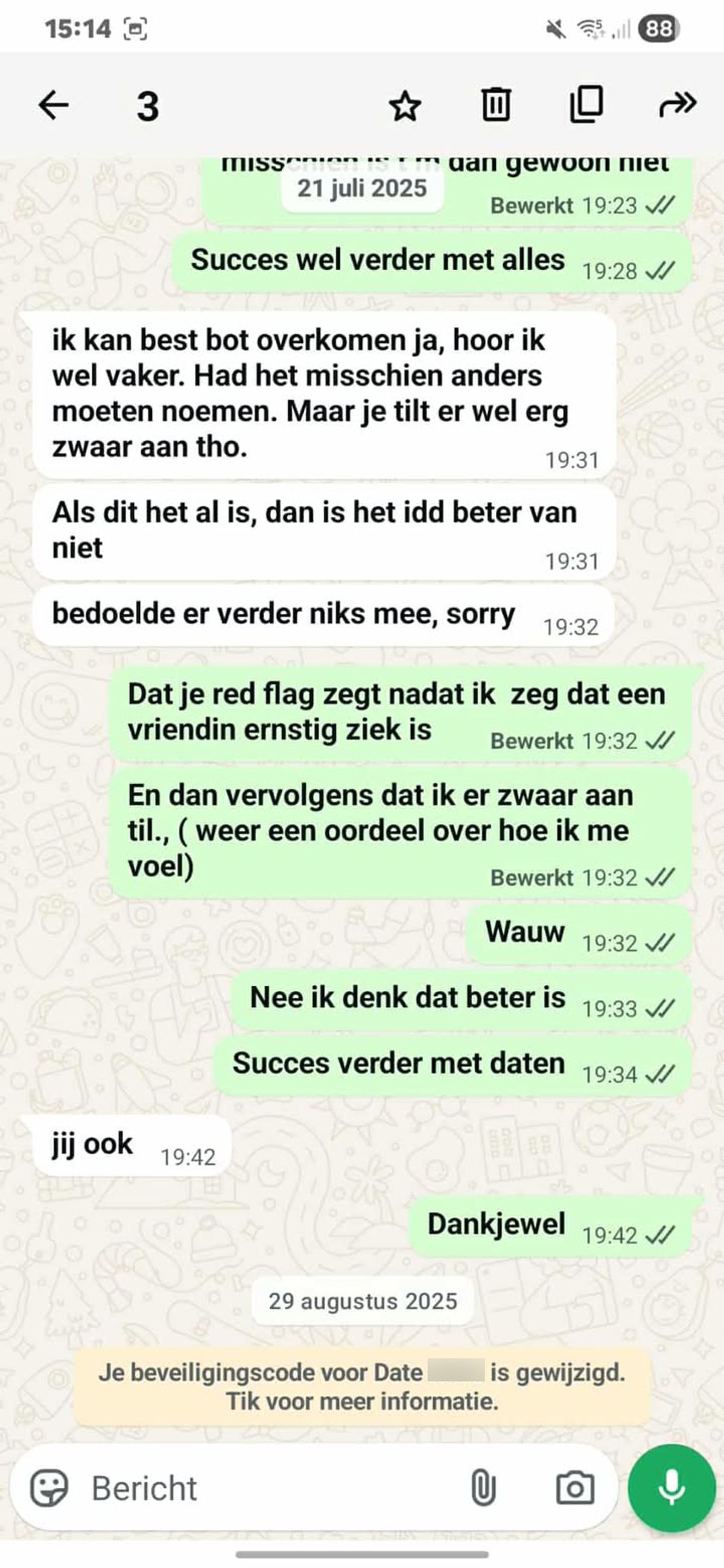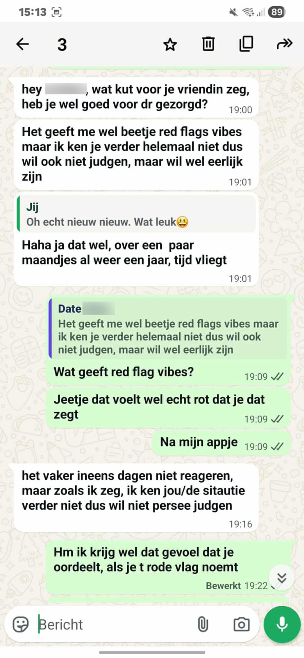 Deze gast noemt het een red flag als zijn date 1,5 week niet reageert omdat een vriendin van haar ernstig ziek is (4 screens)