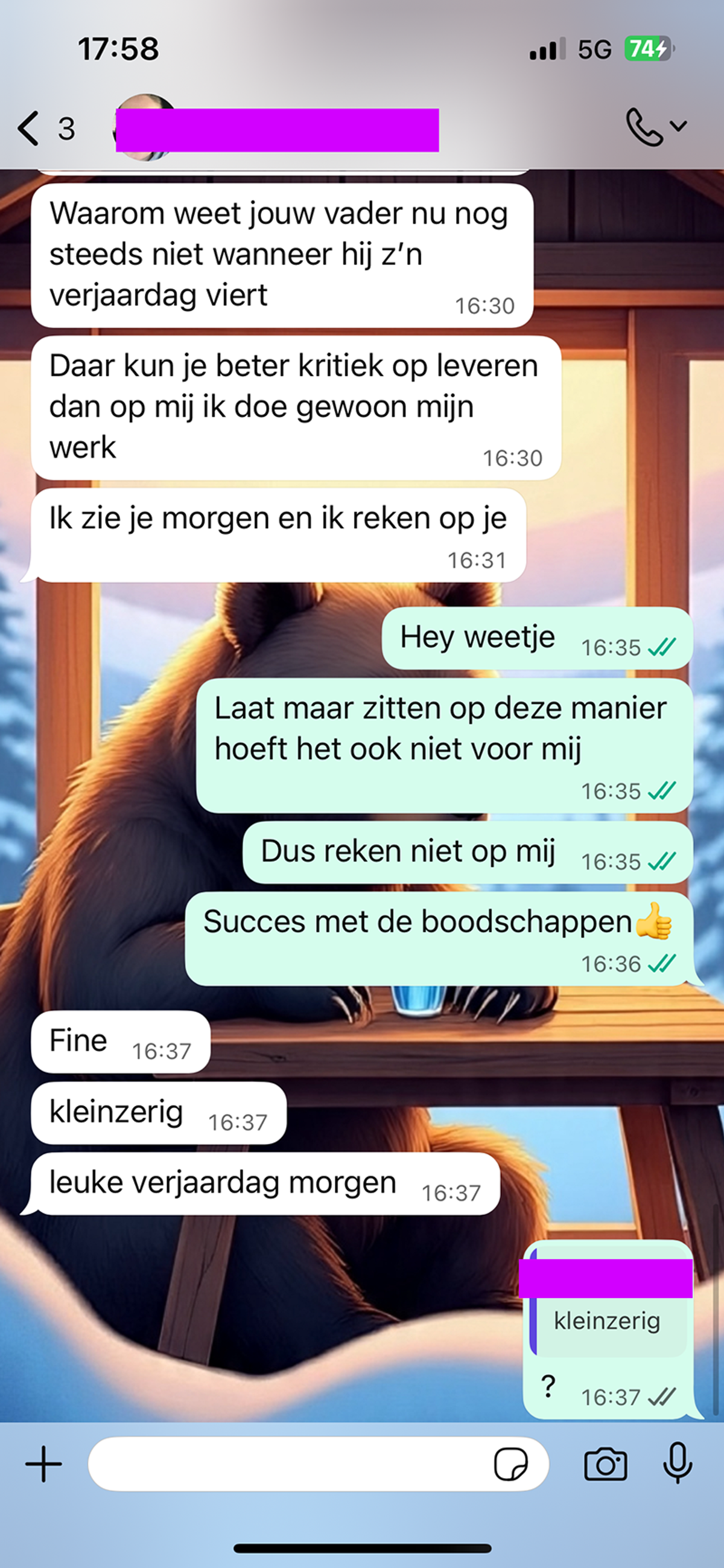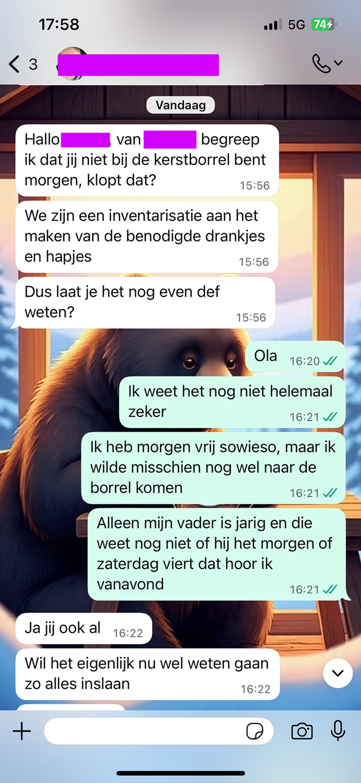 De kerststemming is in dit buurt-app-gesprek helaas ver te zoeken. 'Bel me voor het uut de hand loopt' (10 screens)
