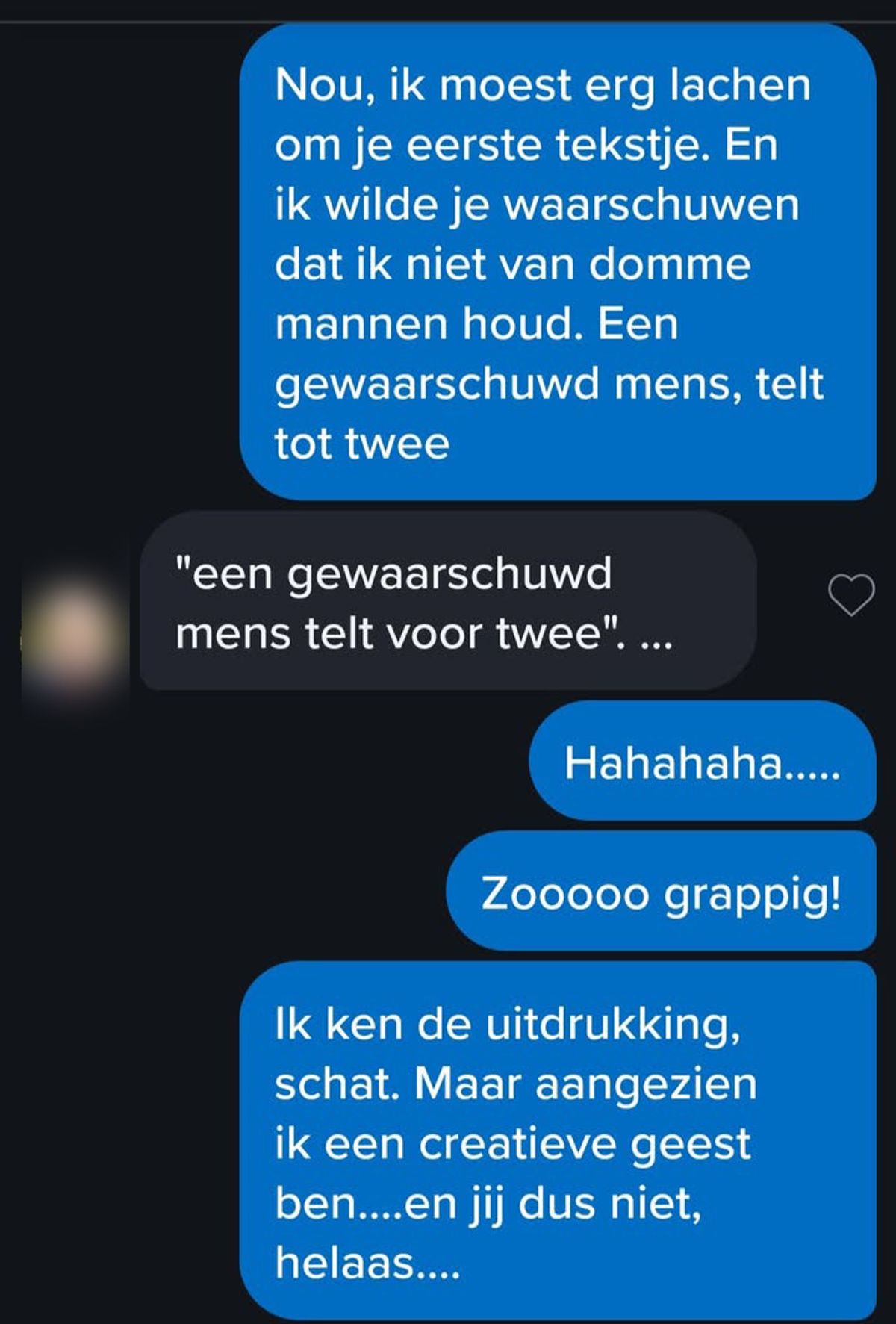 Hier weer een leuk Tinder-gesprek waarvan je zin krijgt om voor eeuwig vrijgezel te blijven (15 screens)