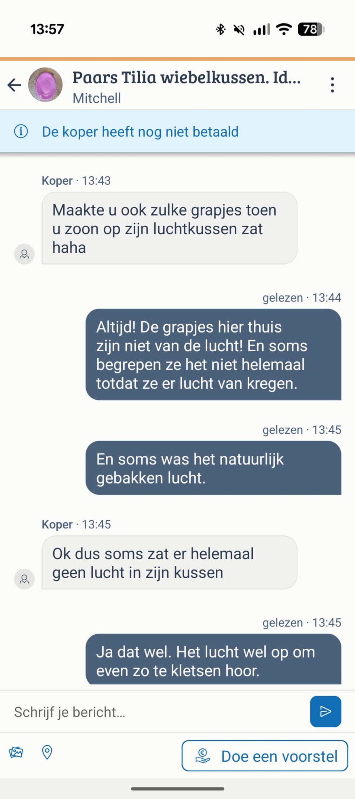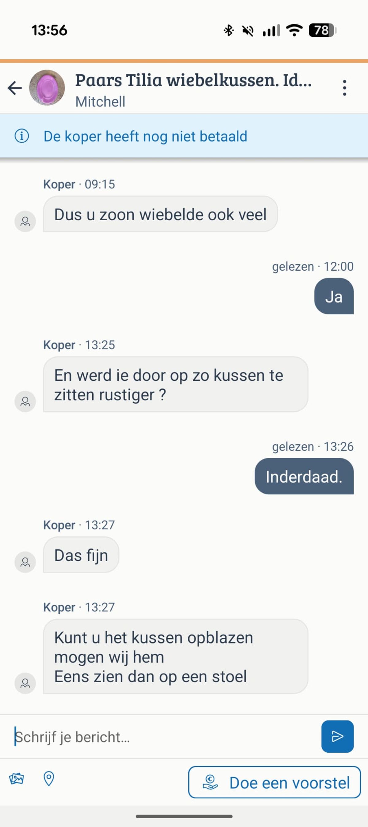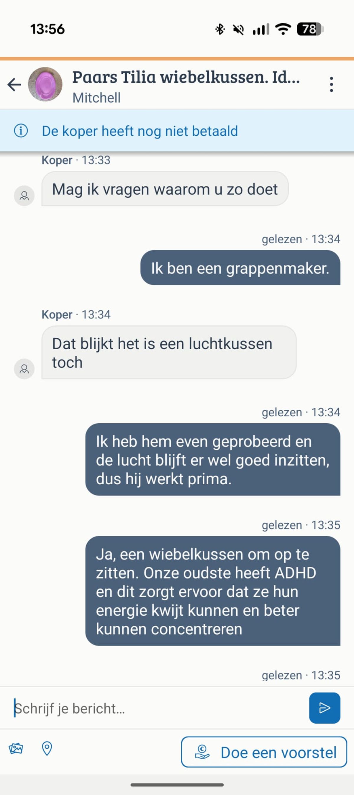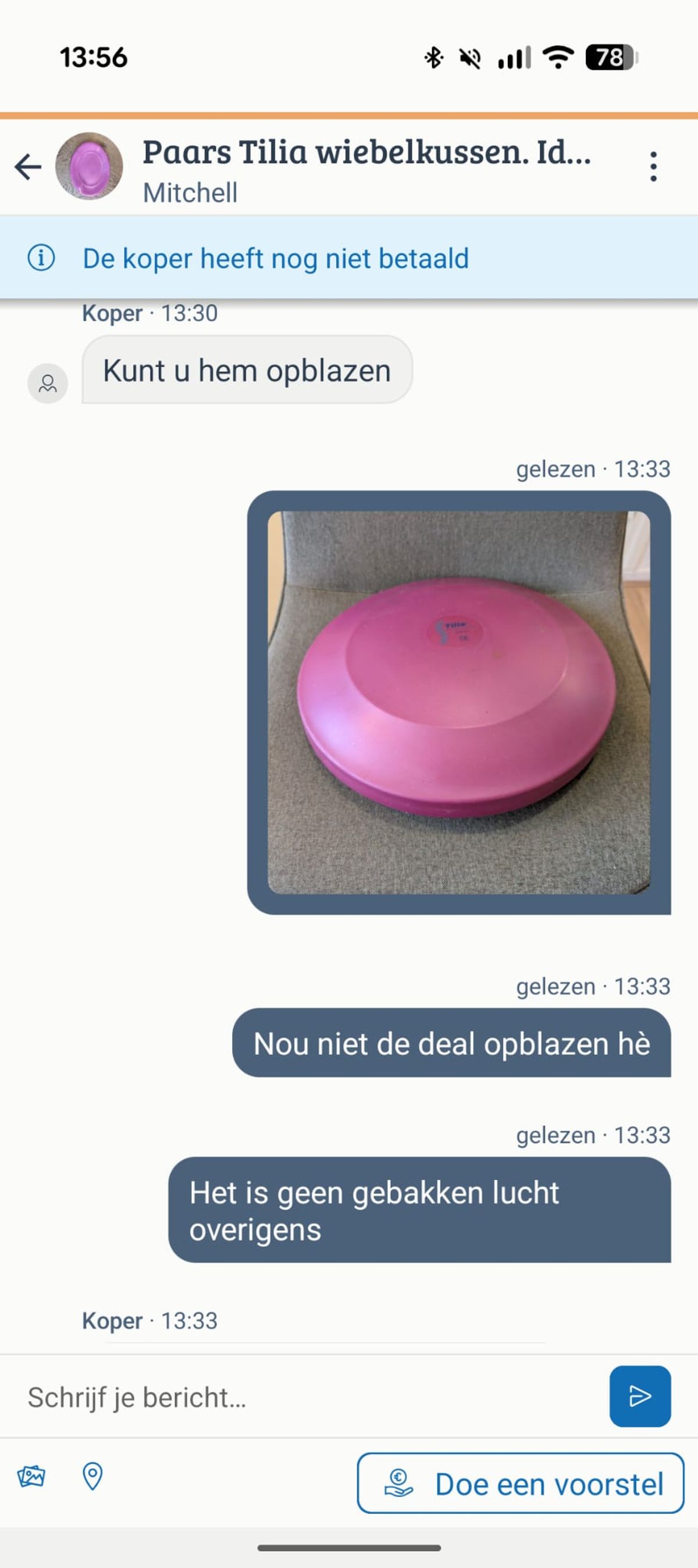 Man probeert een wiebelkussen te verkopen op Marktplaats en het gesprek met deze koper verloopt gelukkig eindelijk een keer lekker luchtig (14 screens)