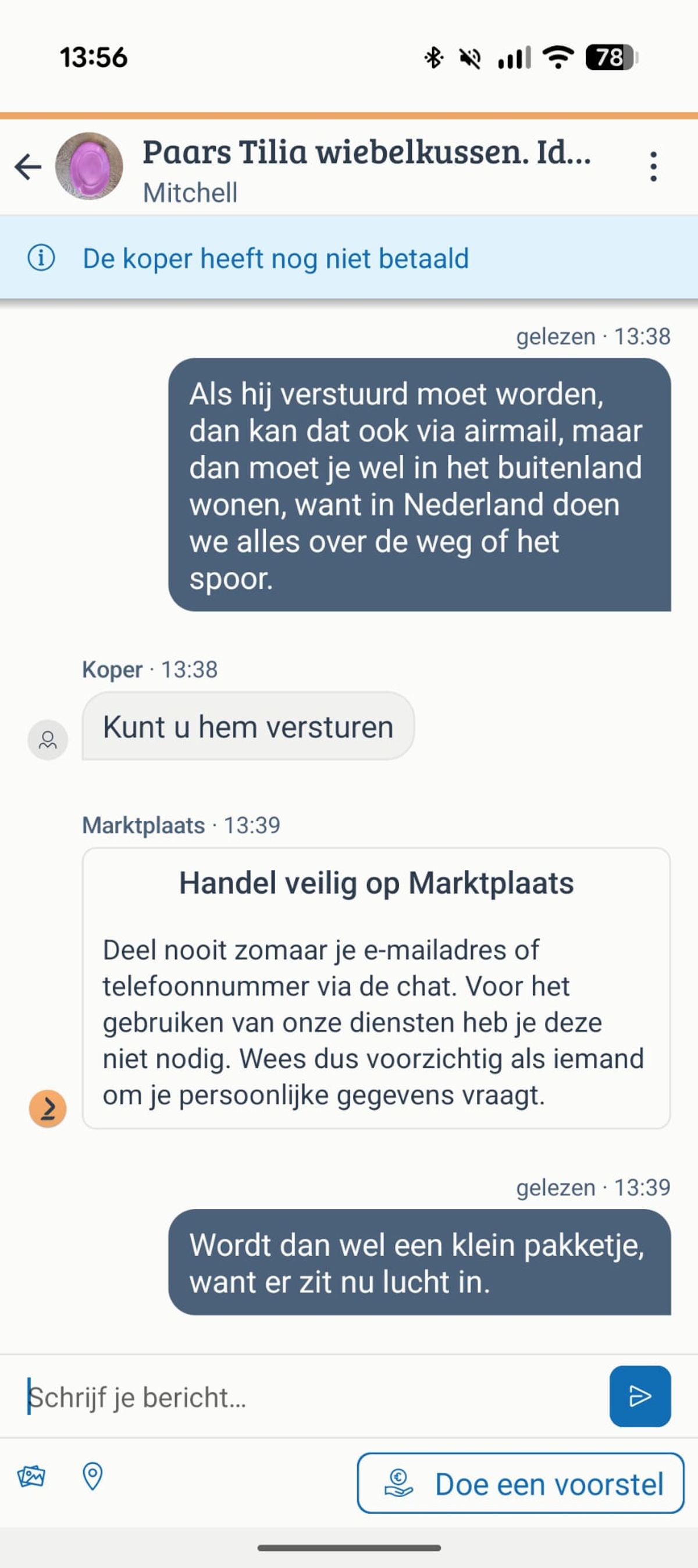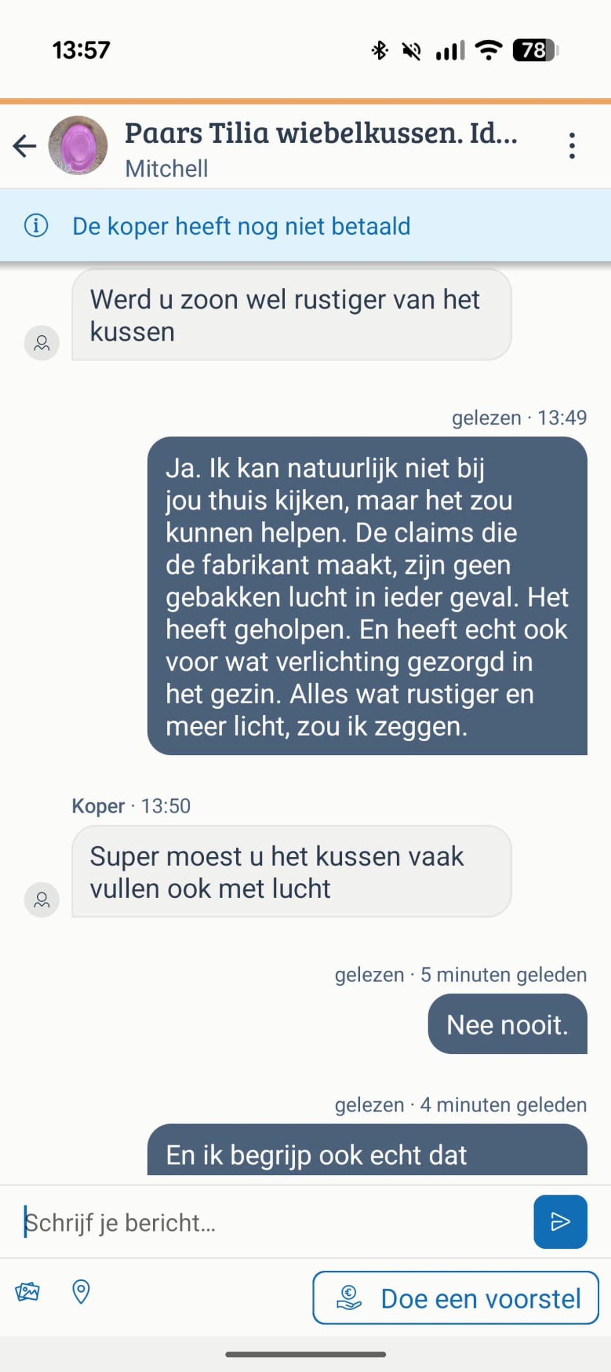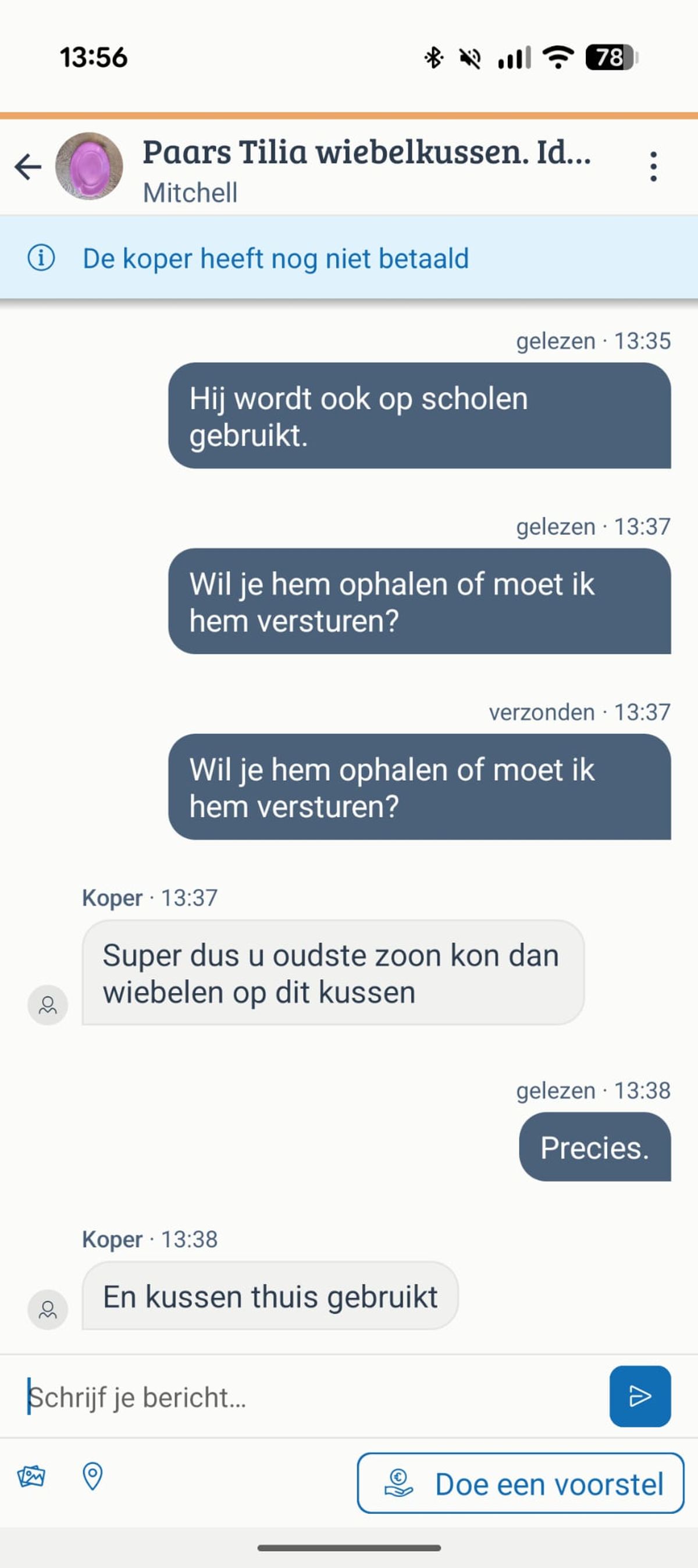 Man probeert een wiebelkussen te verkopen op Marktplaats en het gesprek met deze koper verloopt gelukkig eindelijk een keer lekker luchtig (14 screens)