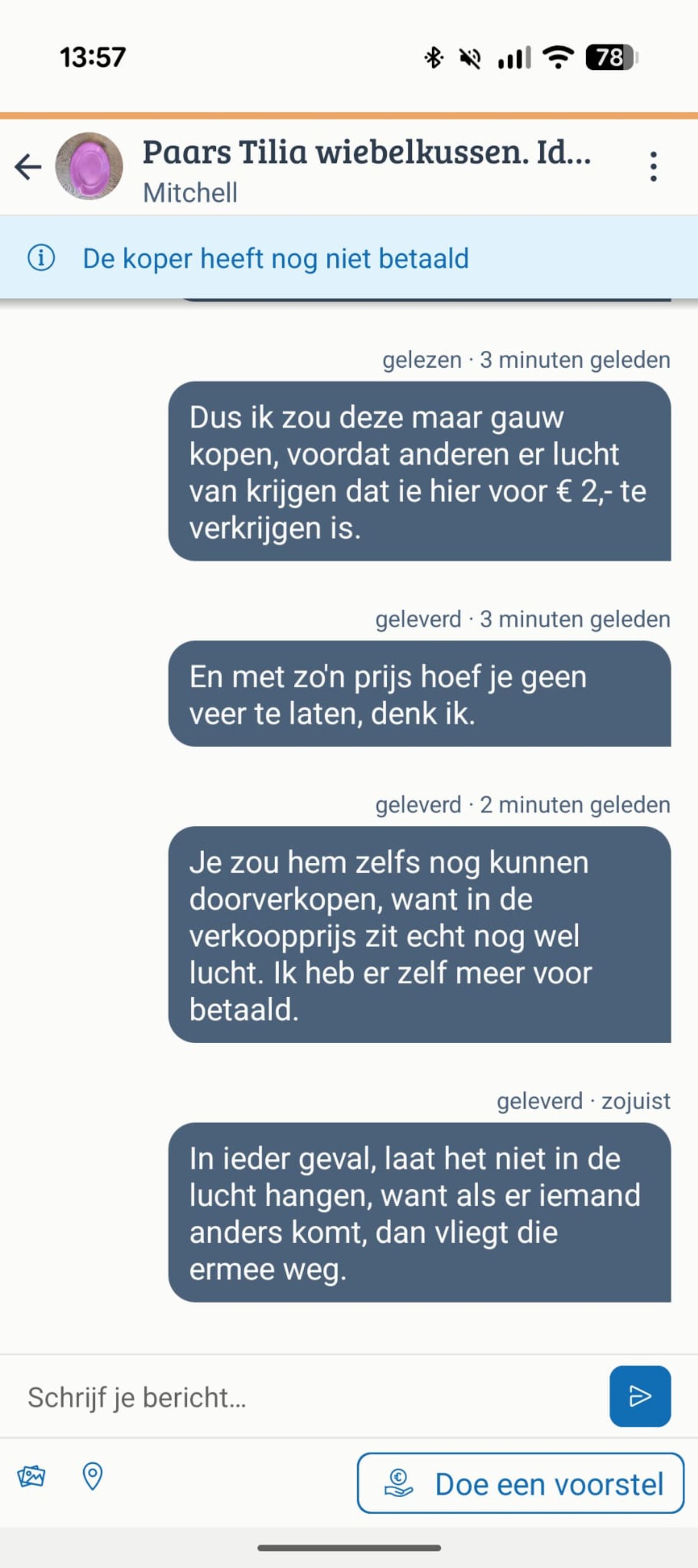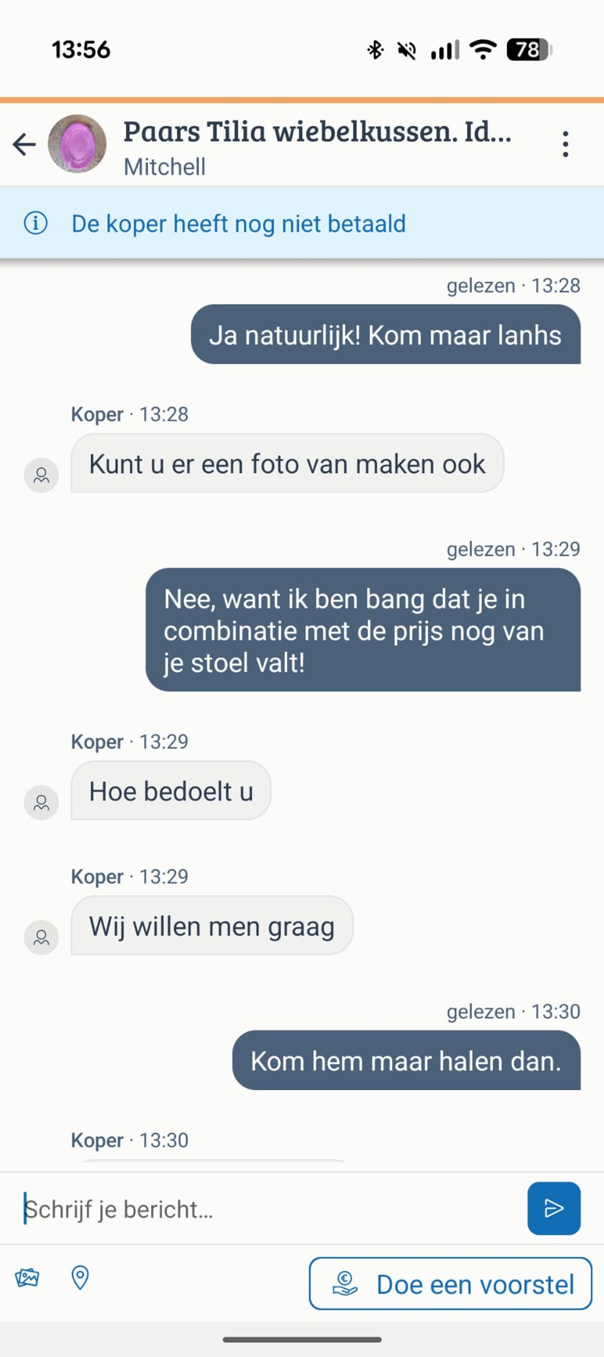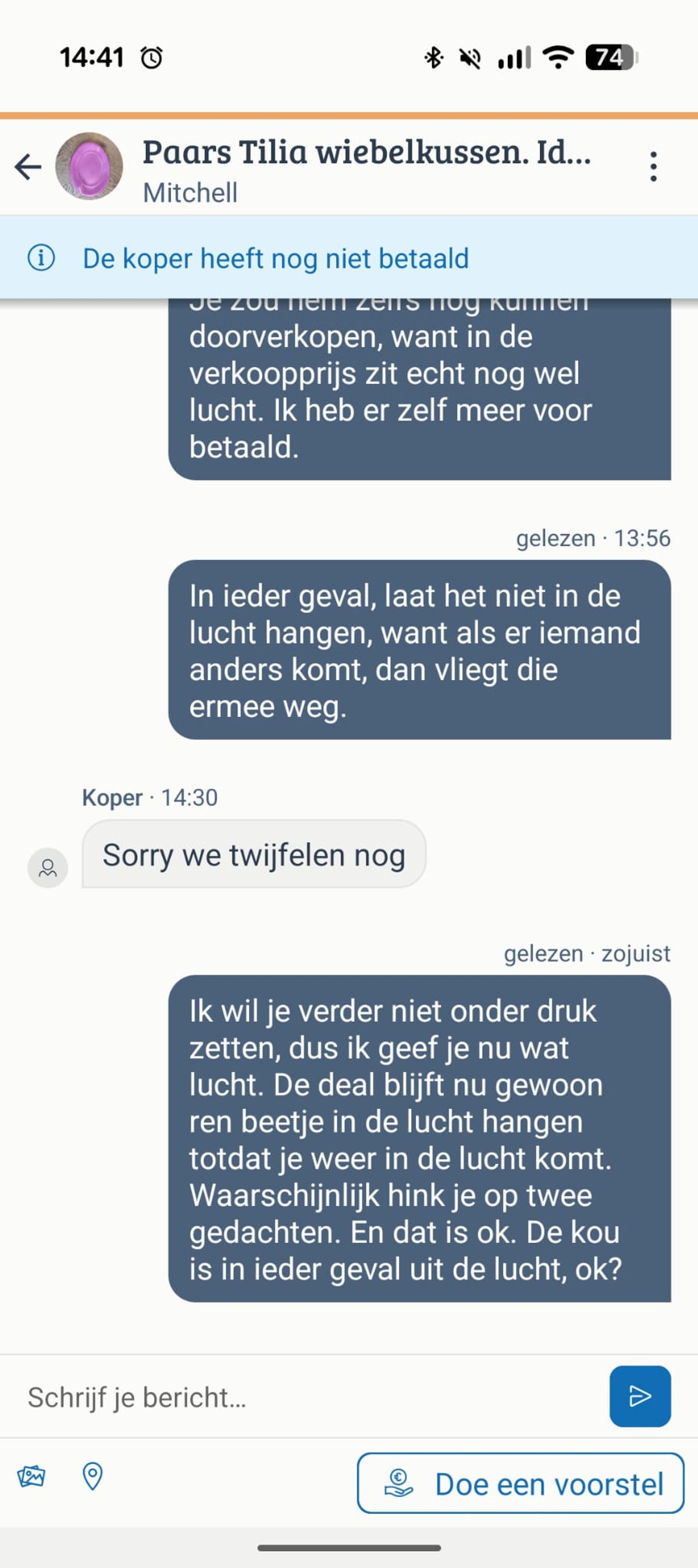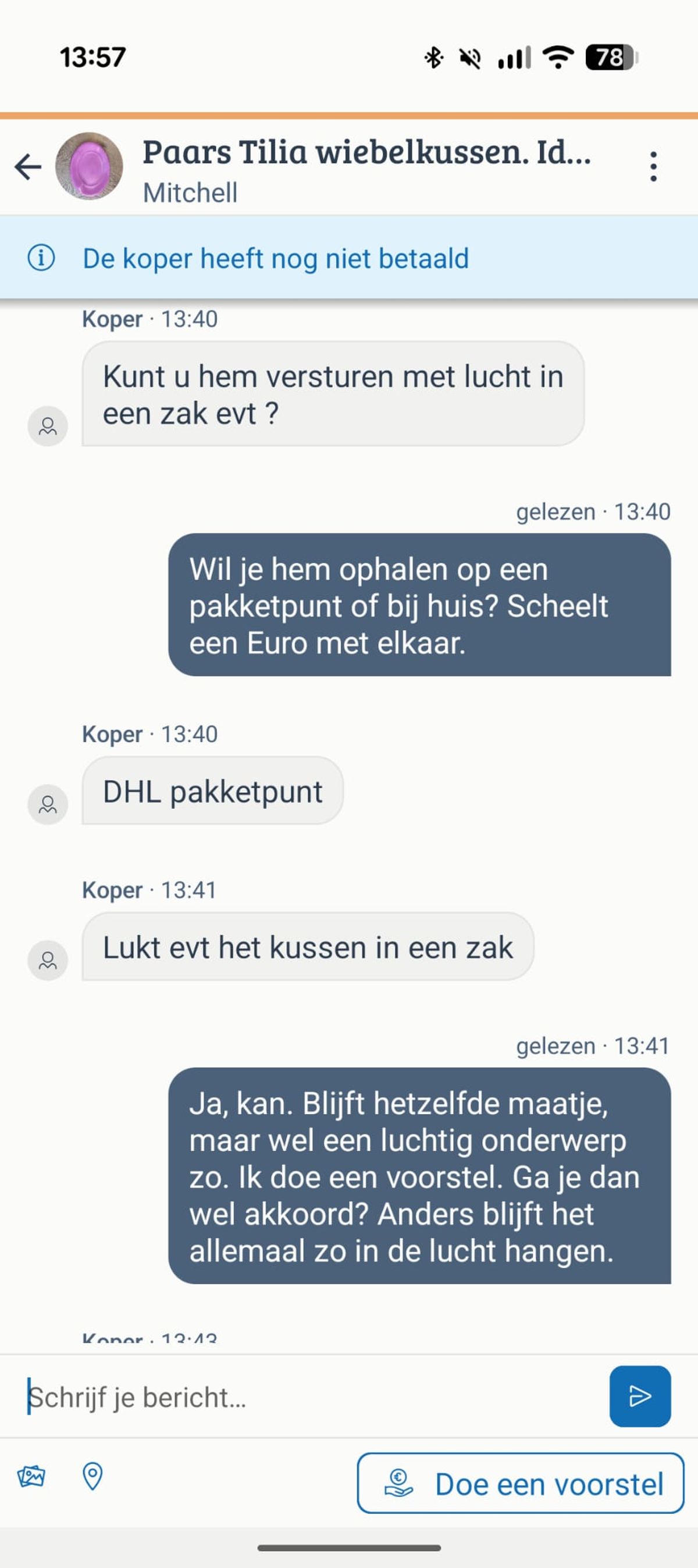 Man probeert een wiebelkussen te verkopen op Marktplaats en het gesprek met deze koper verloopt gelukkig eindelijk een keer lekker luchtig (14 screens)