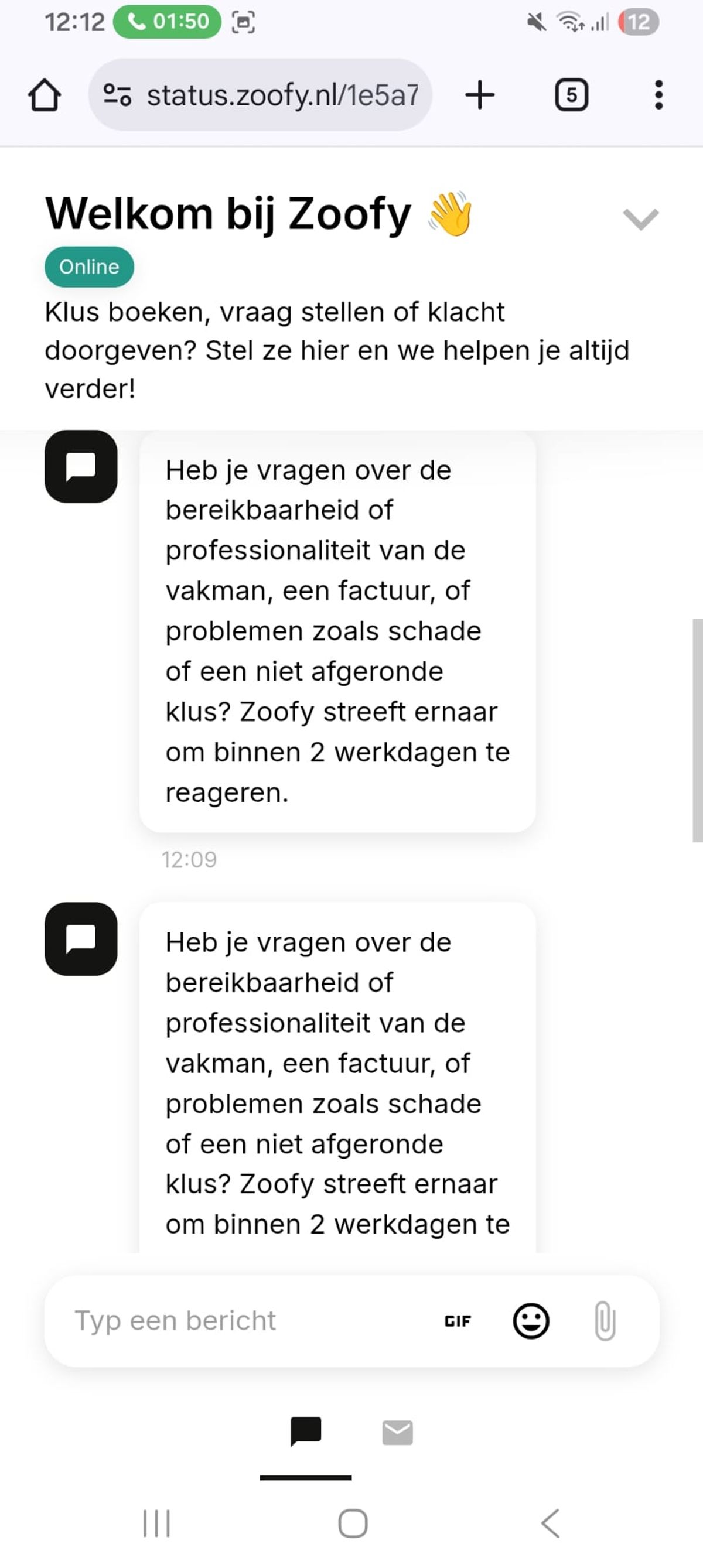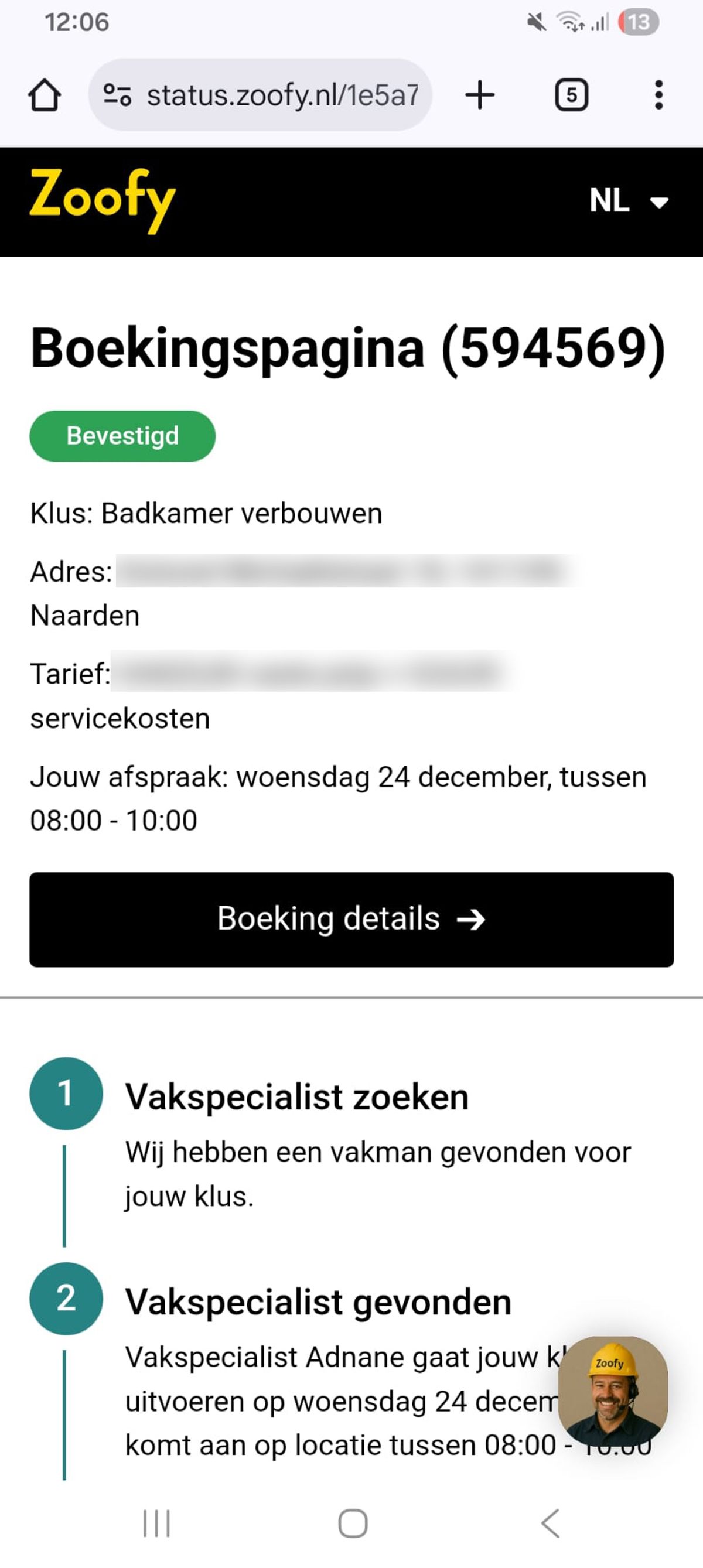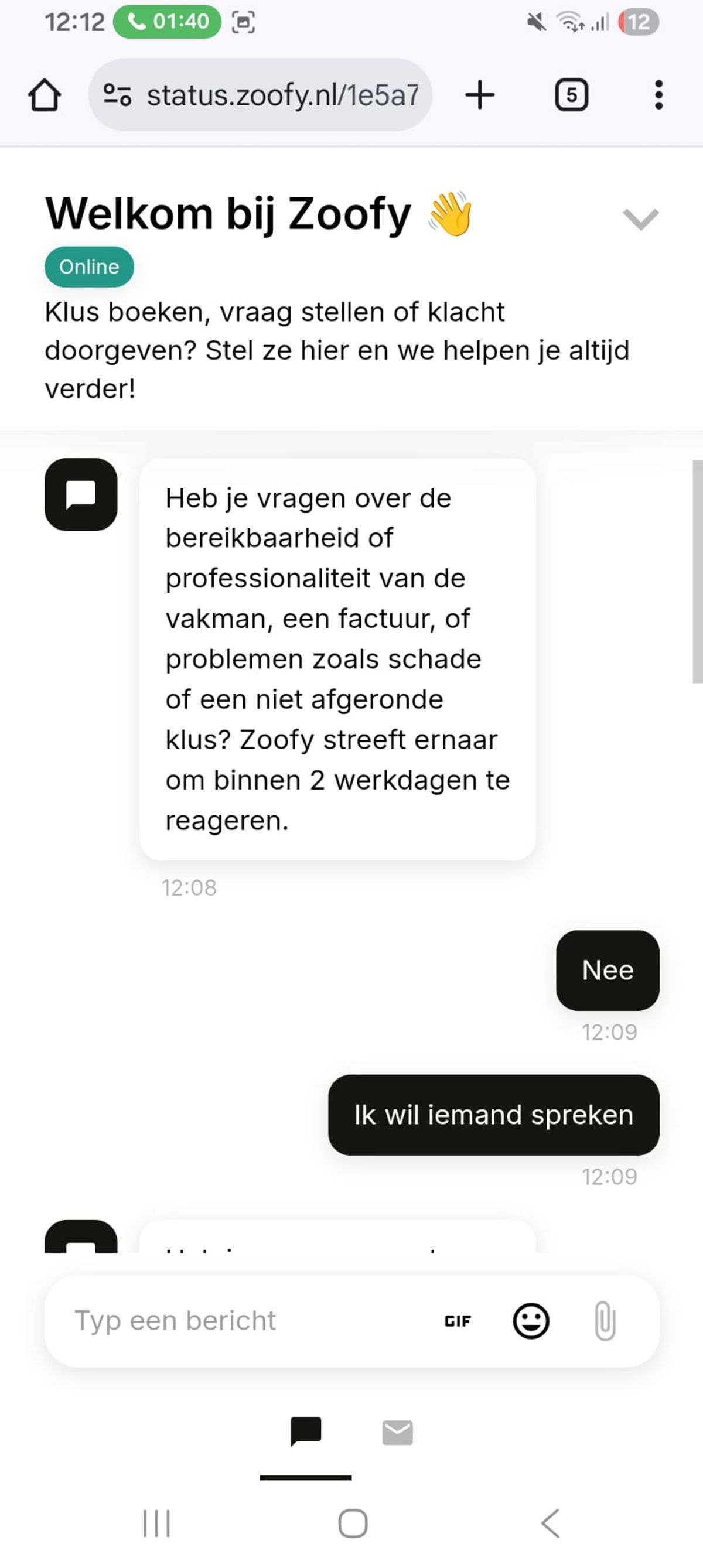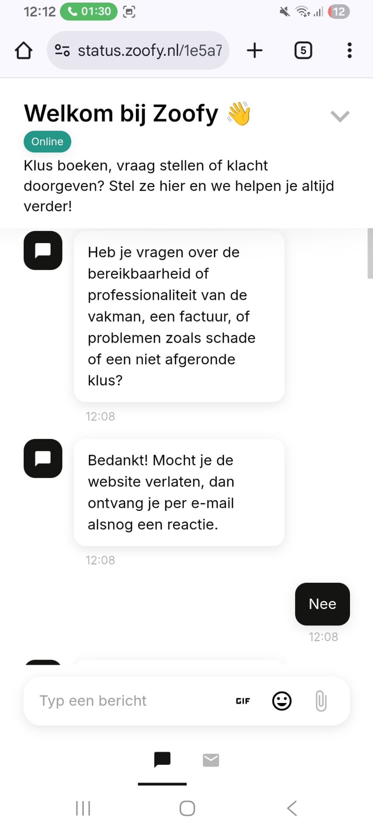 Hier weer een gezellig voorbeeld van de vet mislukte online klantenservice van klusplatform Zoofy (8 screens)