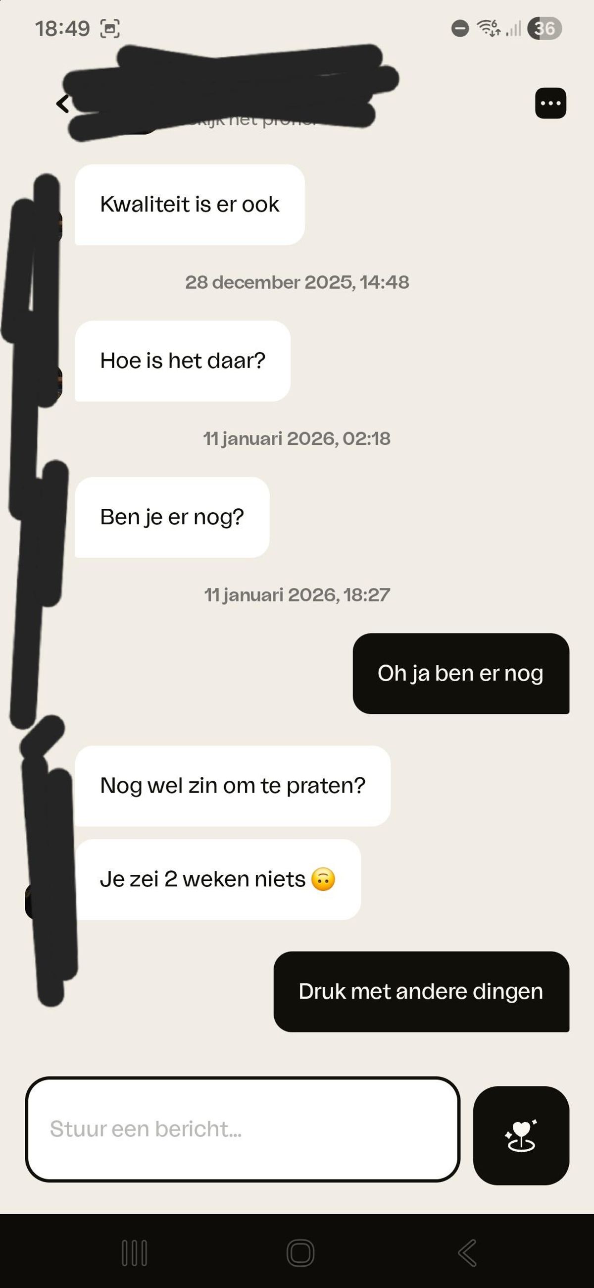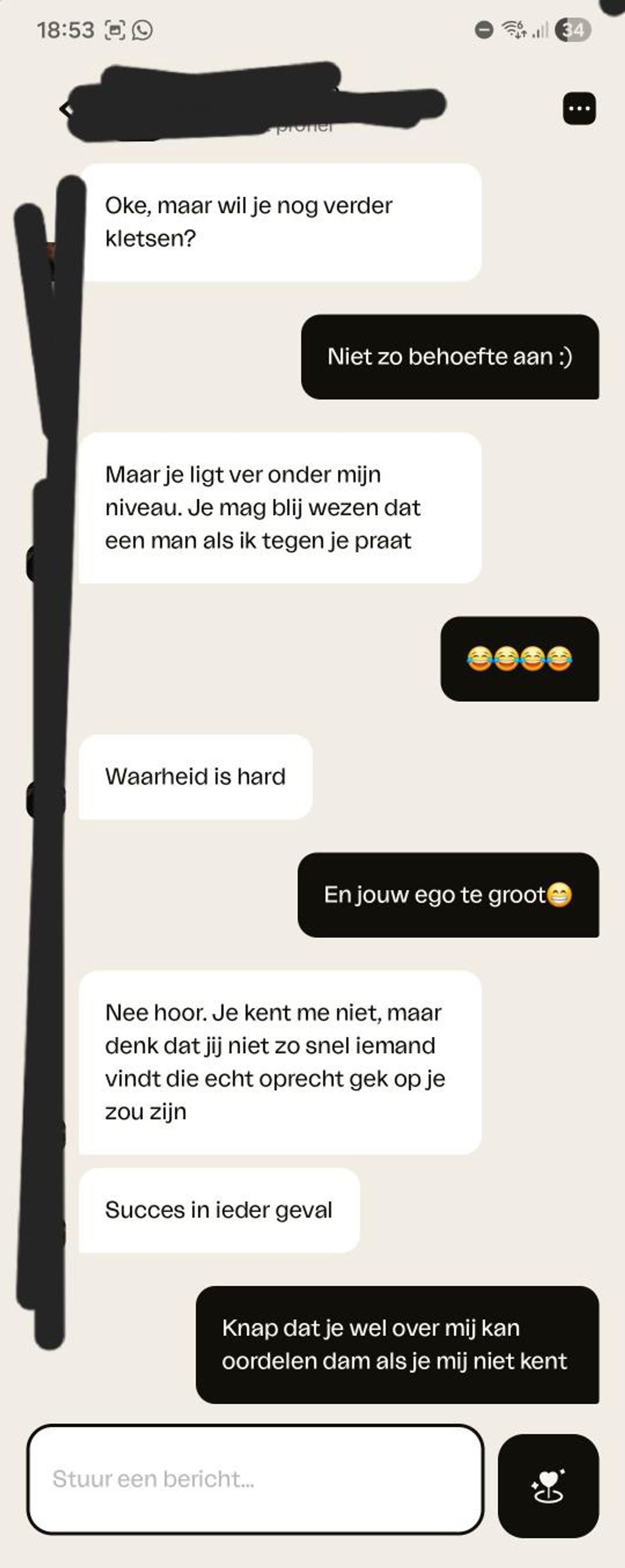 Gast van Bumble gooit meteen z'n hele levensverhaal in een voice note op WhatsApp en reageert nogal beledigd als zijn date geen interesse meer in hem heeft (5 screens)