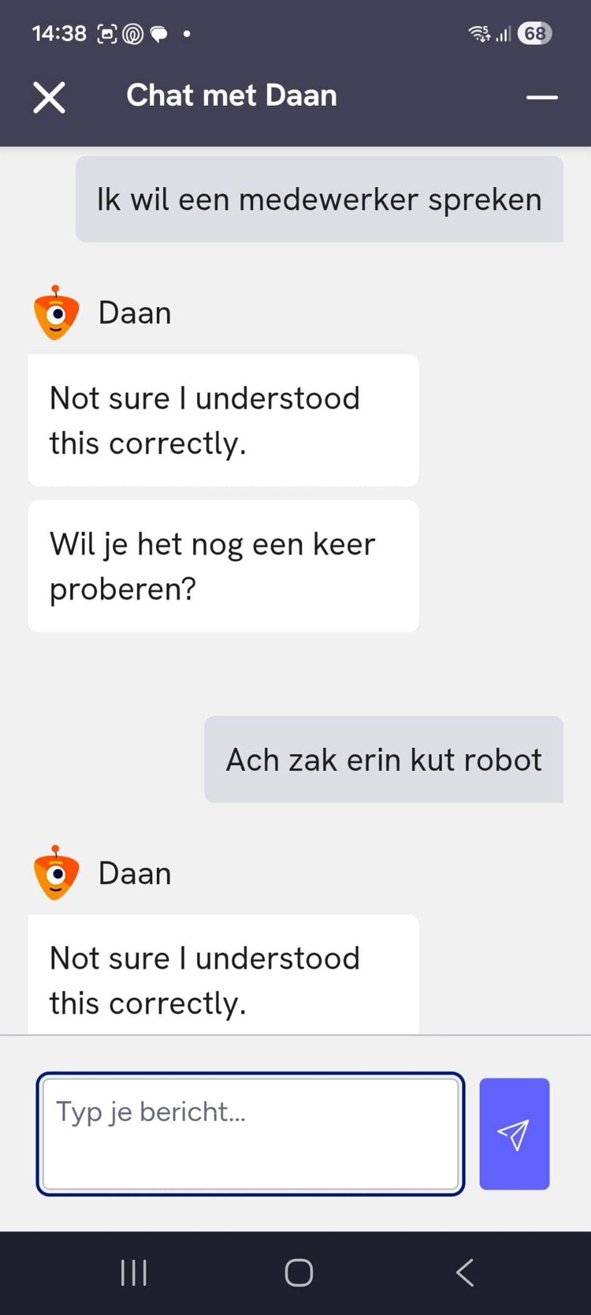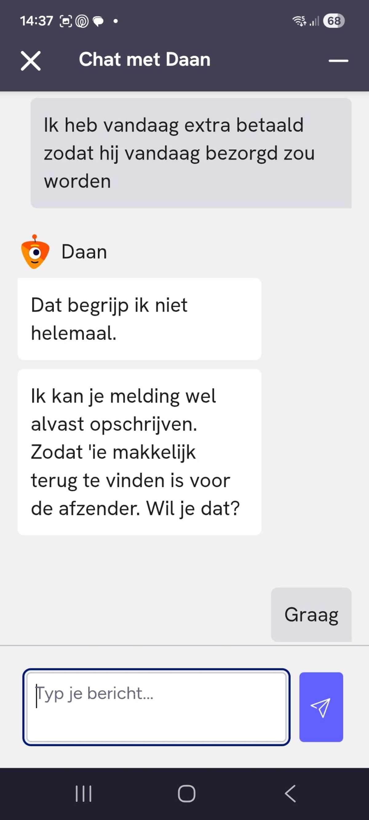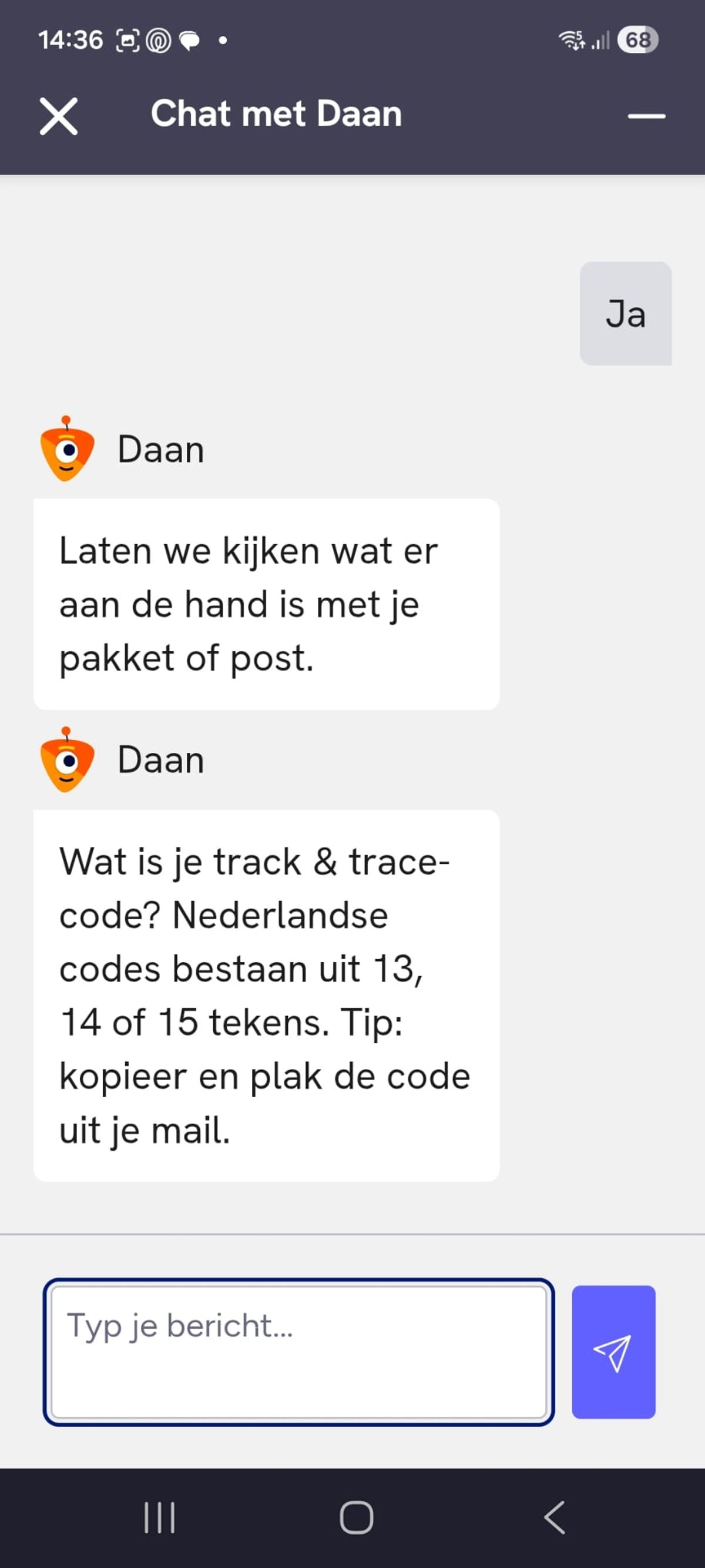Hier weer een leuk gesprek met de klantenserice van PostNL waar je dus eigenlijk helemaal niks aan hebt (10 screens)