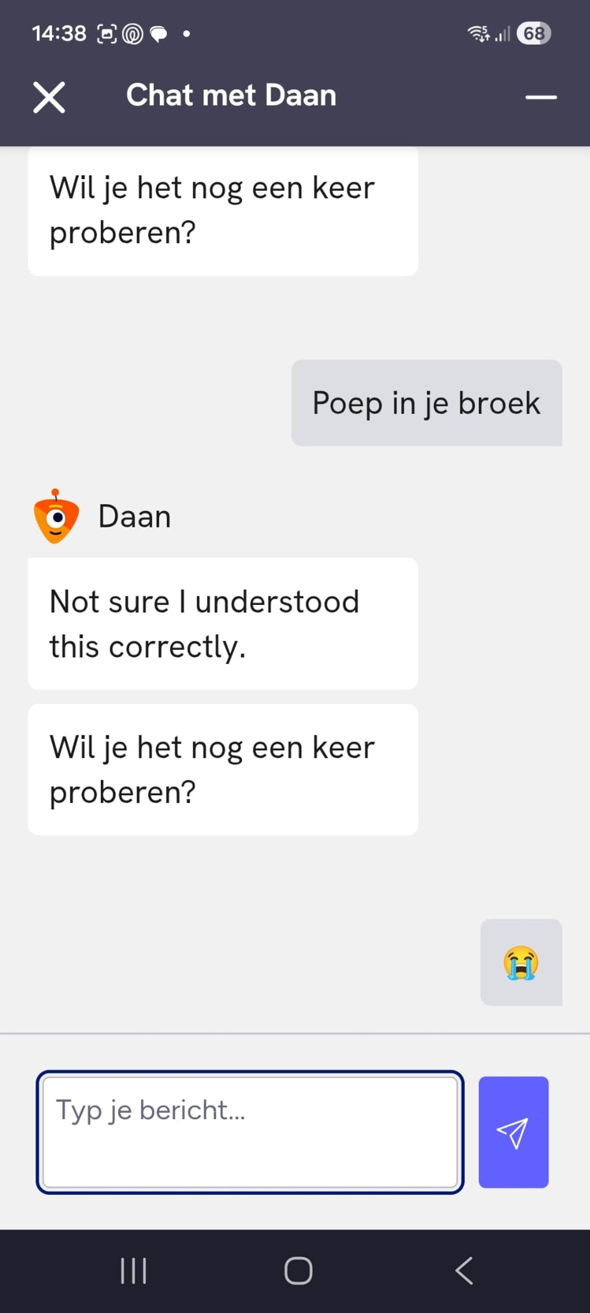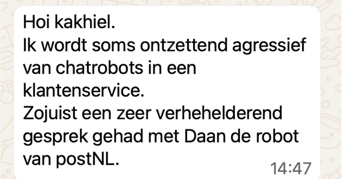 Dit gesprek met de klantenservice van PostNL eindigt op nogal abrupt op een vrij bijzondere manier (14 screens)