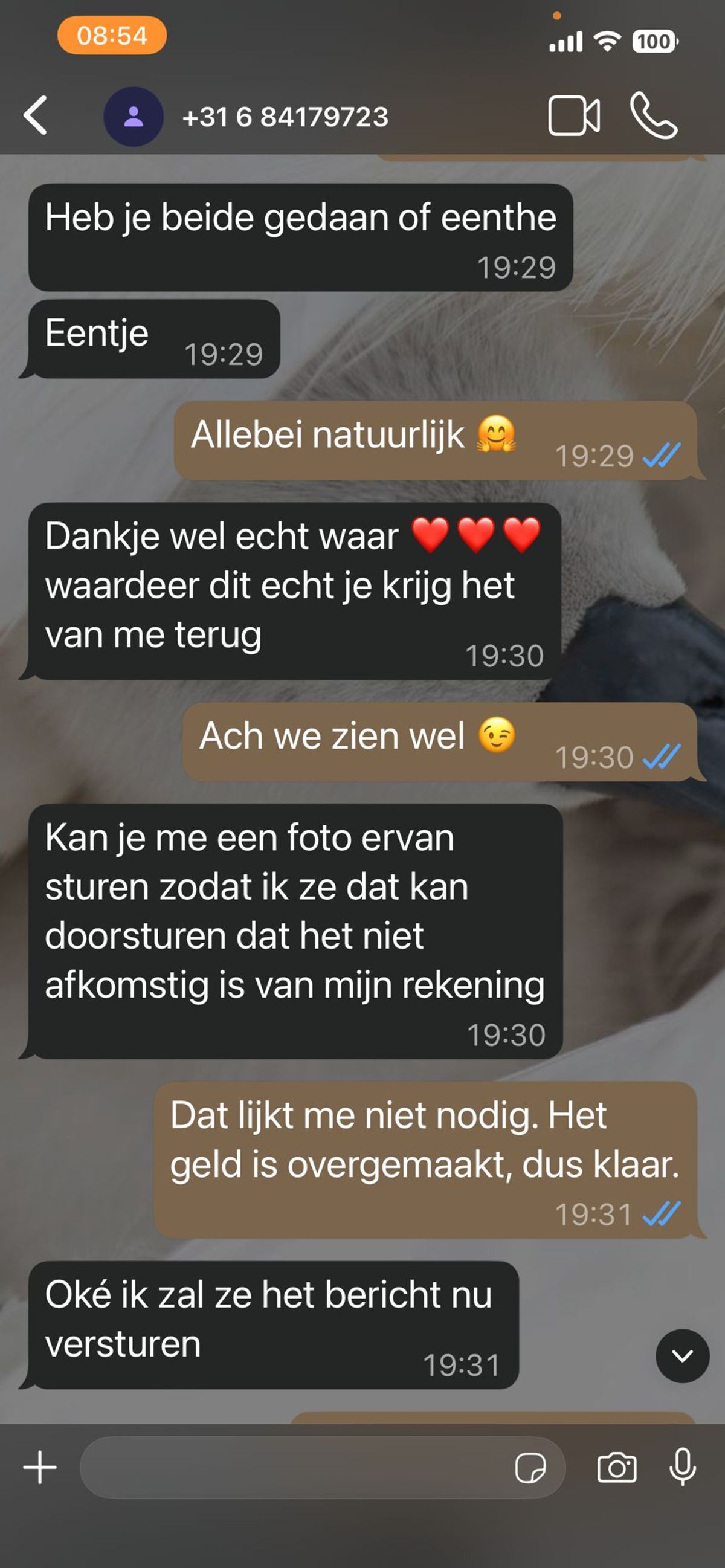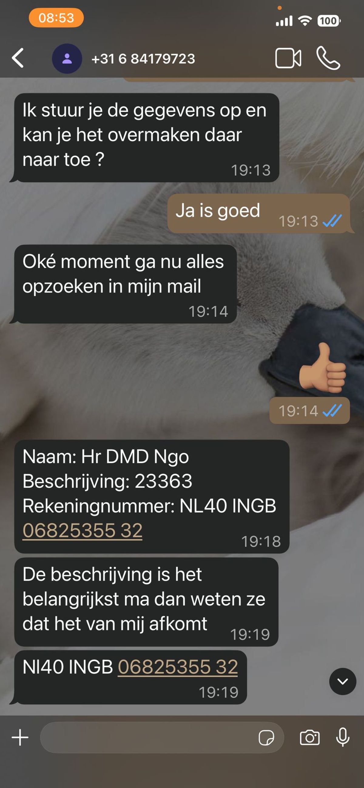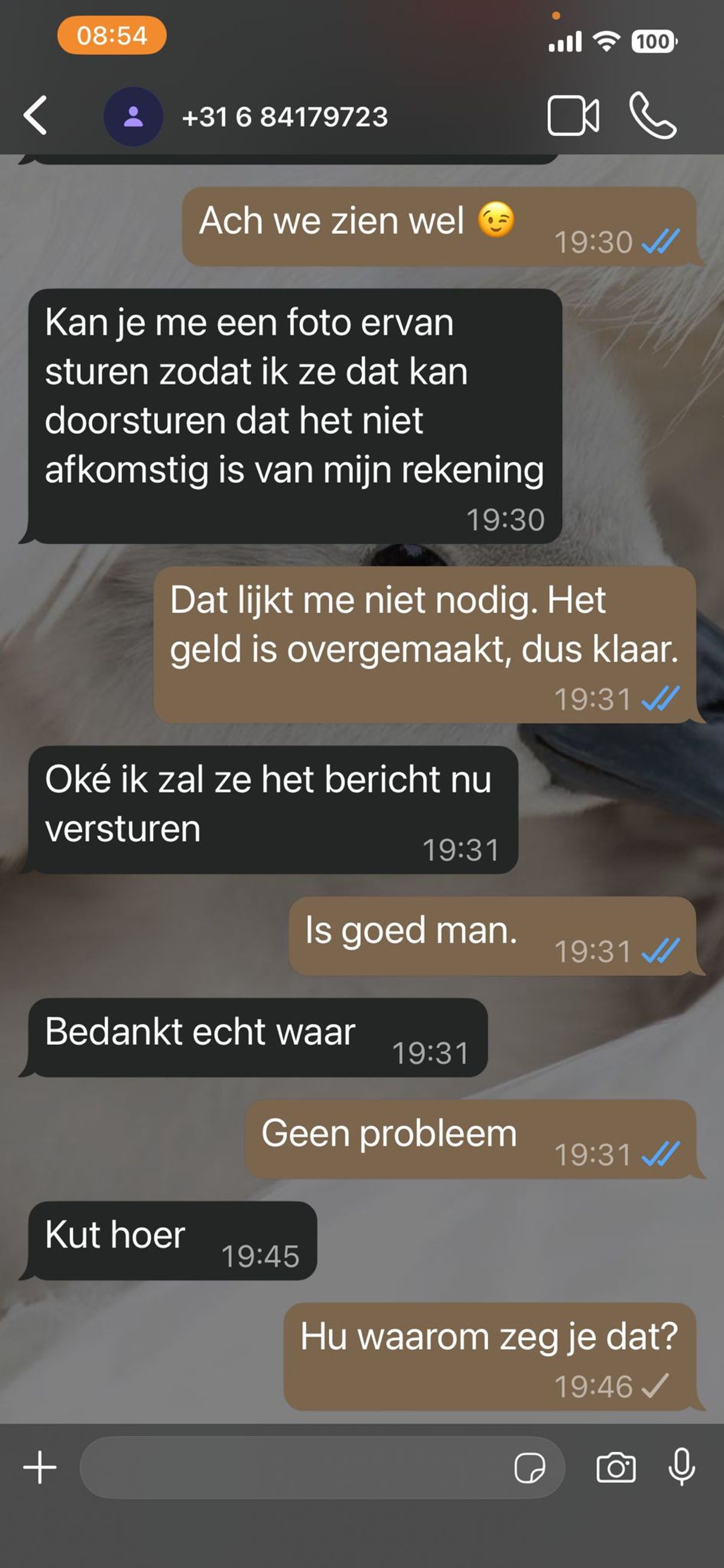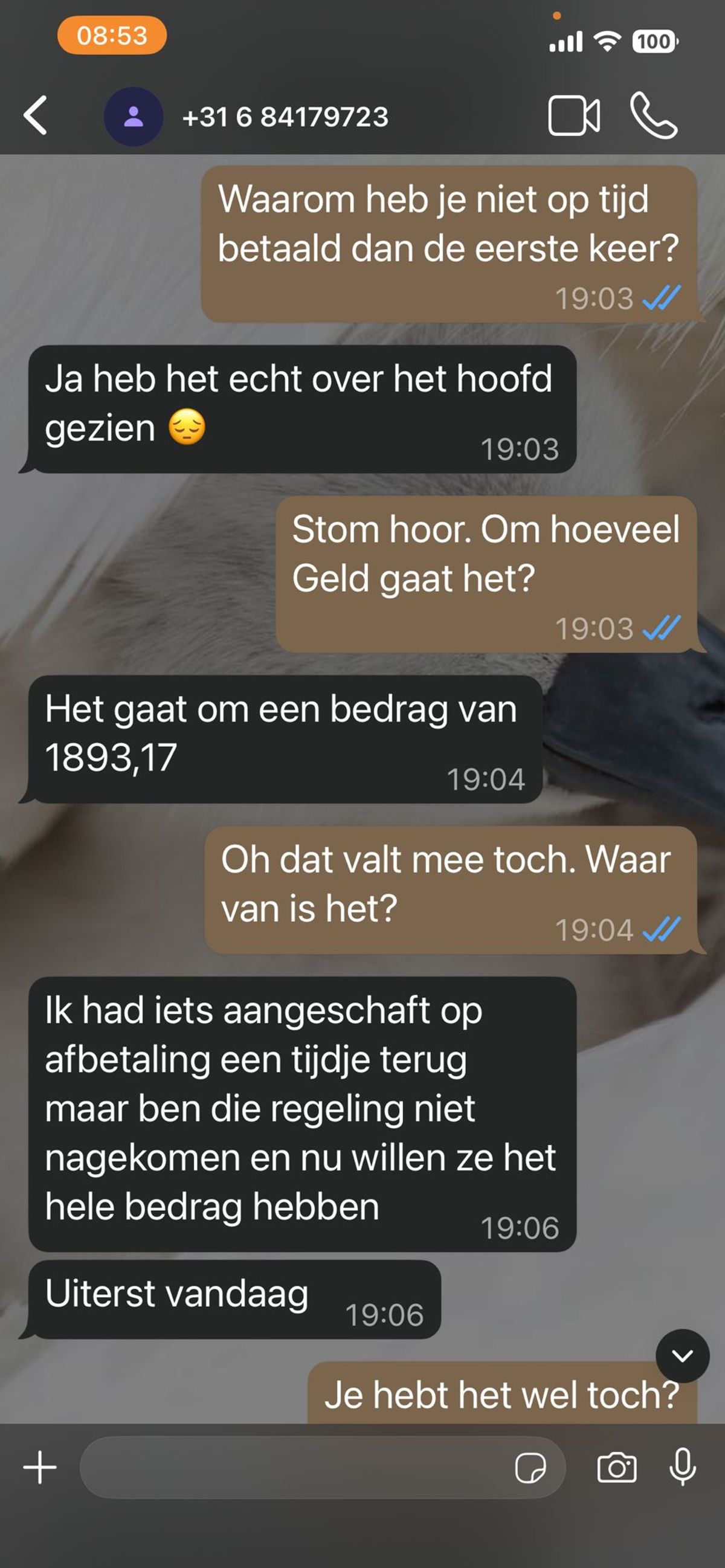 Hier weer een WhatsApp-oplichter die lekker lang aan het lijntje gehouden wordt (10 screens)