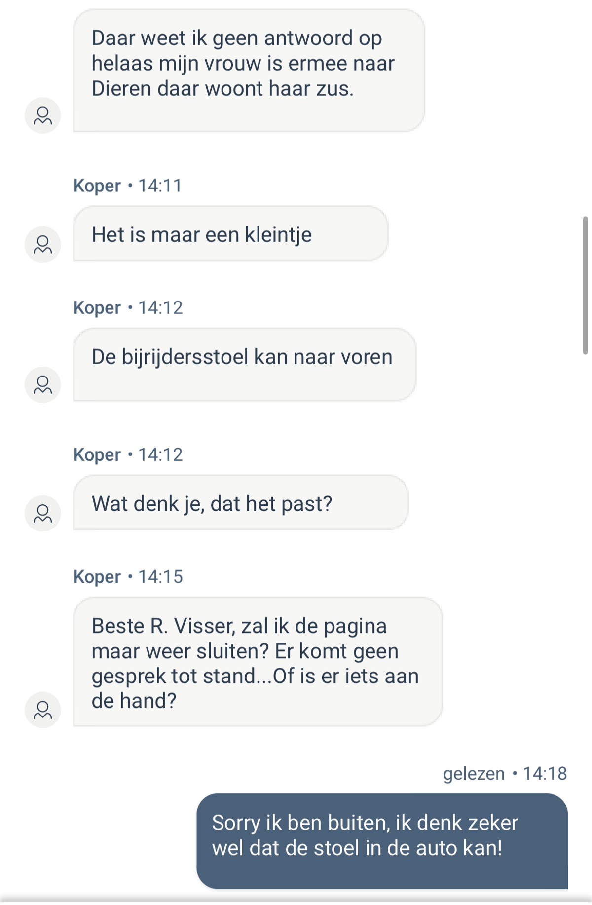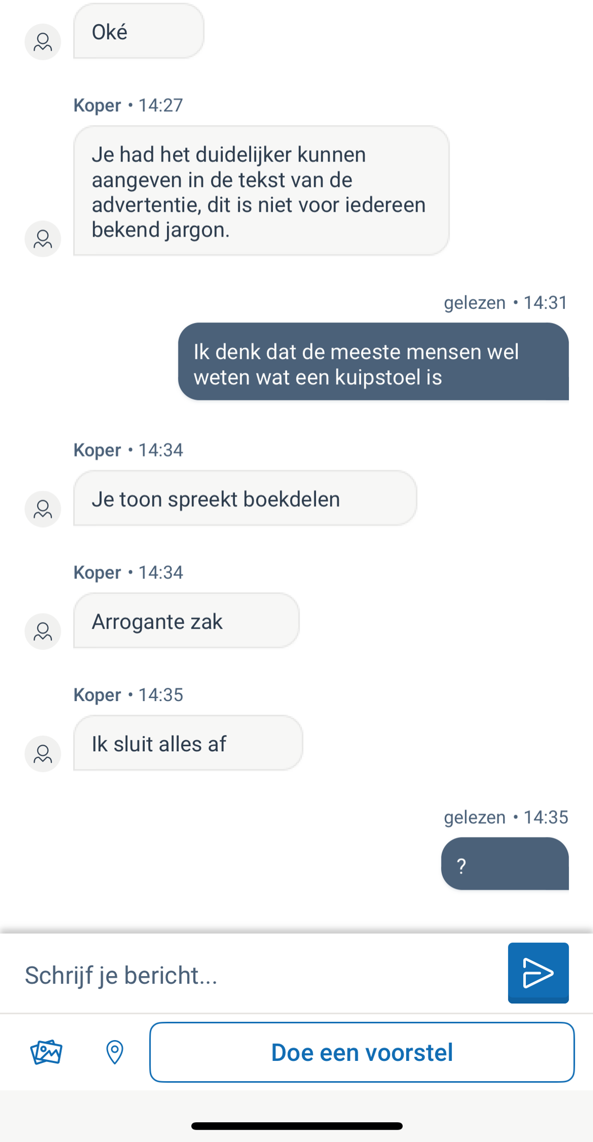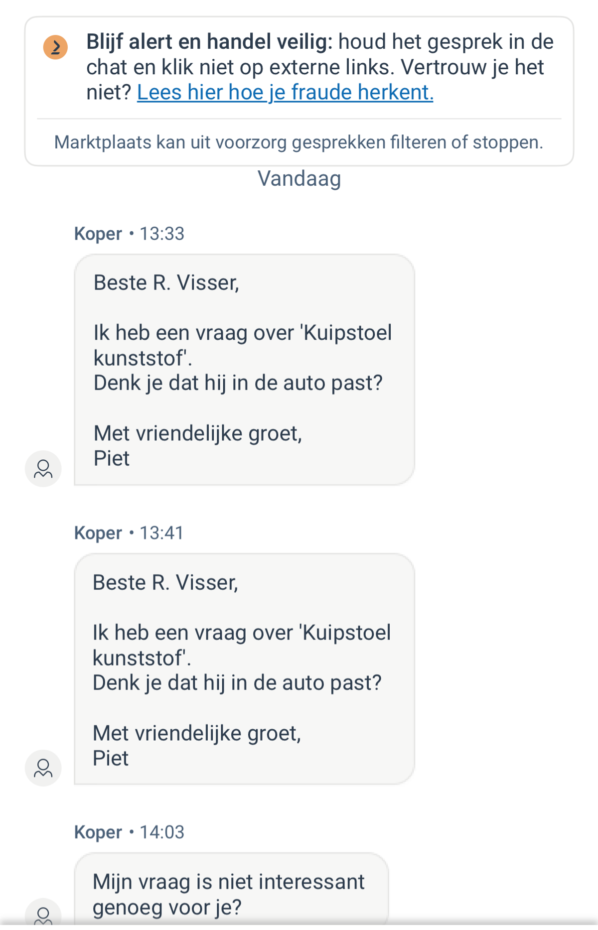 Man heeft interesse in een 'kuipstoel' van Marktplaats omdat hij denkt dat dat iets met Feyenoord te maken heeft (7 screens)