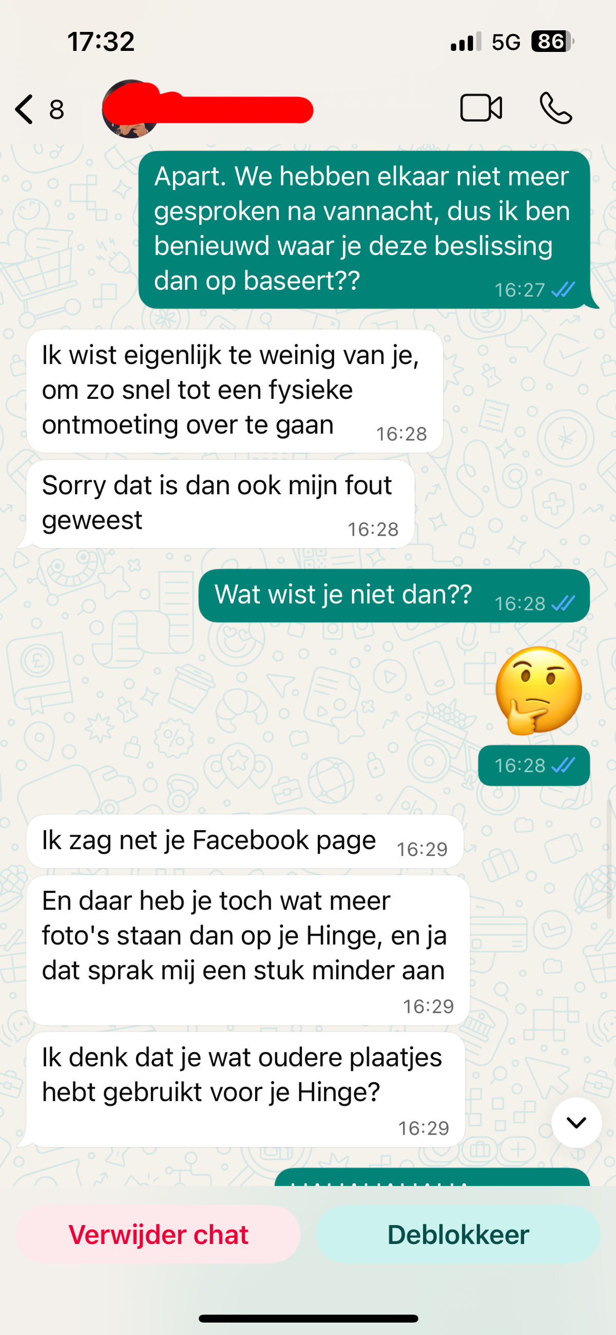 Gast zegt last-minute date af omdat hij de Facebook-pagina van zijn match heeft gevonden en niet echt te spreken is over de foto's daar (5 screens)