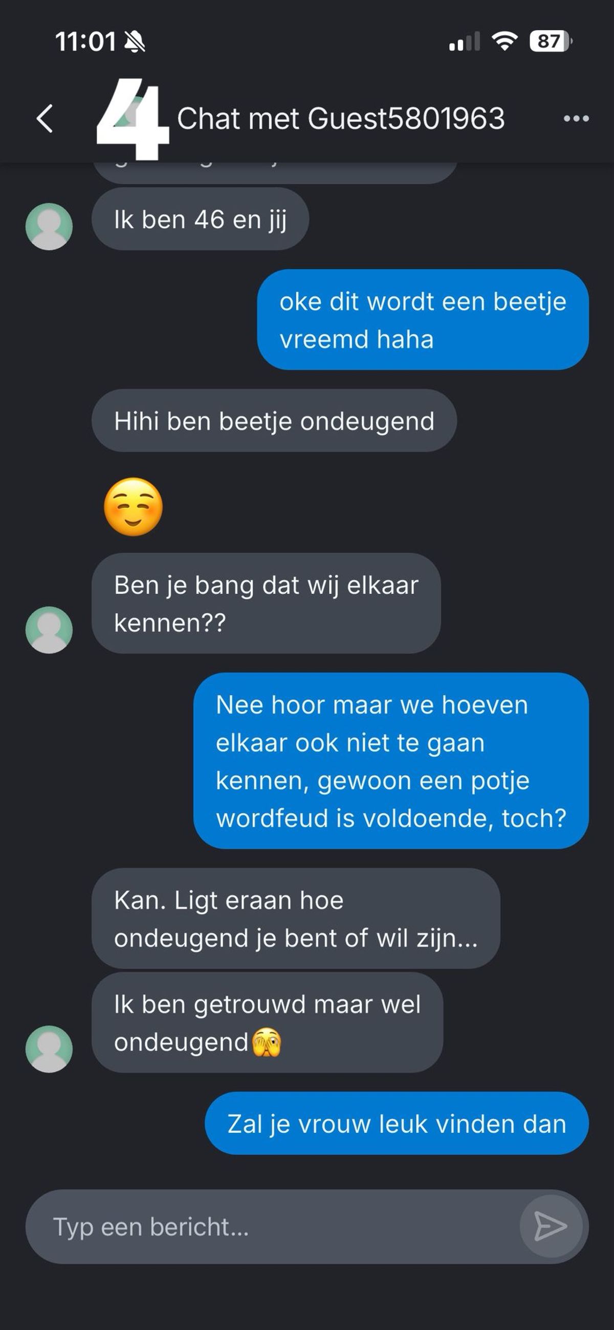 Hier weer een getrouwde man op Wordfeud die op zoek is naar iets 'ondeugends' (7 screens)