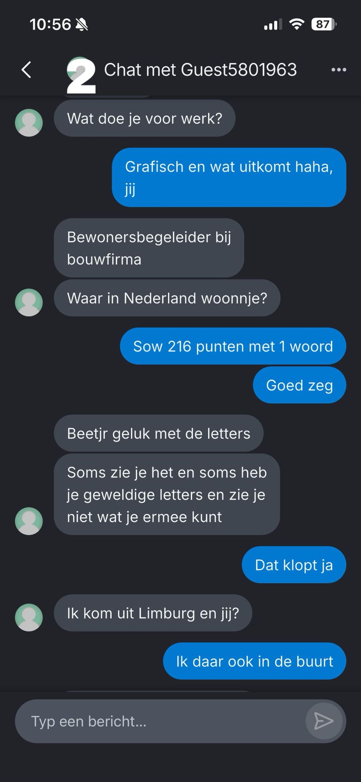 Hier weer iemand die Wordfeud verwart met een of andere datingsite (7 screens)