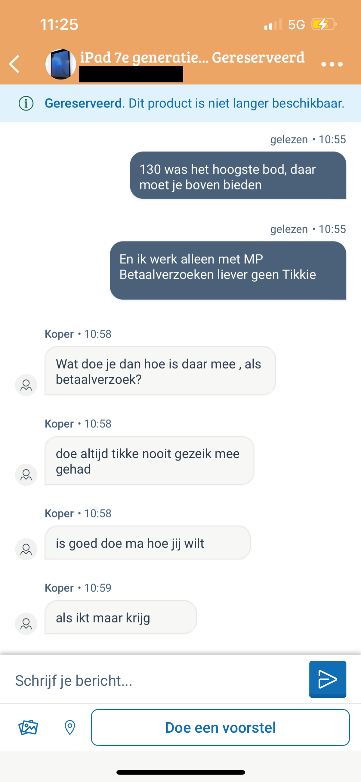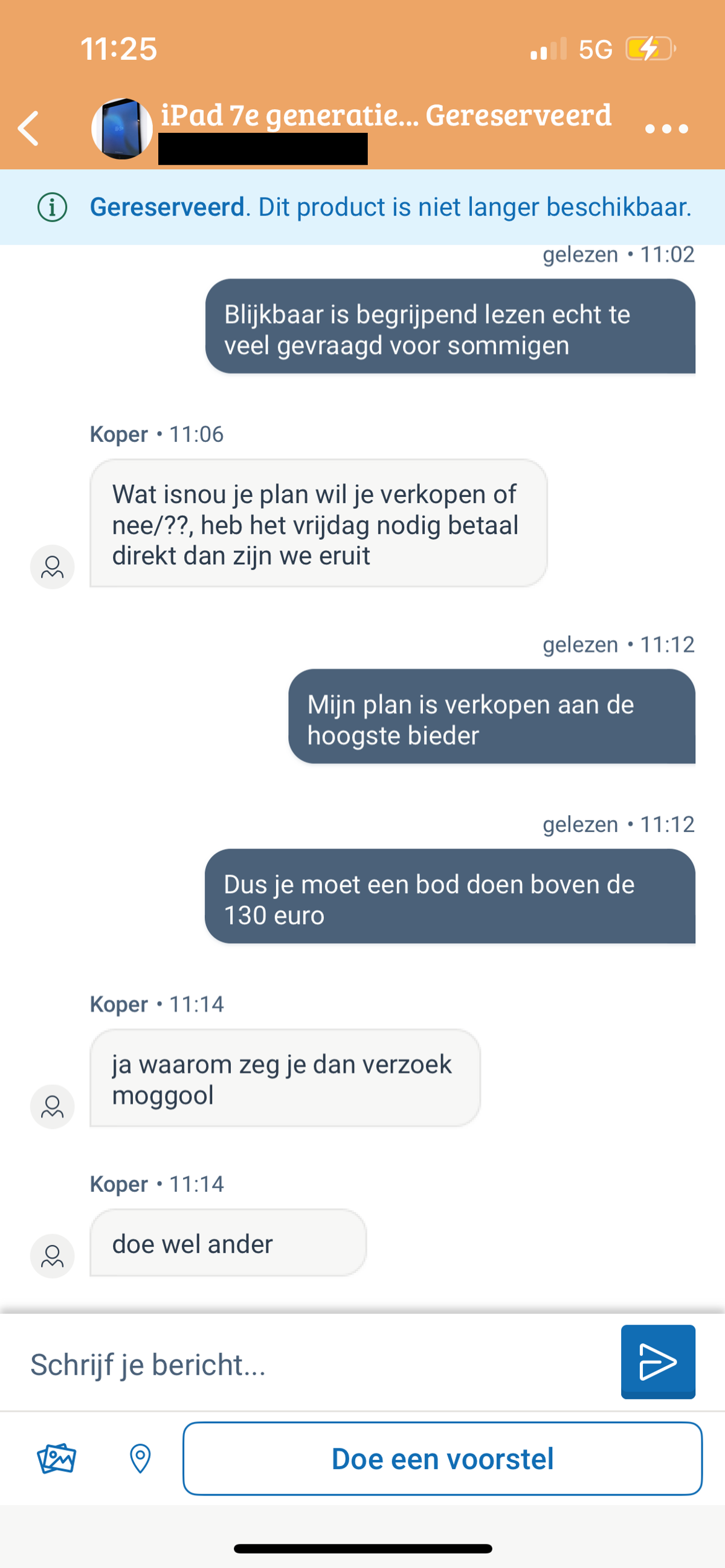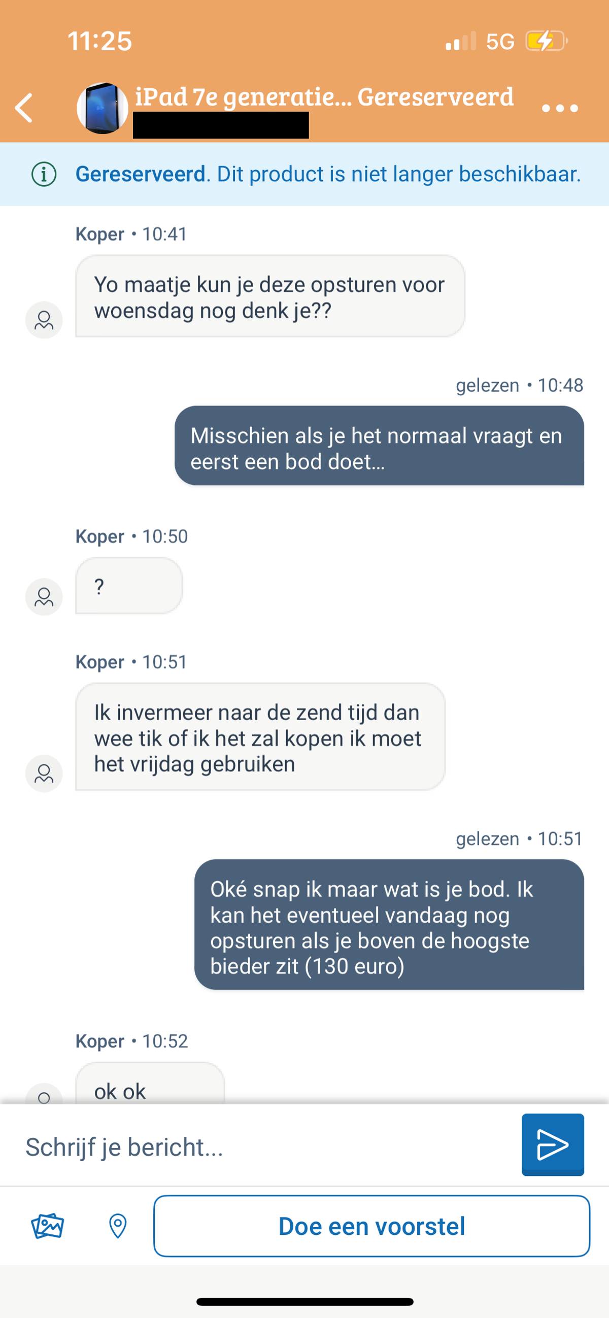 Man snapt niet hoe bieden op Marktplaats werkt en wil meteen weten wat de laagste prijs is om 'heen-en-weer-geschrijf' te voorkomen (6 screens)
