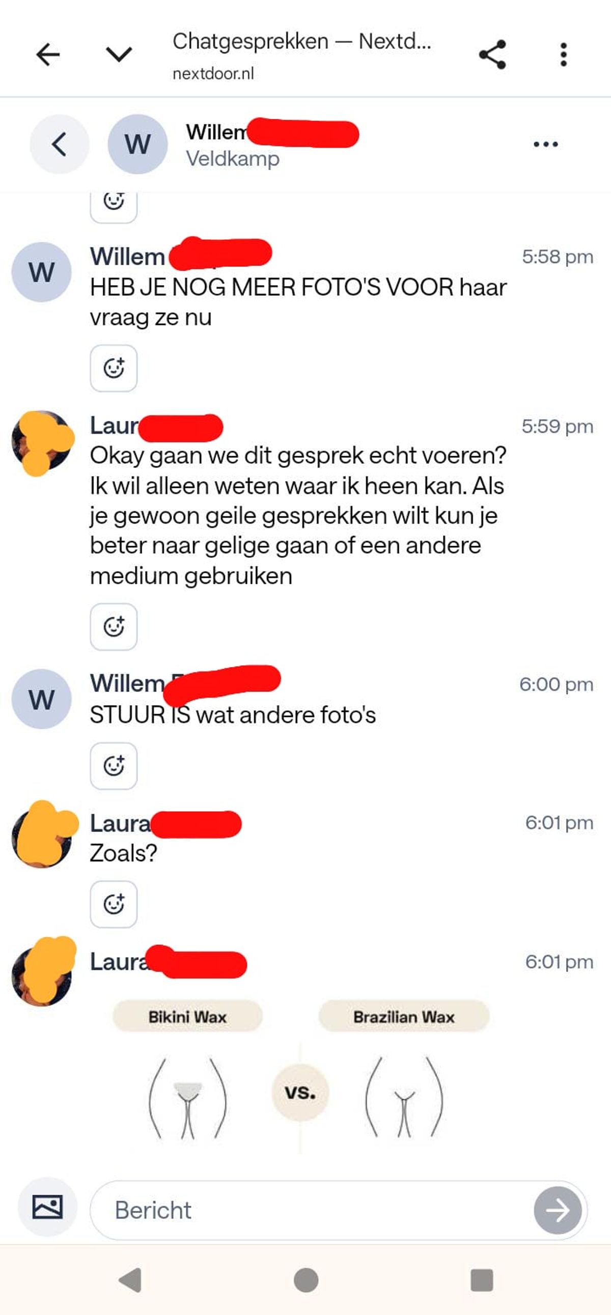 Willem weet zogenaamd wel waar je een 'Brazilian wax' kan laten doen maar dan heeft hij wel eerst wat foto's nodig (16 screens)