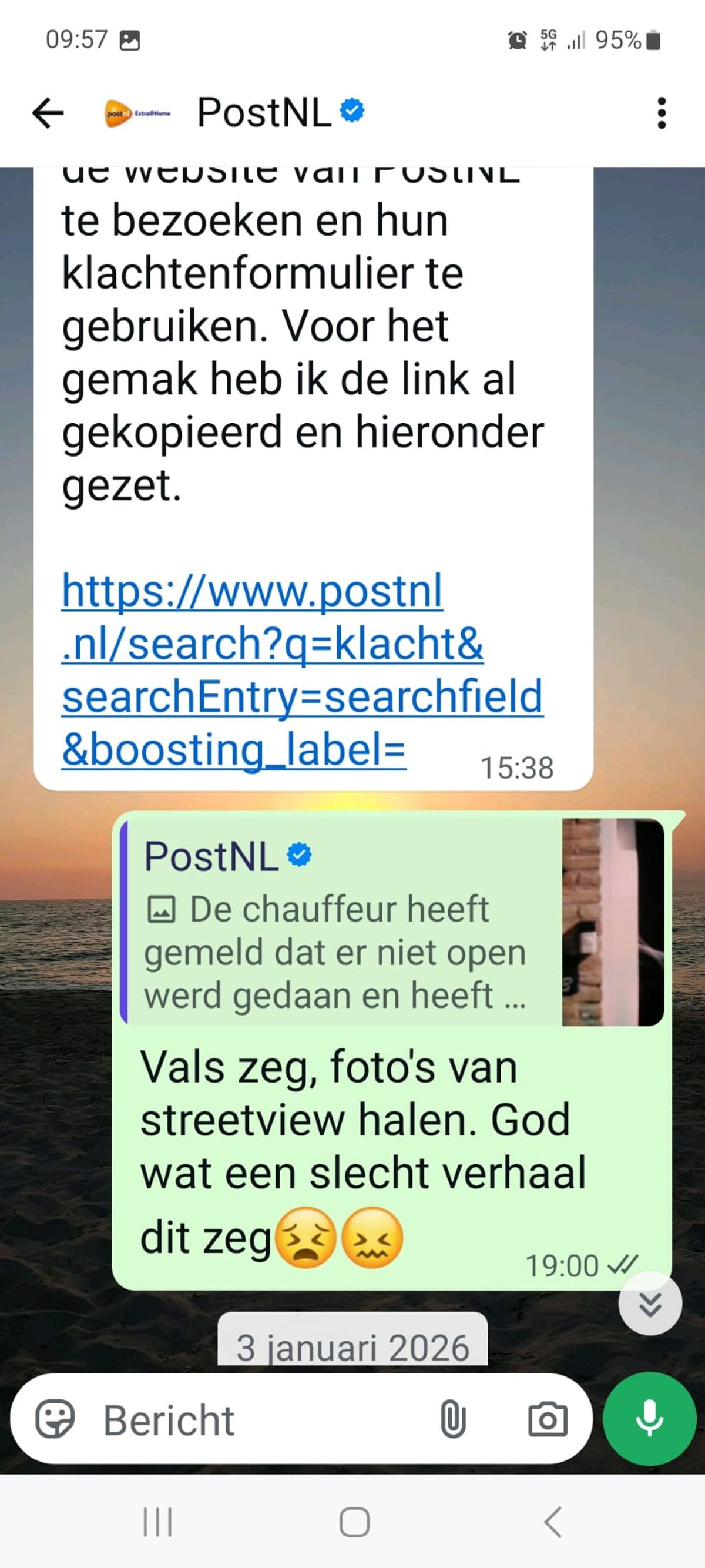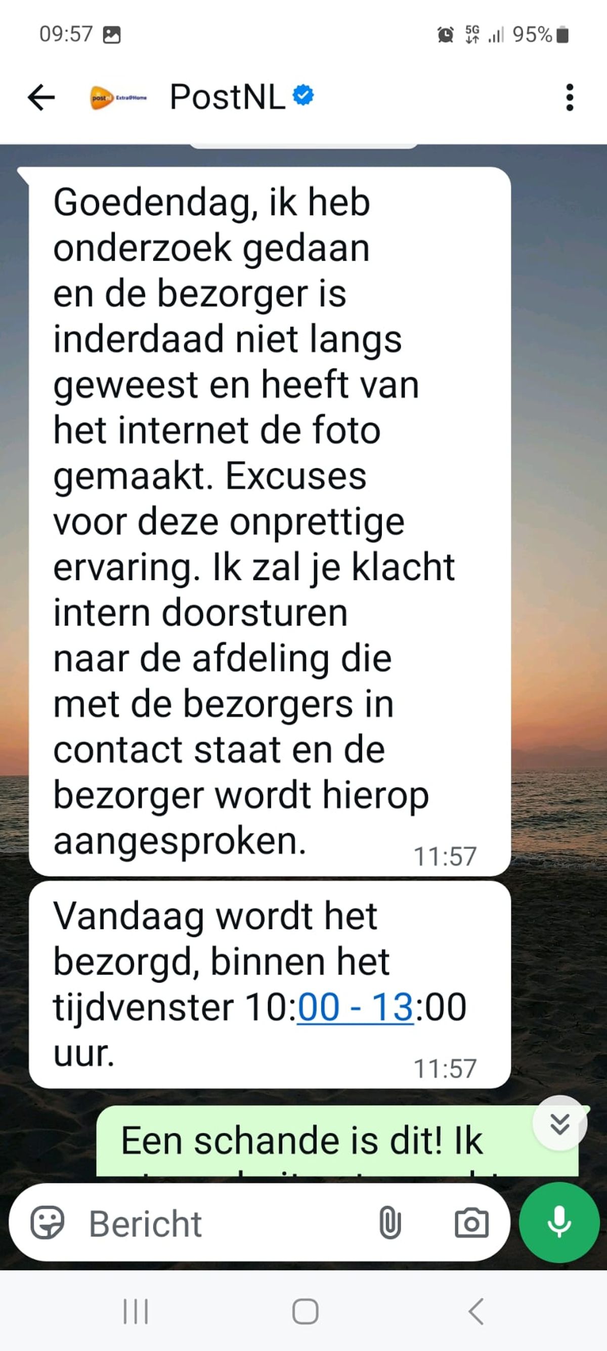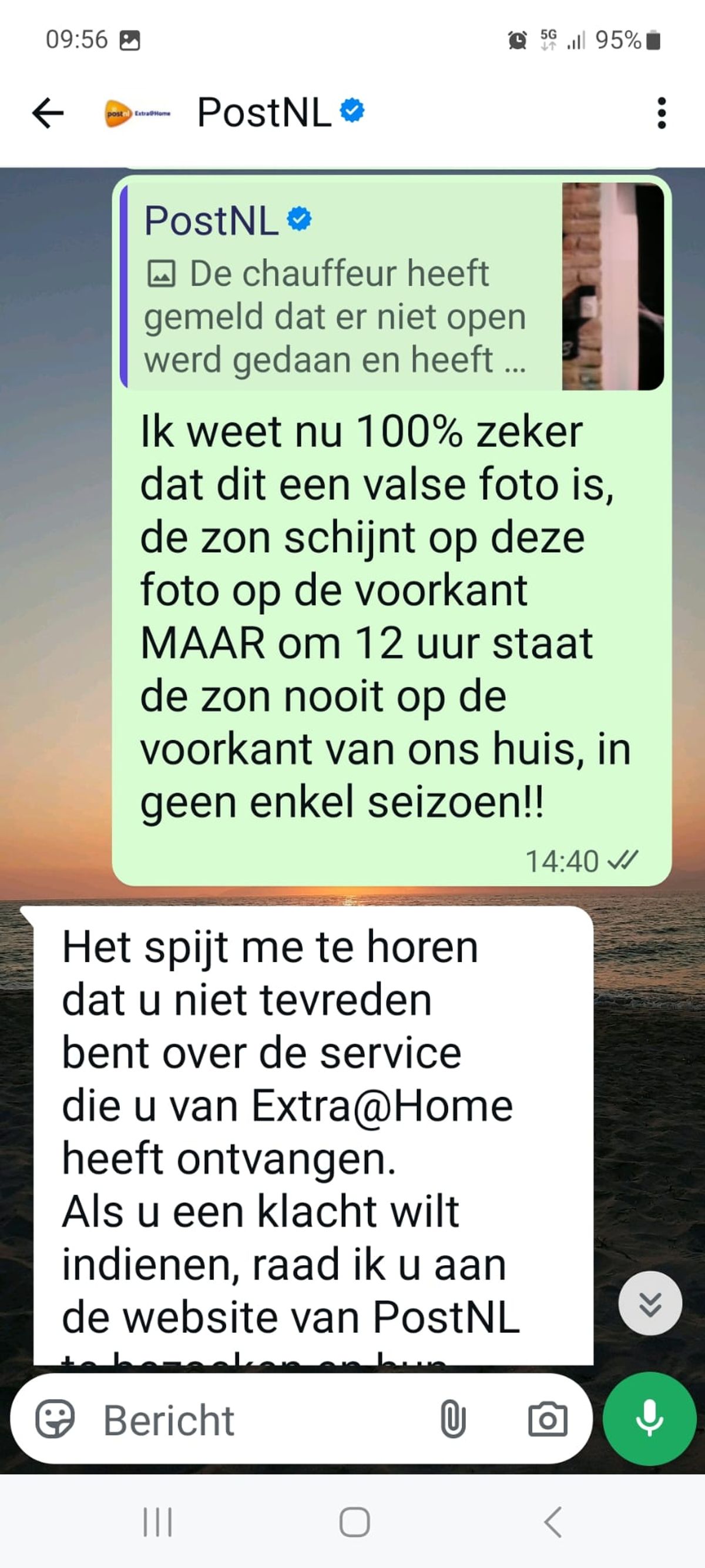 Vrouw zit de hele dag voor het raam te wachten op een PostNL-bezorger die volgens de helpdesk al had aangebeld en dit is de foto die ze meesturen als bewijs (8 screens)